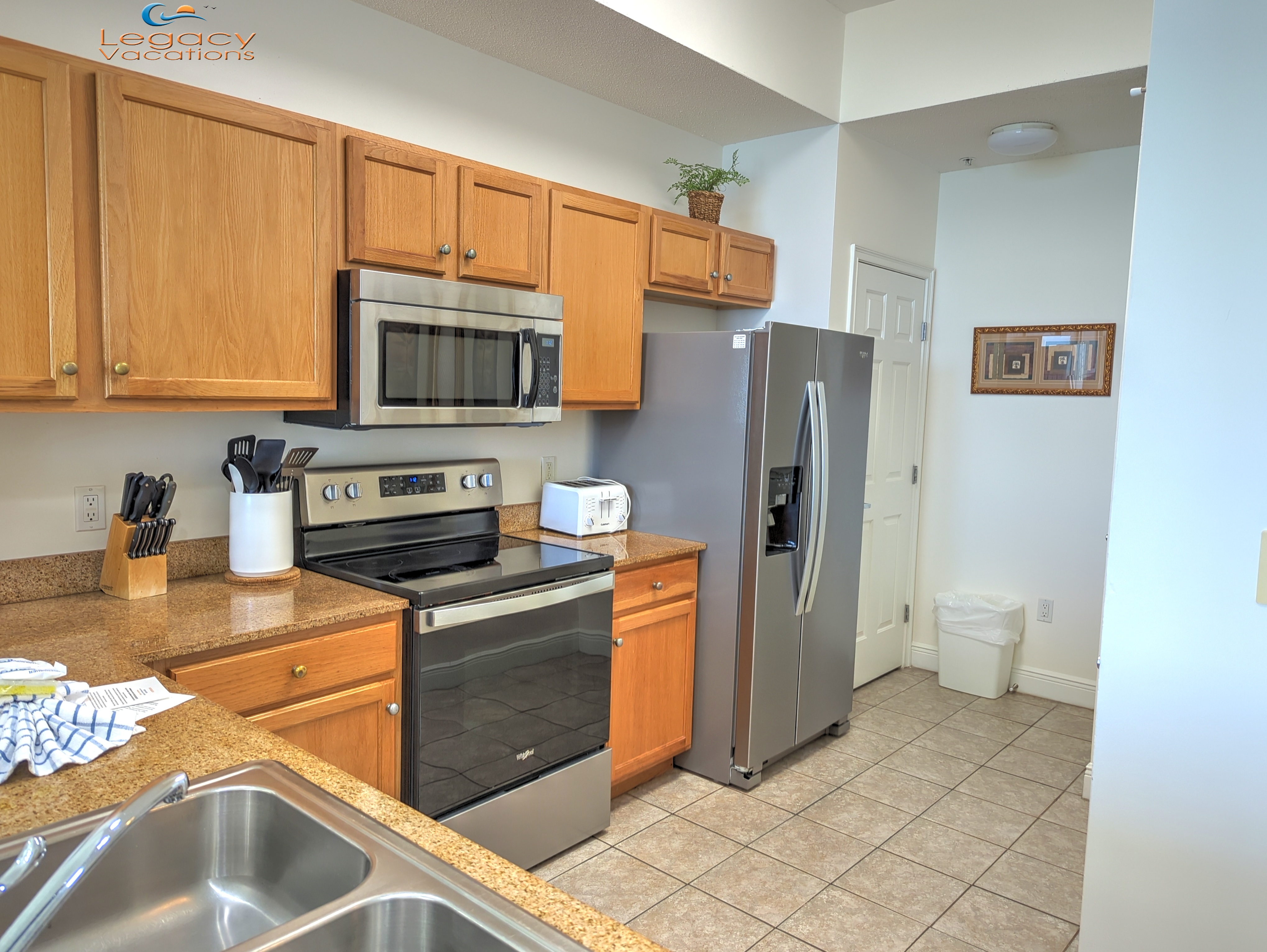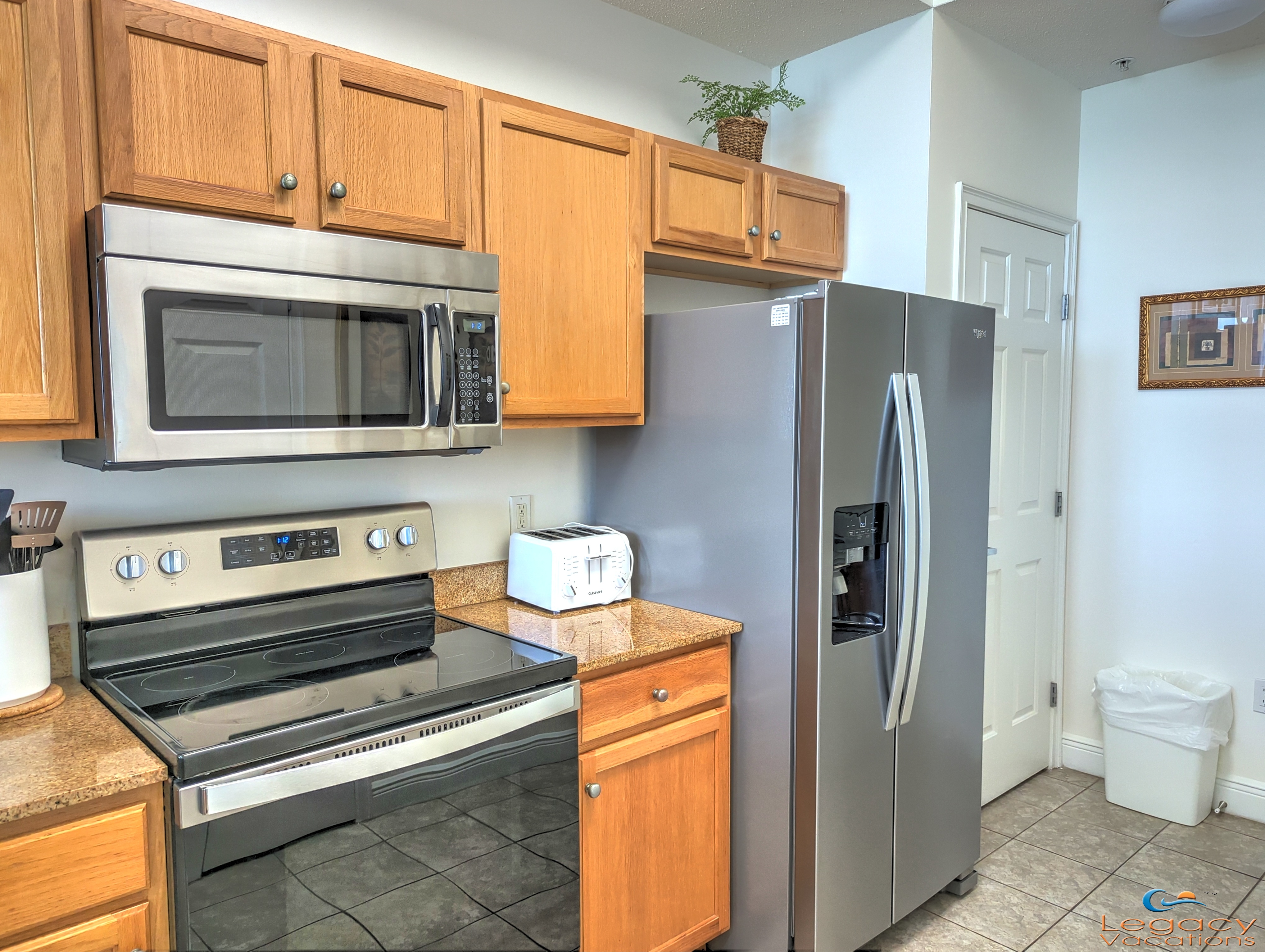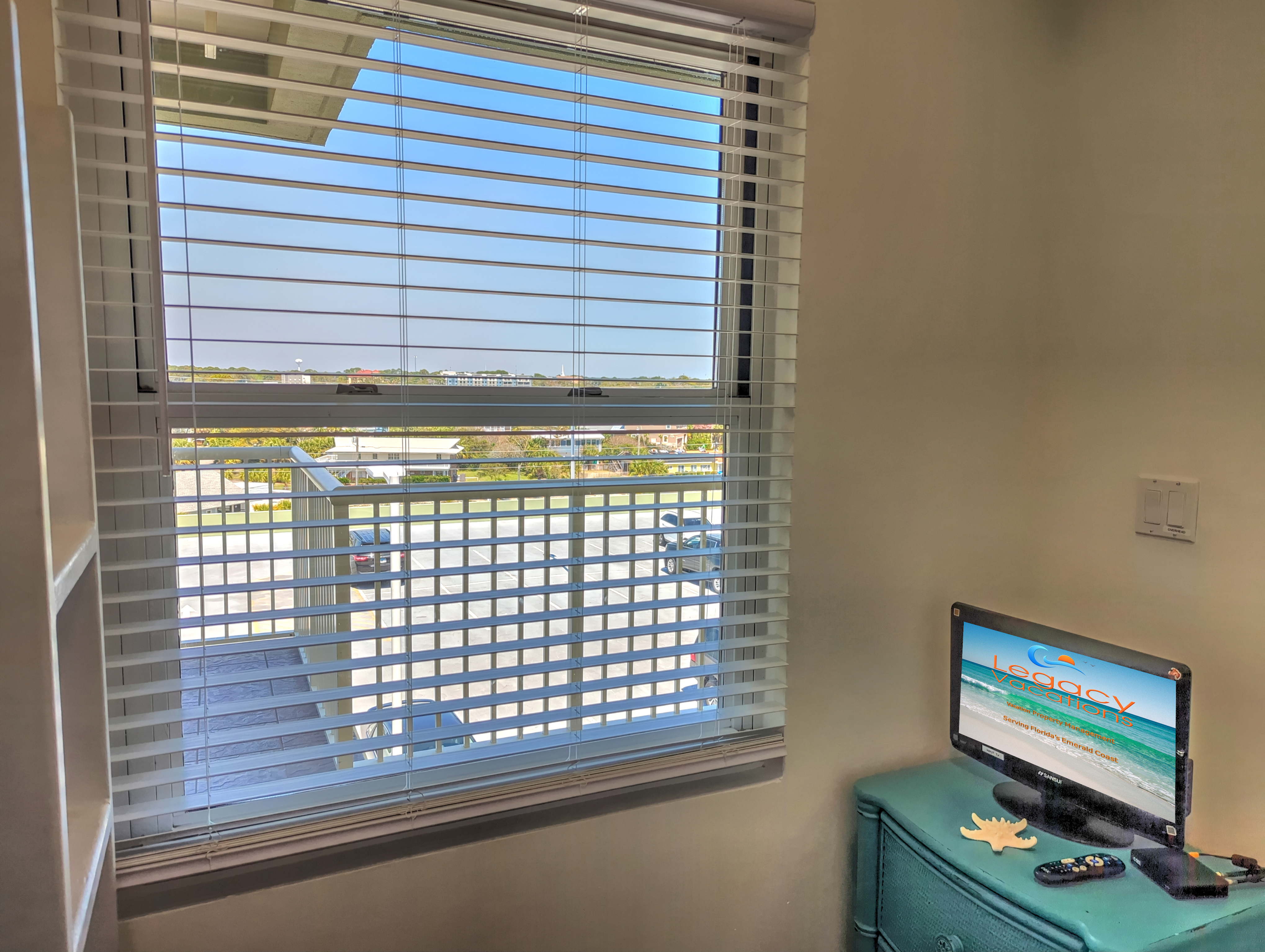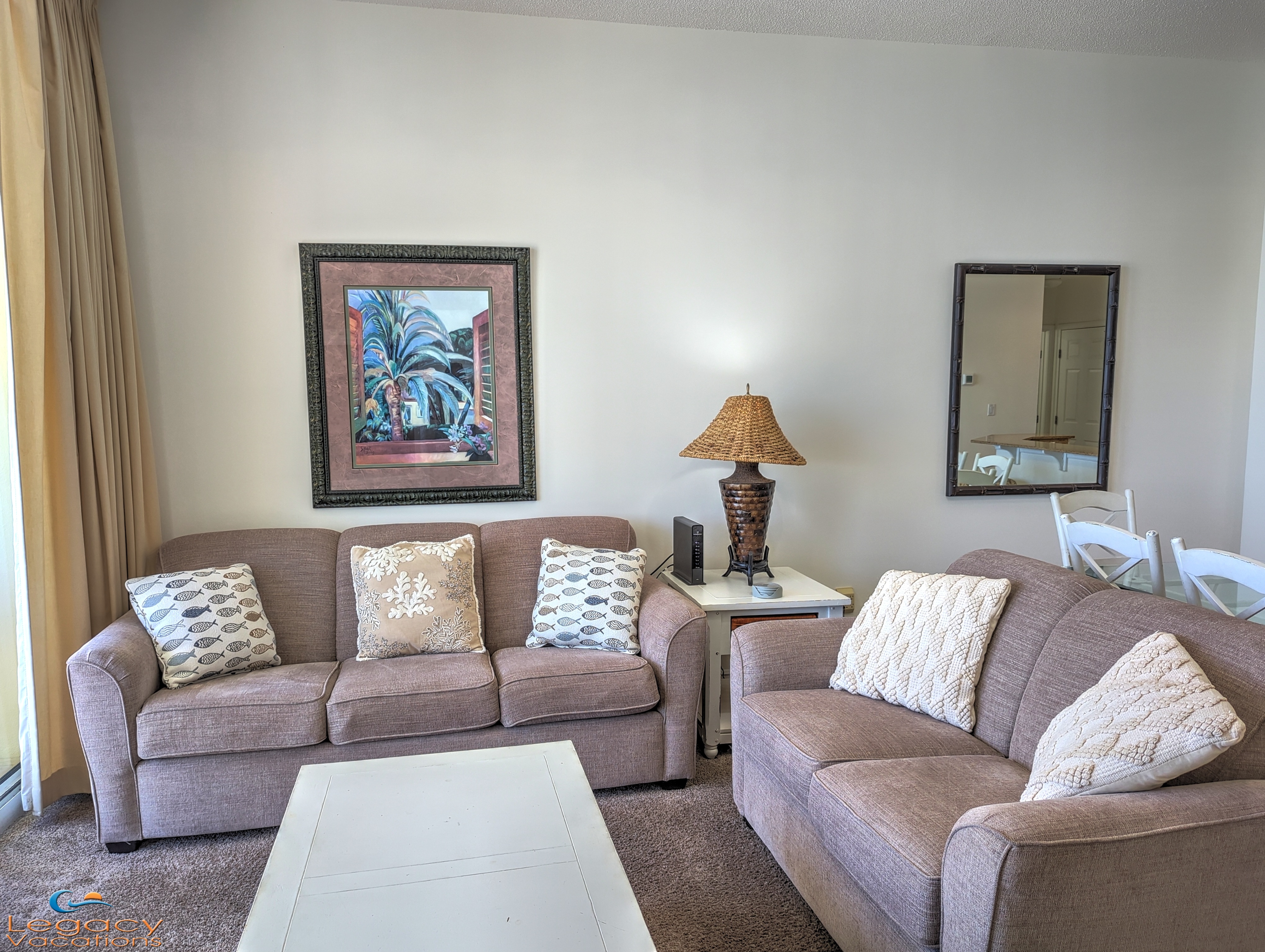 Boasting 10-foot ceilings, this large space features a fully equipped kitchen with granite counters, pantry, and a washer and dryer. The kitchen also includes a bar with extra seating, complete with a Keurig and Coffee maker combo. The open floor plan seamlessly connects the kitchen to the dining area, accommodating up to six guests, and the living area equipped with a Flat screen TV and a Queen sleeper sofa for additional guests. Marvel at the breathtaking Gulf views from the living ...
