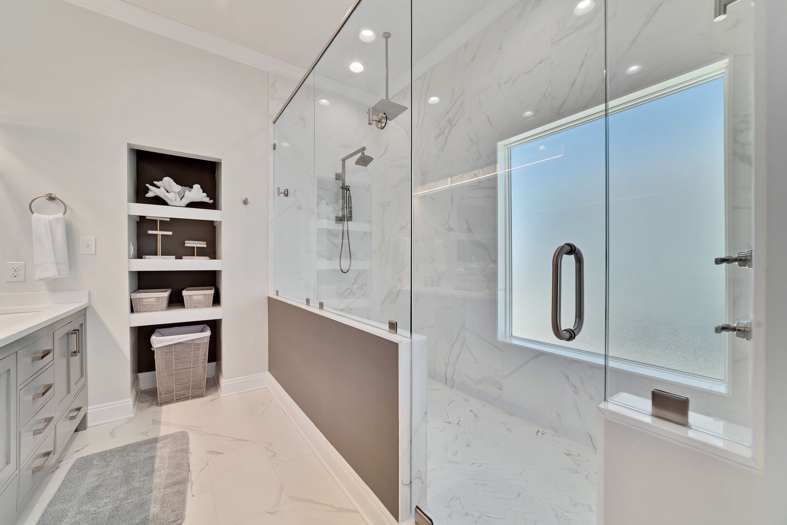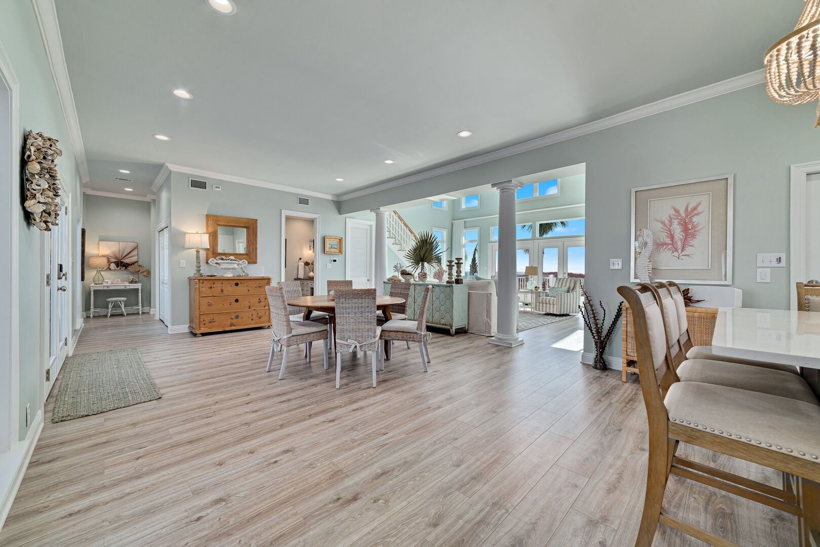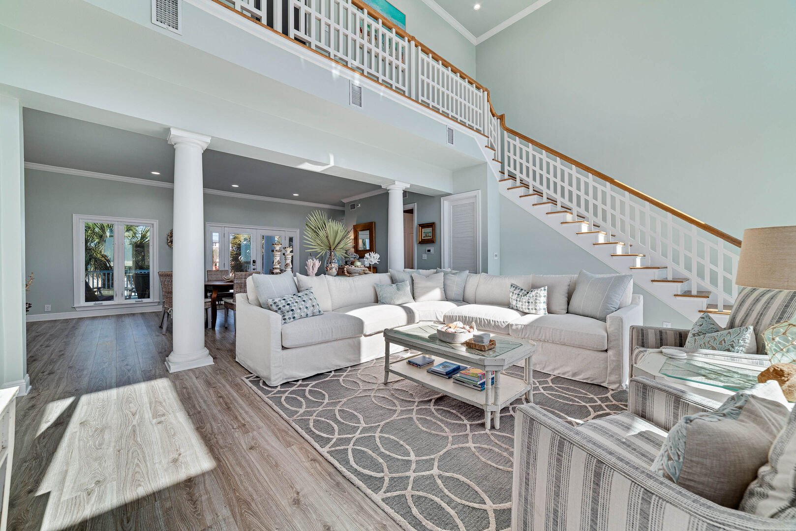 Beautifully renovated luxury beachfront vacation rental home in Gulf Shores, Seaside Palms was completely worth the wait. Spectacular two-story wall of windows in the living room plus a big kitchen, gracious beachfront primary bath and wonderful screened and open porches with a front-row view and direct access to the sugar-white sand beach.