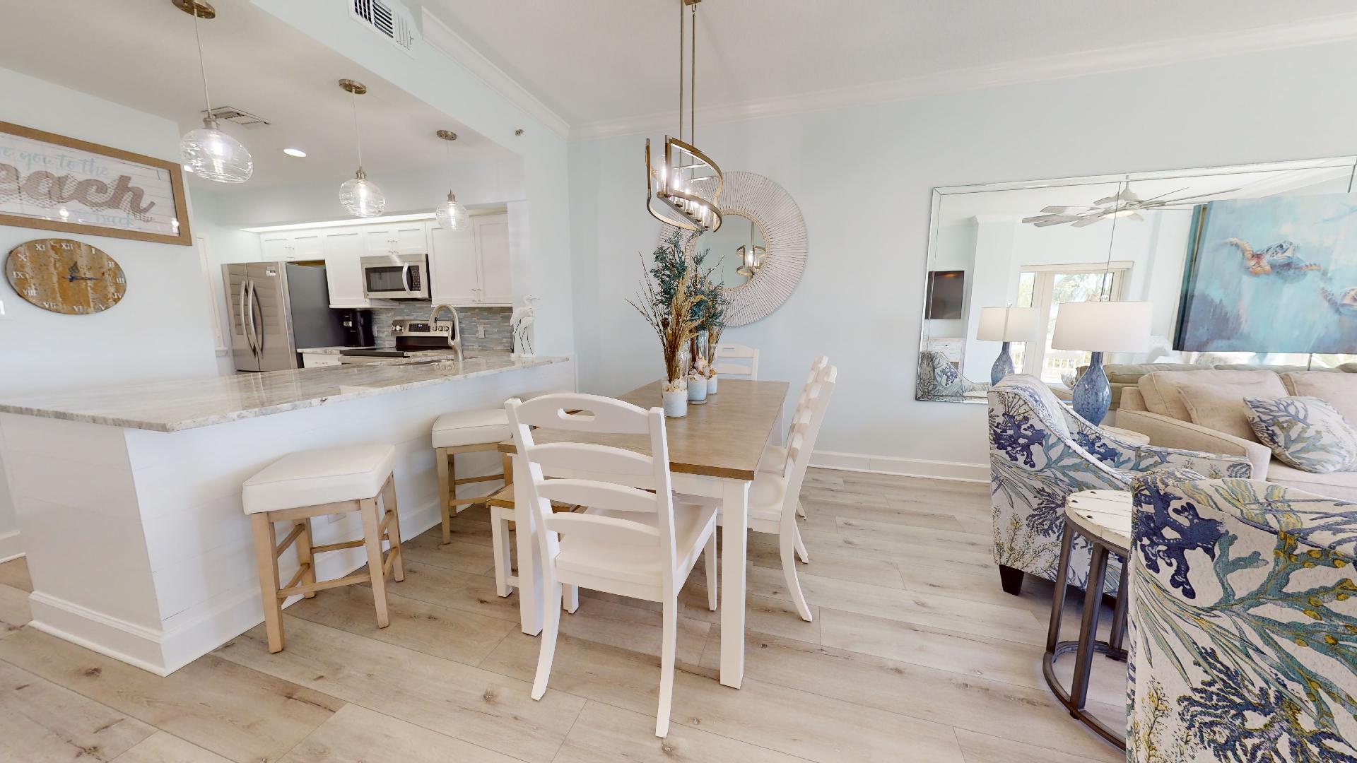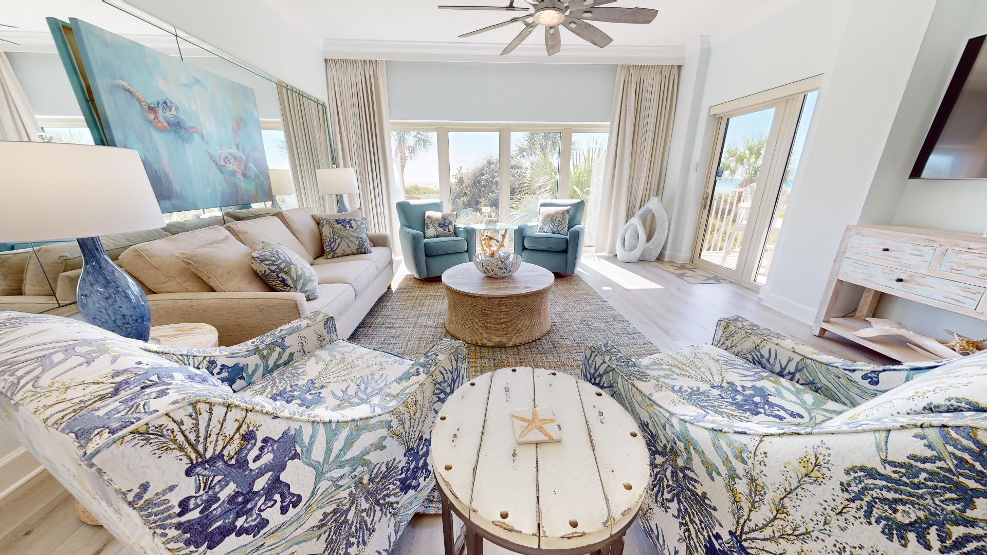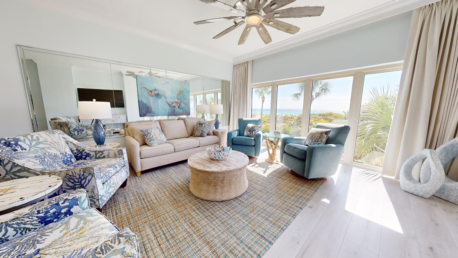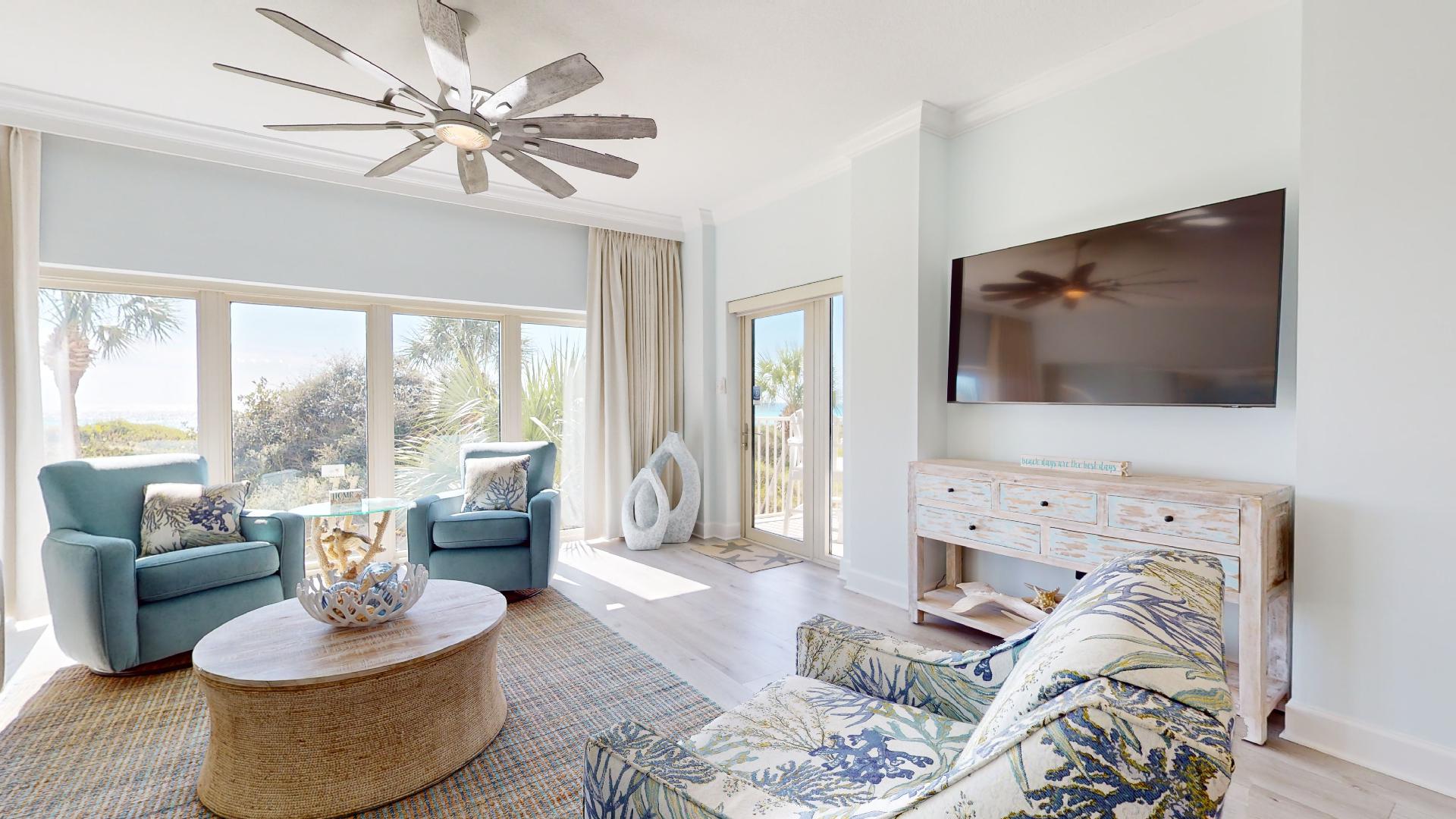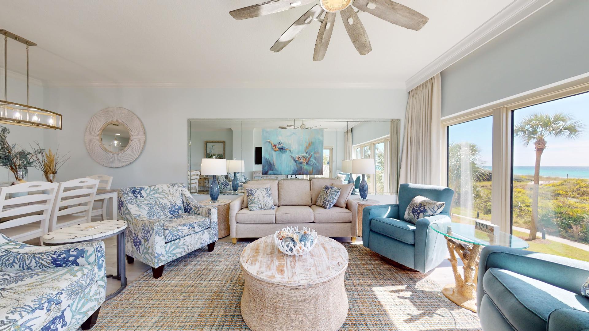 Welcome to Beach Manor 211 – a clean, cozy, and beachfront retreat with 2 bedrooms and 2 bathrooms. From the moment you walk in, you’ll be greeted by sweeping Gulf views, soft coastal tones, and inviting décor that set the stage for a relaxing getaway.