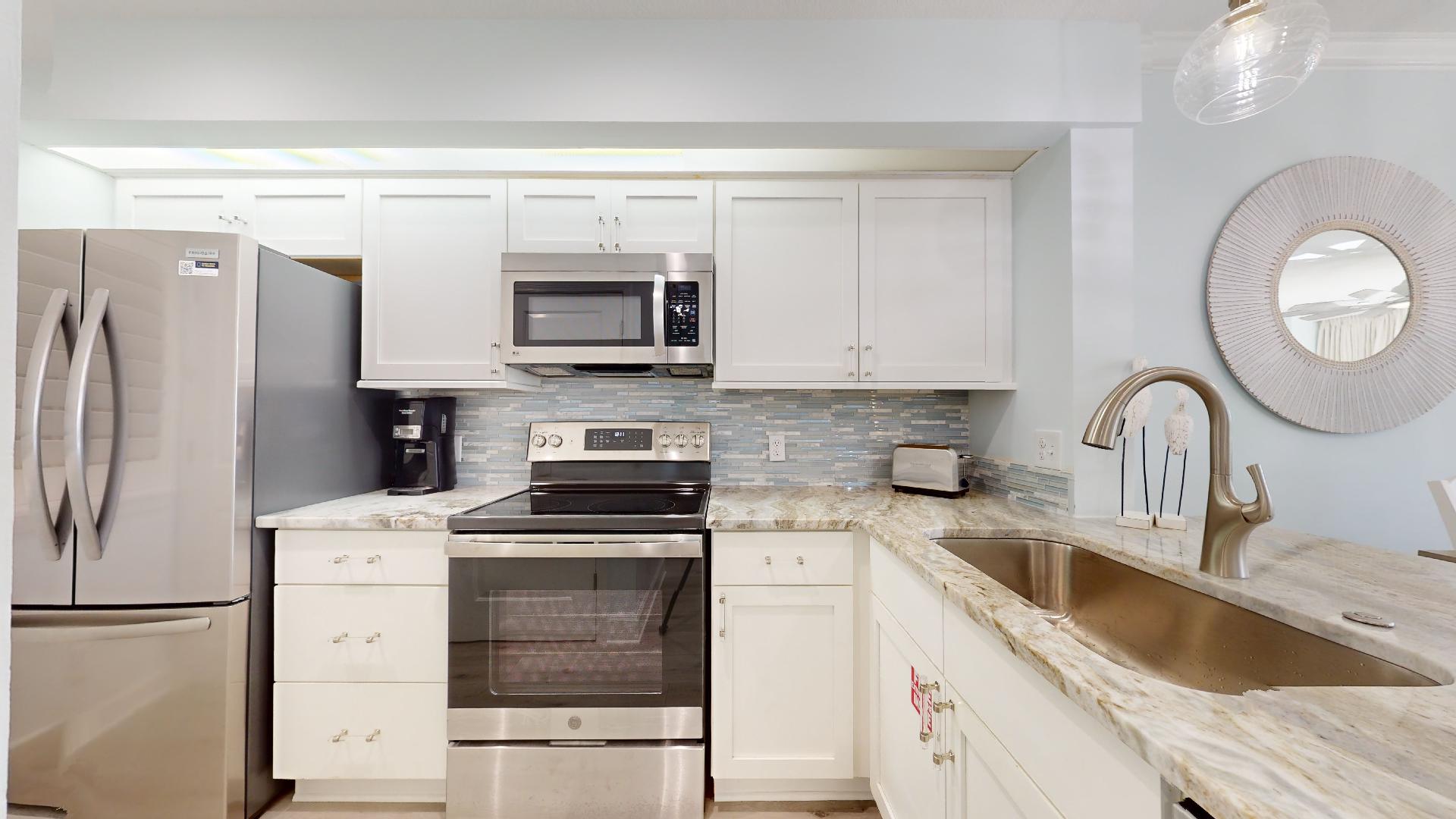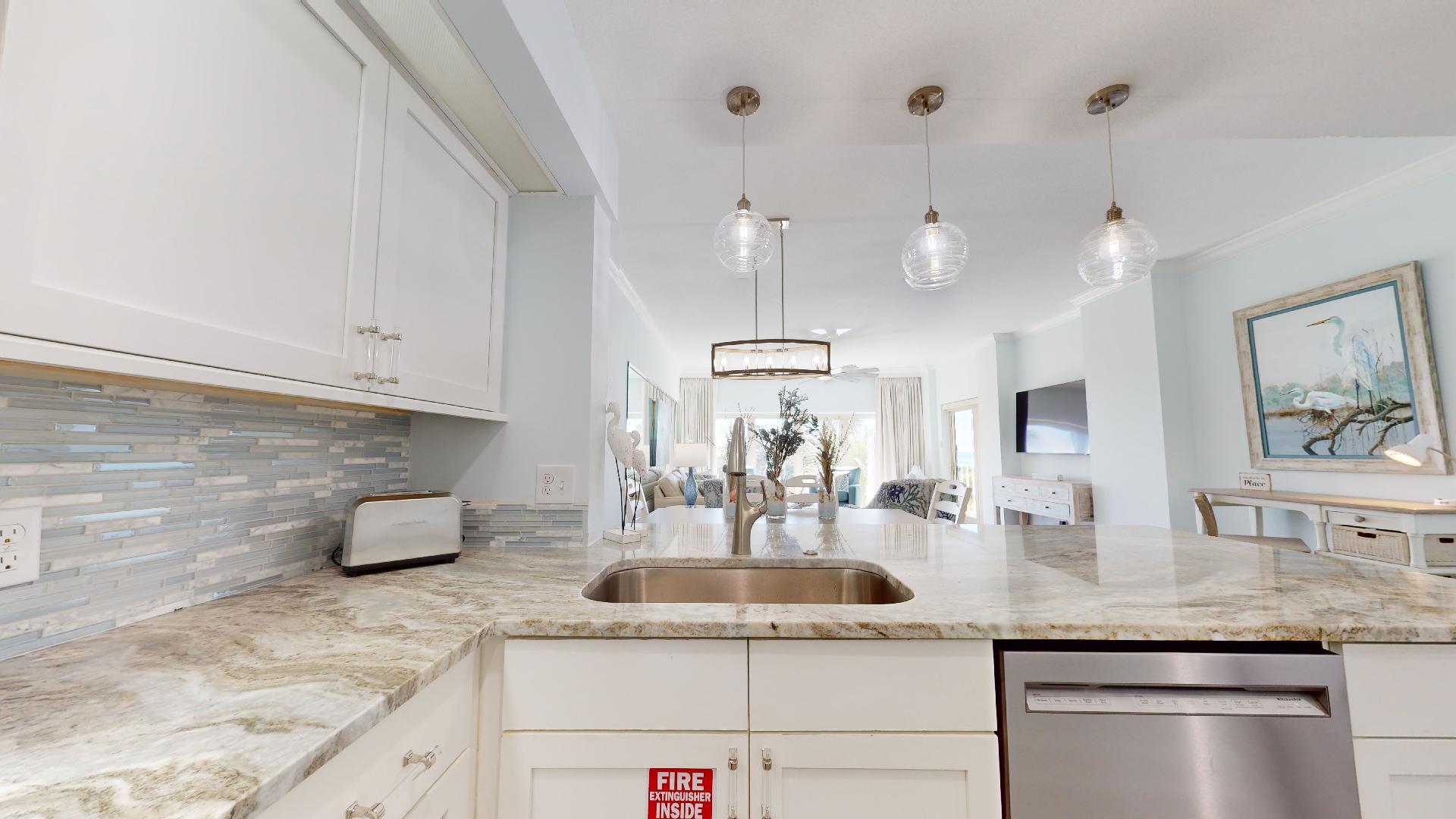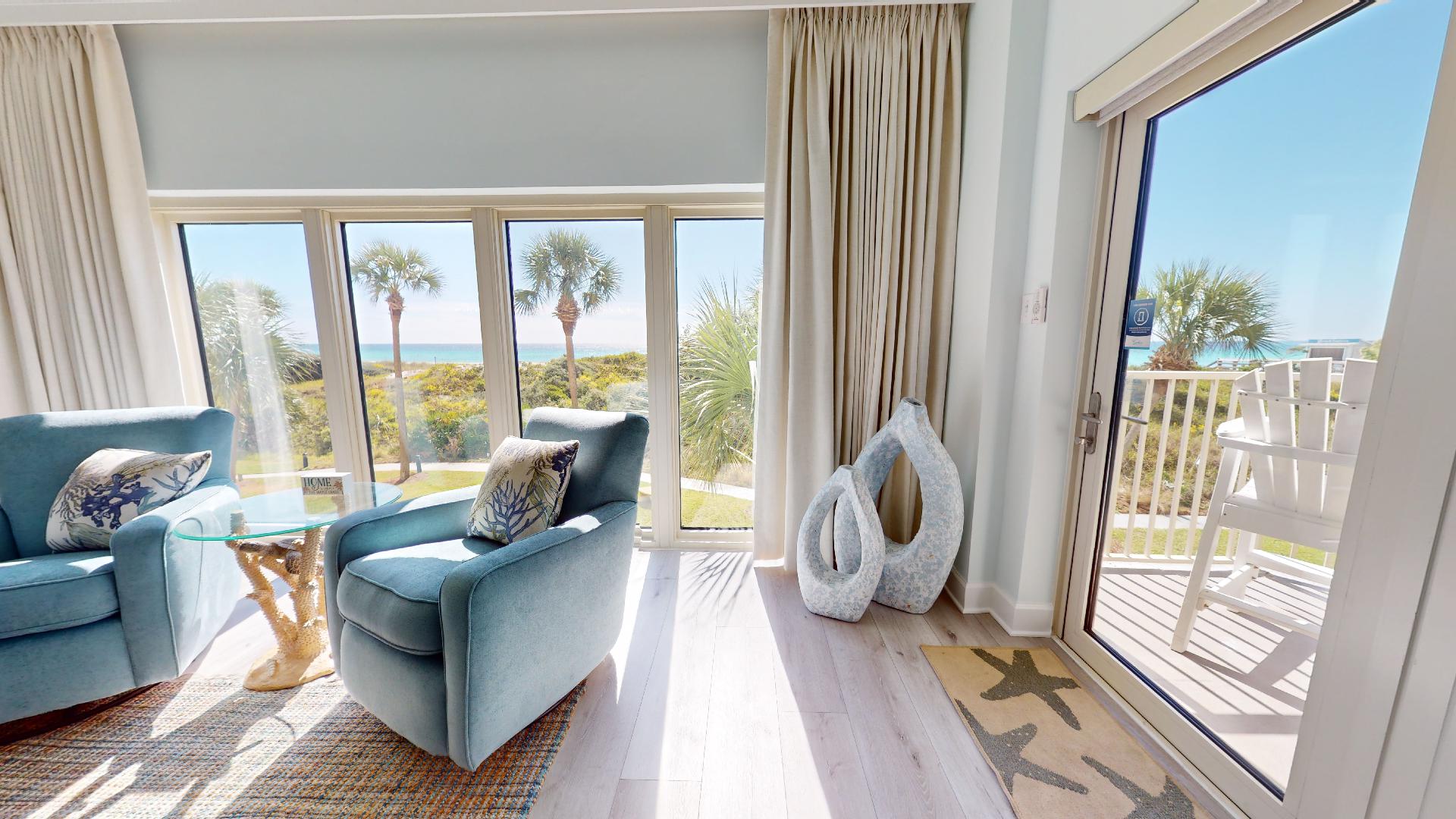 The fully equipped kitchen has everything you need for meals at home, with a dining area and spacious living room designed for comfort after a day in the sun. Step onto your private balcony to enjoy mesmerizing emerald water views and the soothing sound of waves just steps away.
