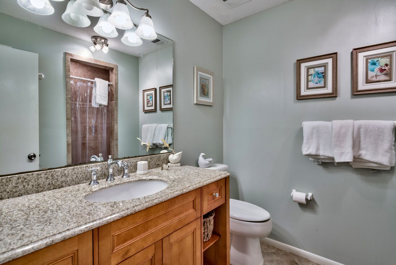 The recent renovation provides a complete Gourmet Kitchen with all new cabinets, granite counters and appliances. The downstairs has newly installed recessed lighting, porcelain tile flooring and a dry bar with beverage refrigerator. Upstairs has a newly installed guest bath shower.