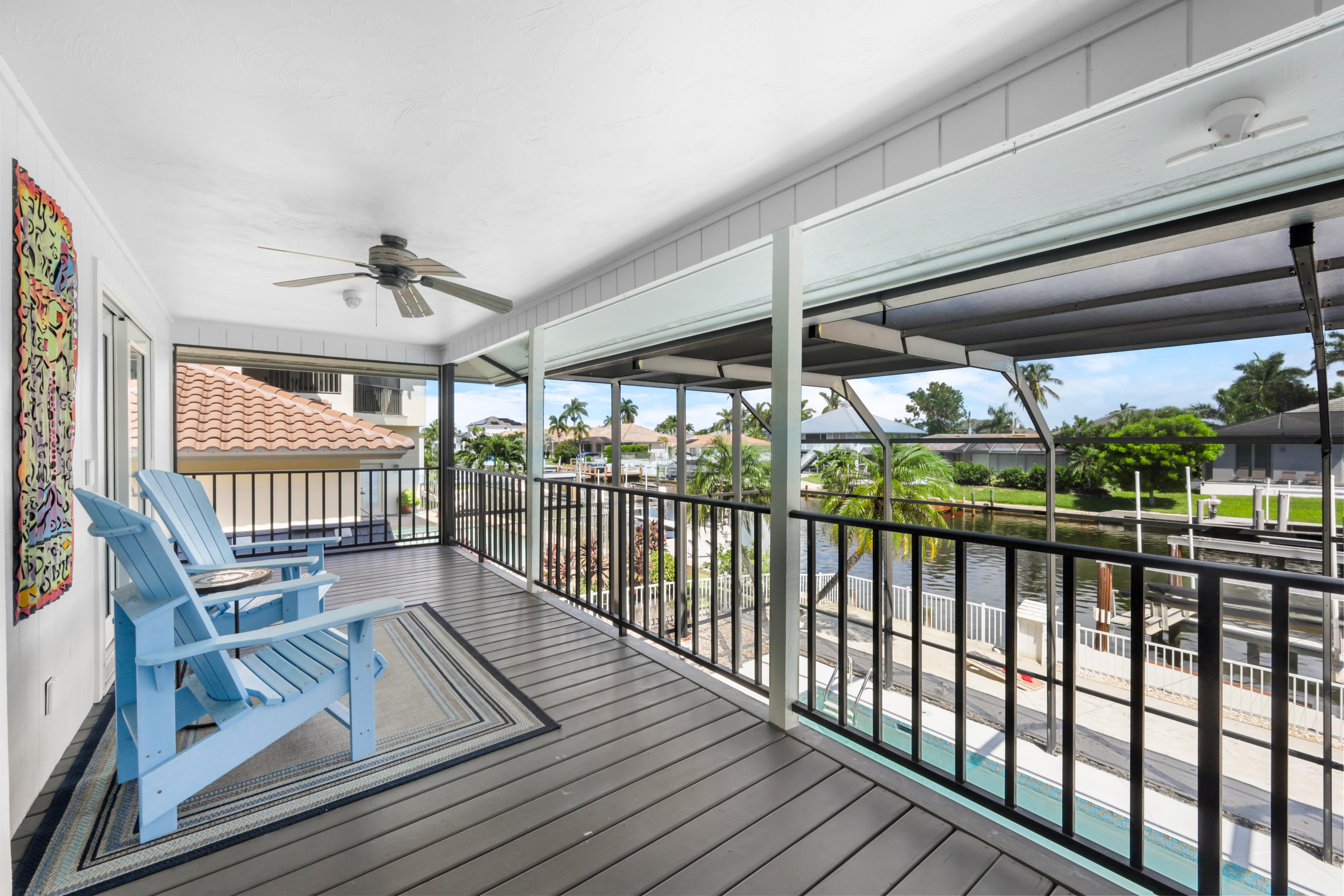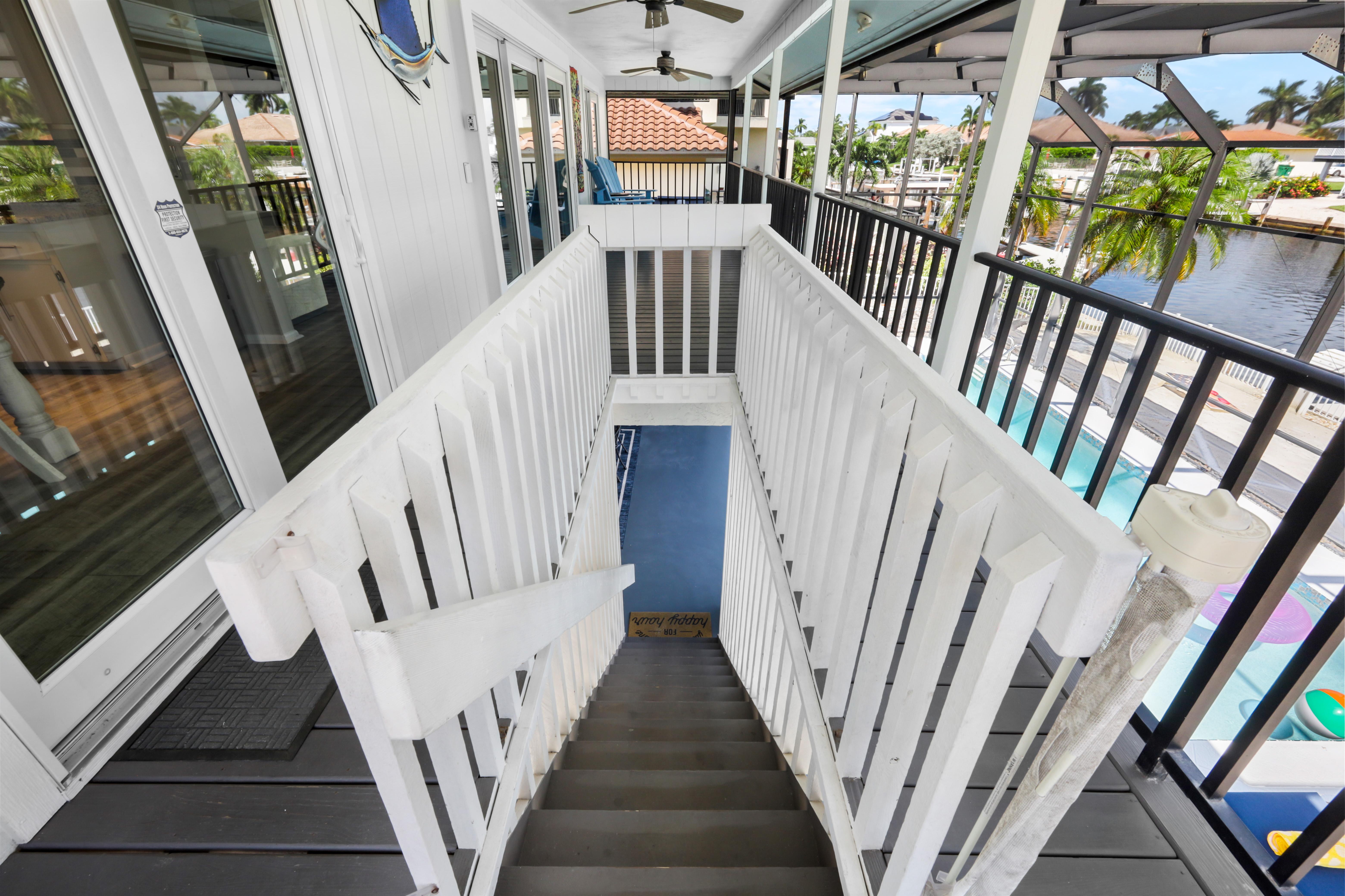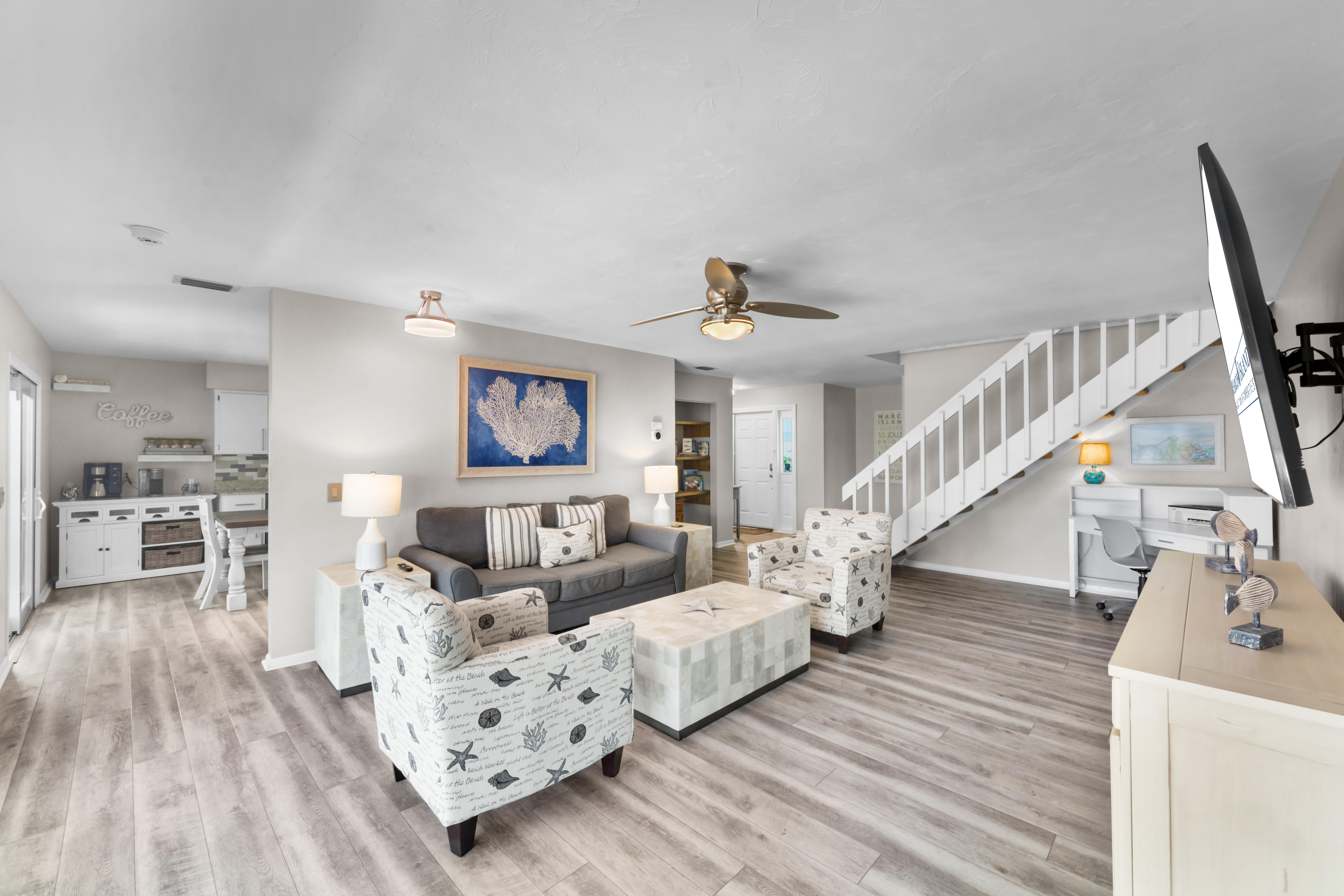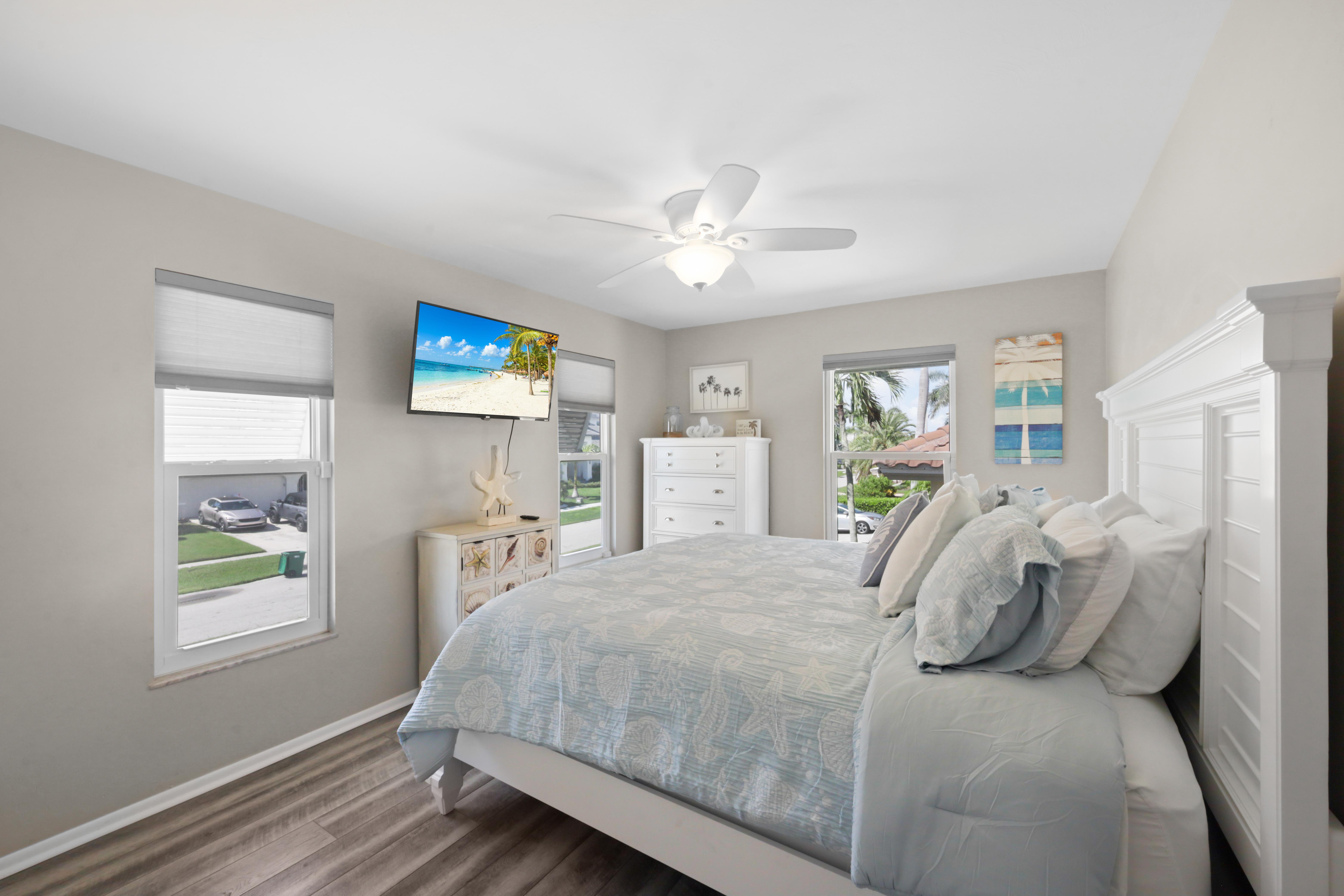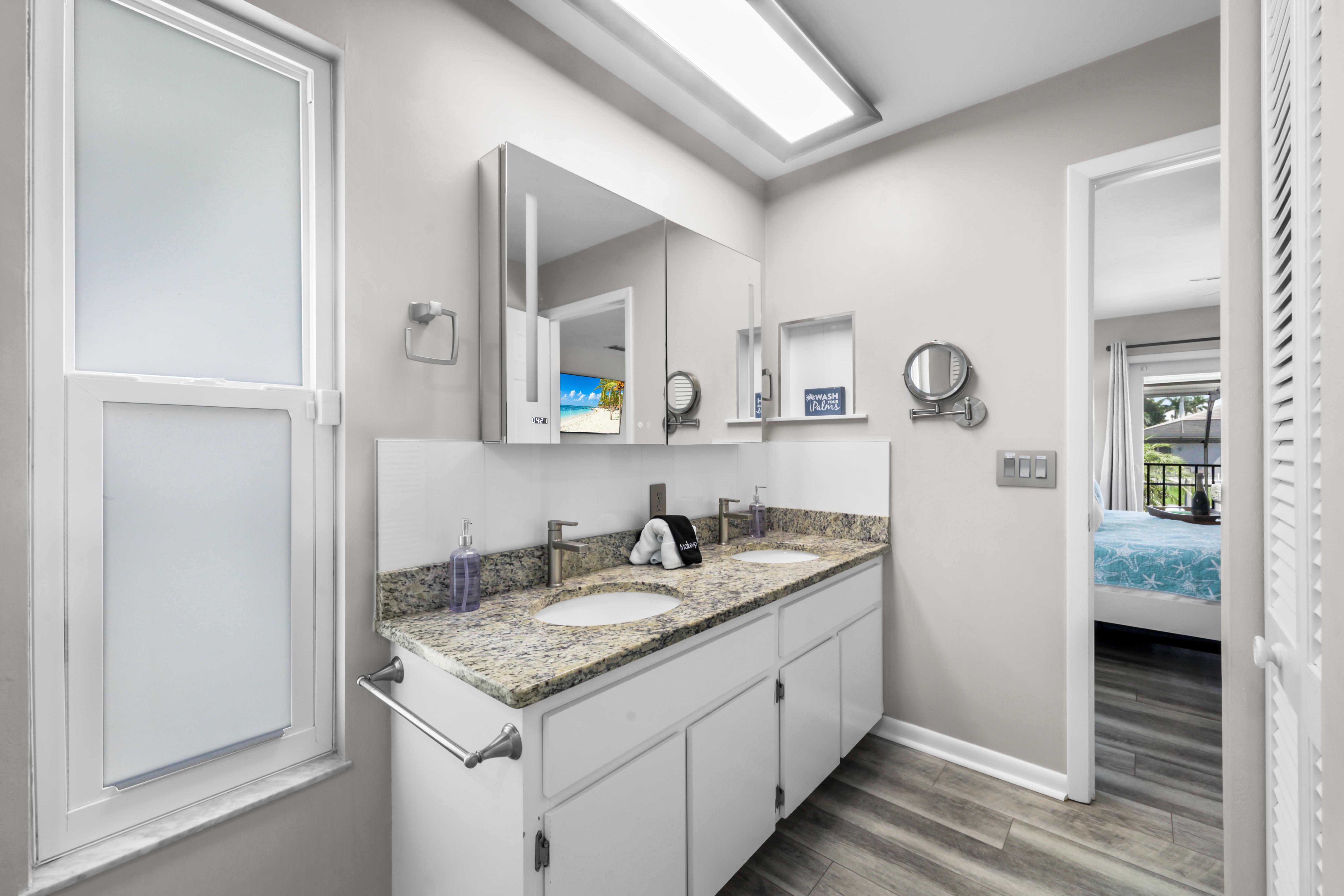 Arrive at your own slice of paradise along a palm-lined drive framed by tropical landscaping, leading up to this classic Florida-style waterfront retreat. With 2,200 square feet across three stories, it offers plenty of space for family and friends to spread out and enjoy the island lifestyle. It sleeps 14, with two king beds, two full-over-queen bunk beds, a sleeper sofa, and three-and-a-half bathrooms.