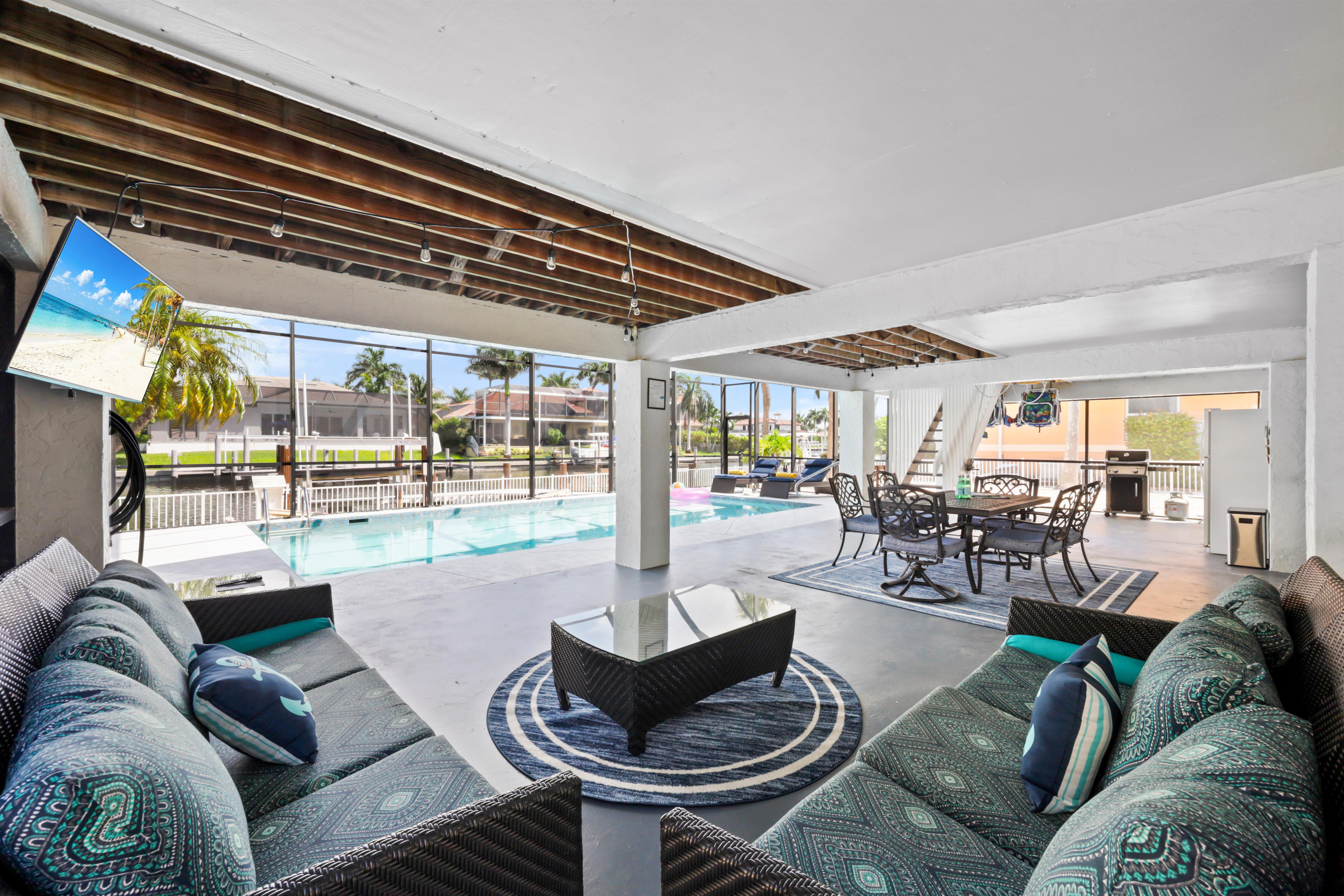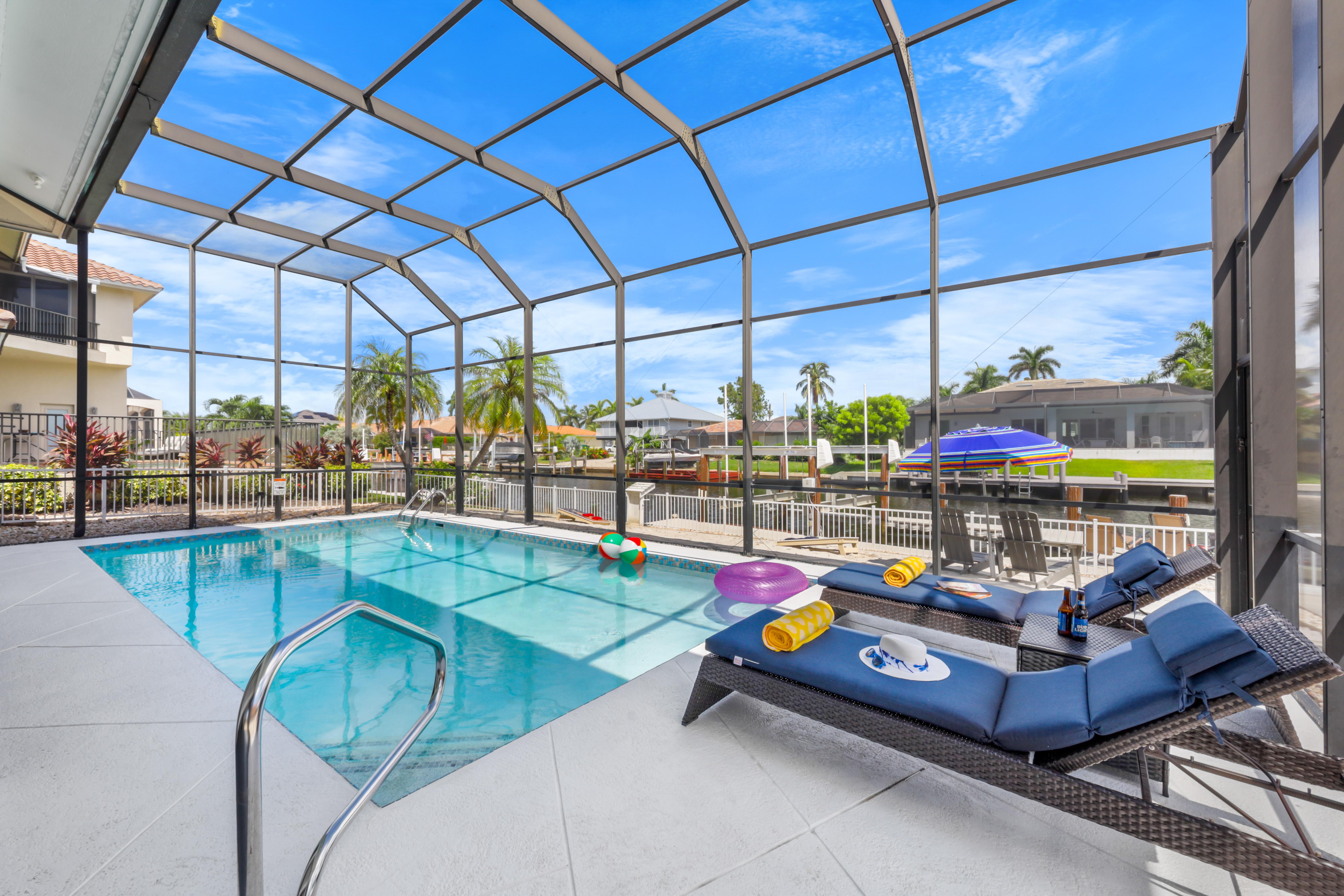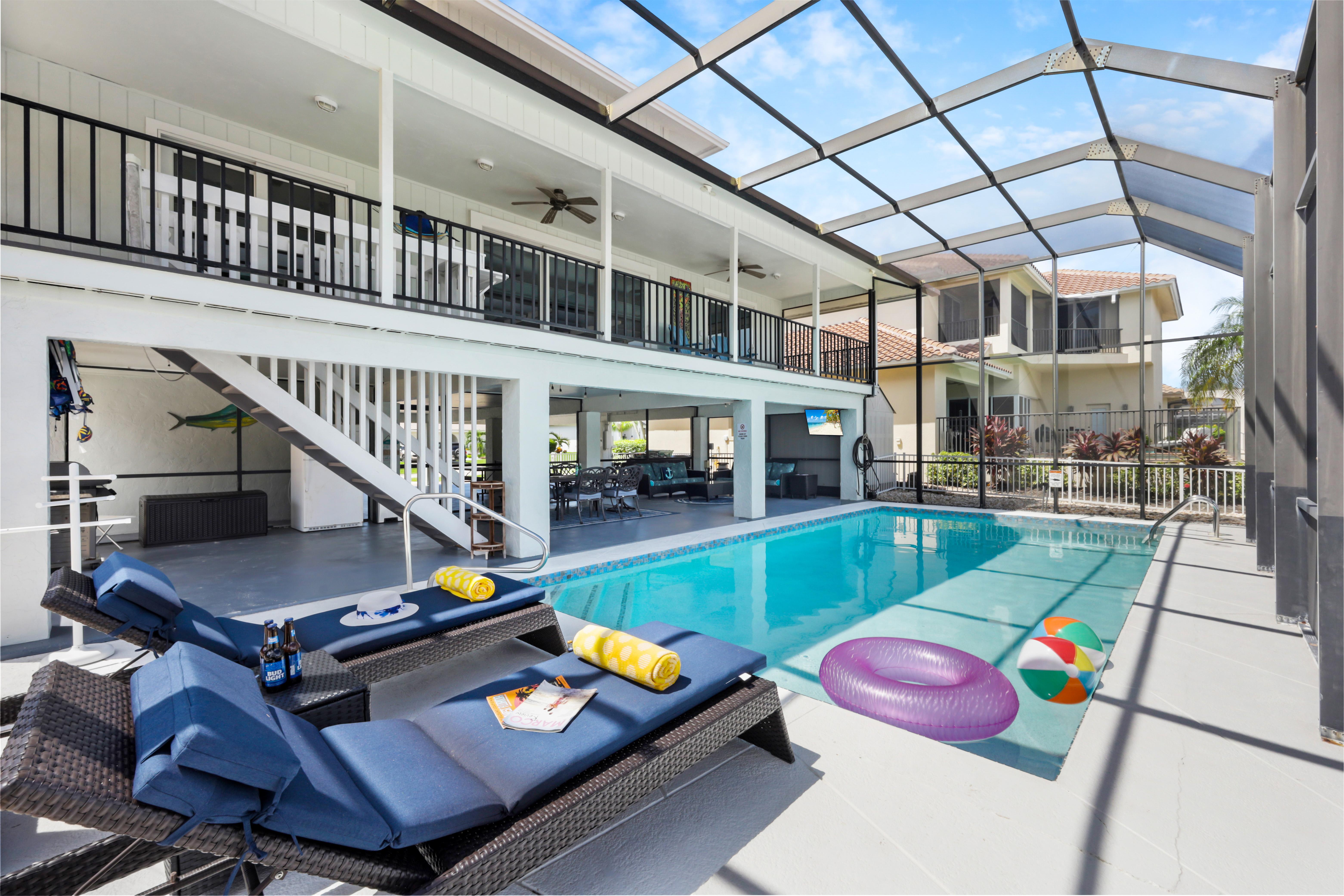 On the ground level, you’ll find your private resort-style lanai. Dine at the shaded table, lounge in the sun, or relax in the outdoor seating area with its television. Take a dip in the heated pool set overlooking the tranquil canal, while you store your beverages, burgers, and hot dogs in the full outdoor refrigerator. Host a famil...