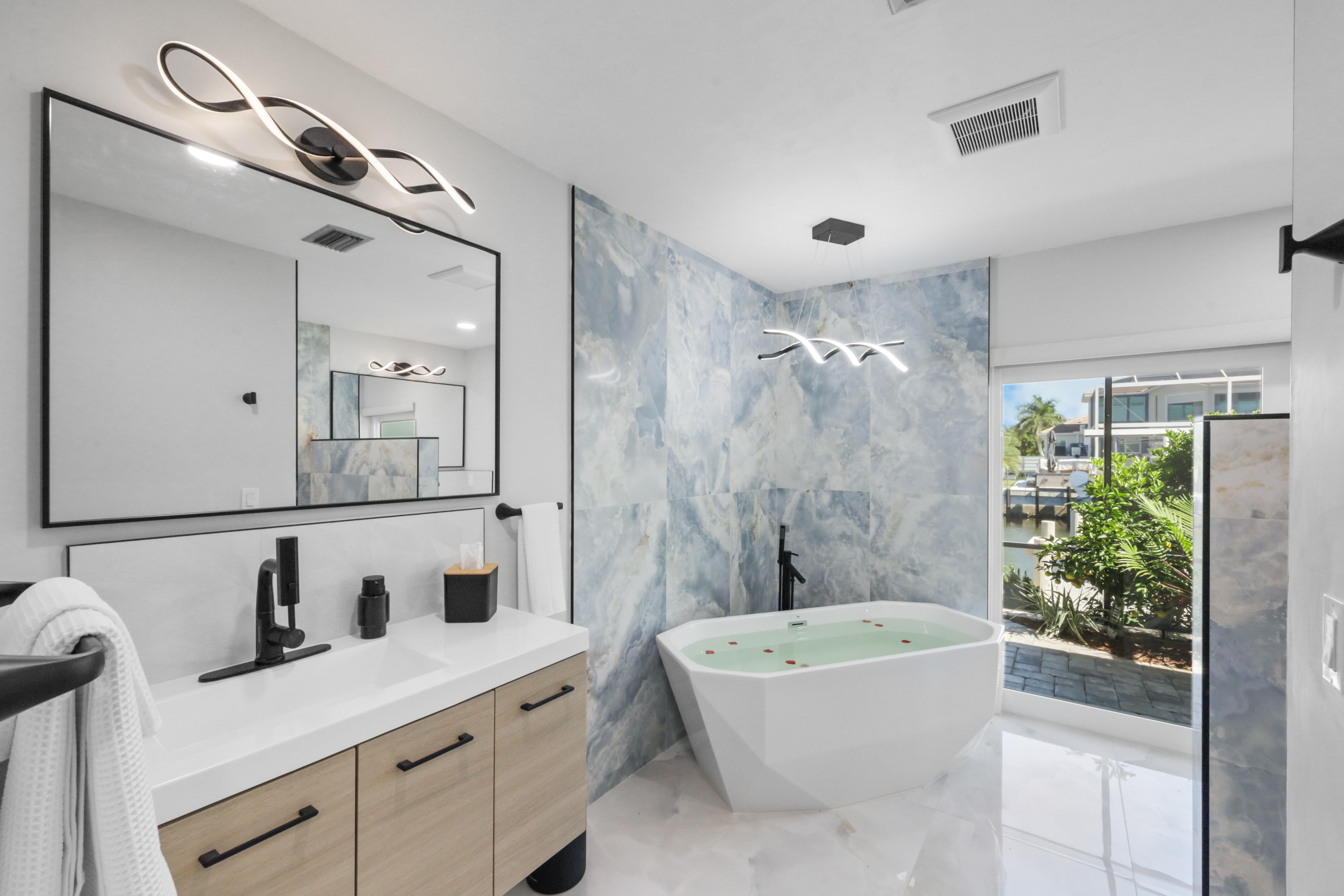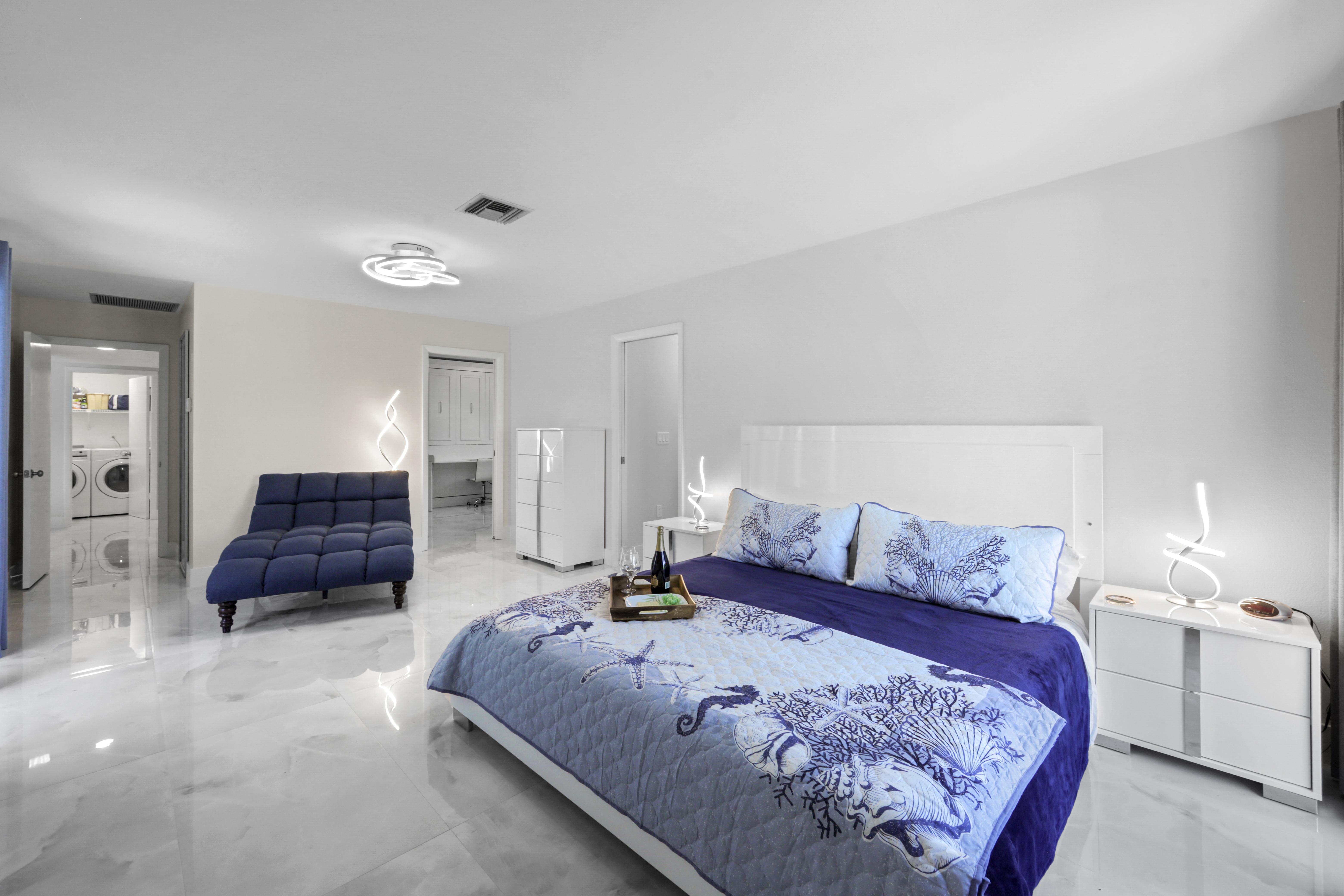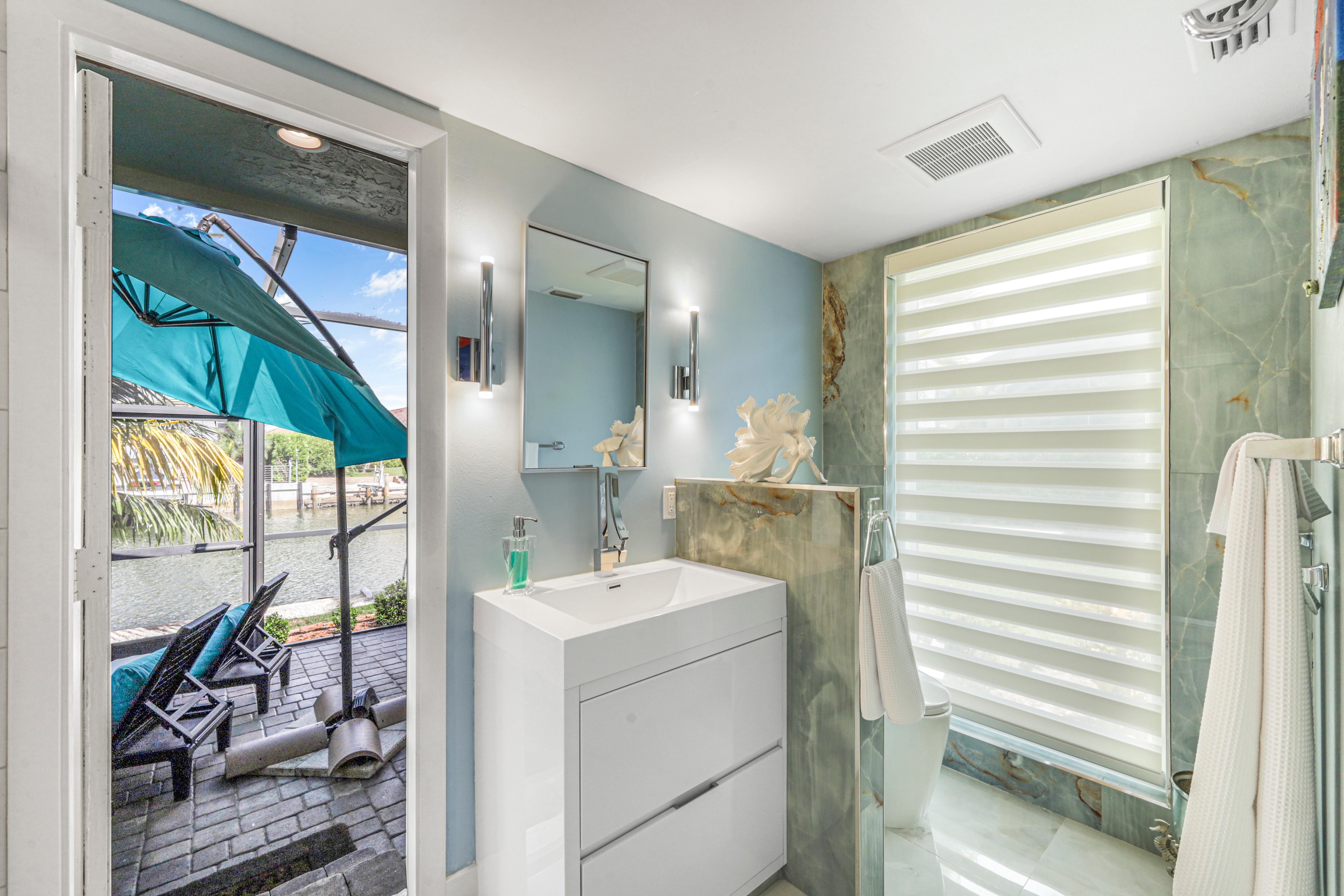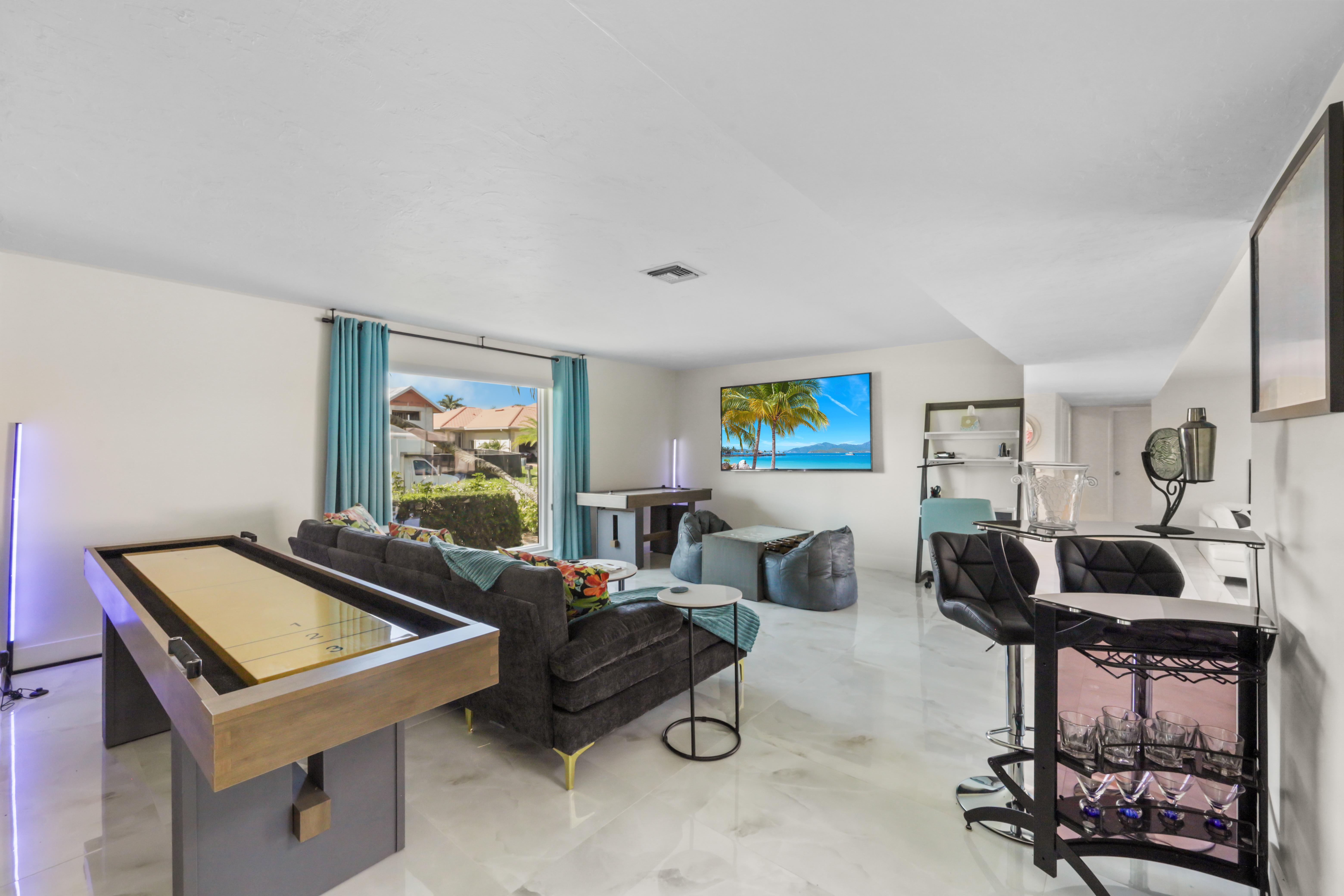 Step into your very own waterfront retreat on Marco Island, where tropical beauty meets modern coastal comfort. This four-bedroom, three-and-a-half-bathroom, 2,750-square-foot home welcomes you with a palm tree-lined driveway and lush tropical landscaping, setting the tone for an unforgettable getaway. It sleeps eight, with two king beds, two twin-sized bunk beds, one queen-sized murphy bed, and three-and-a-half bathrooms. It also comes with a two-car garage.