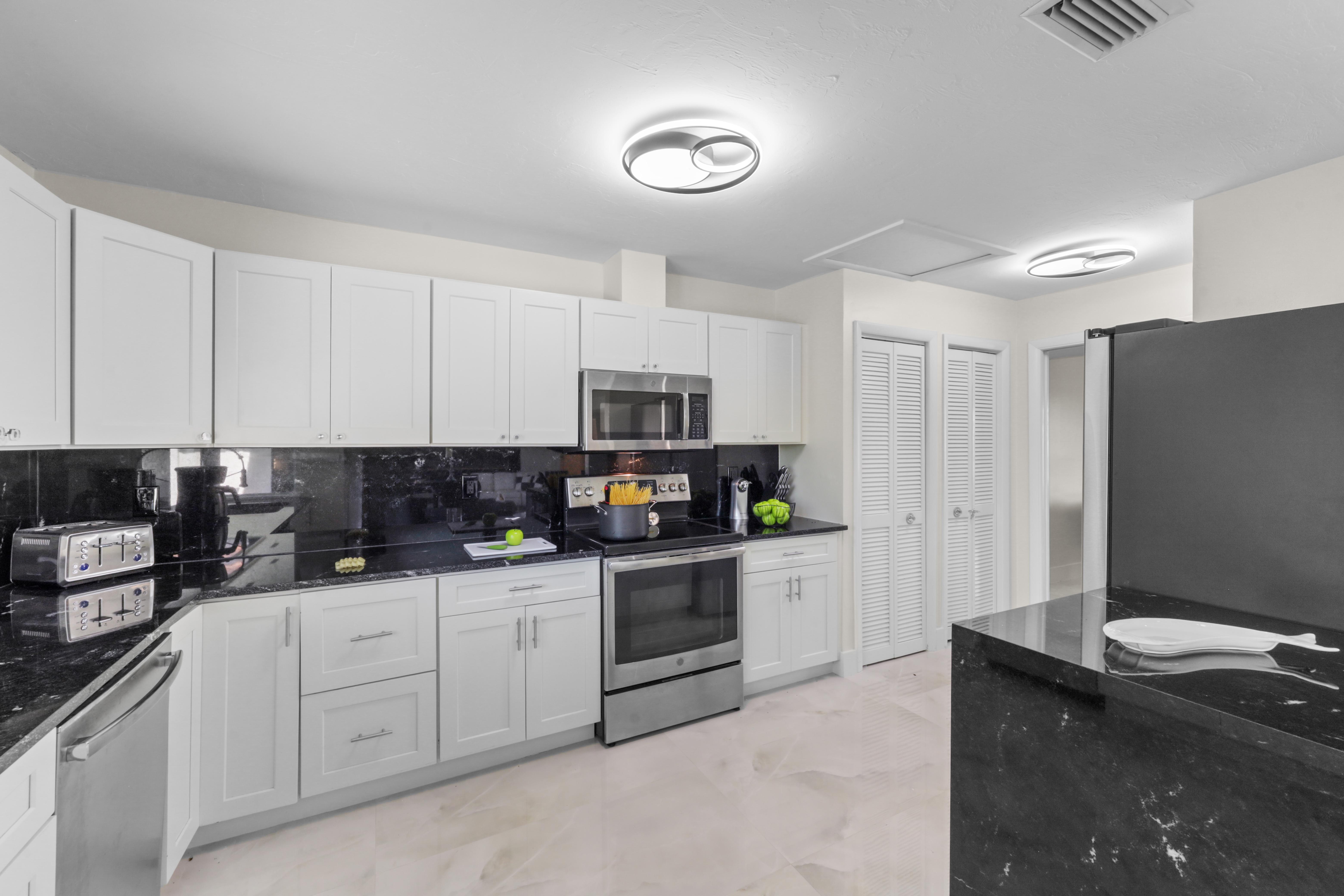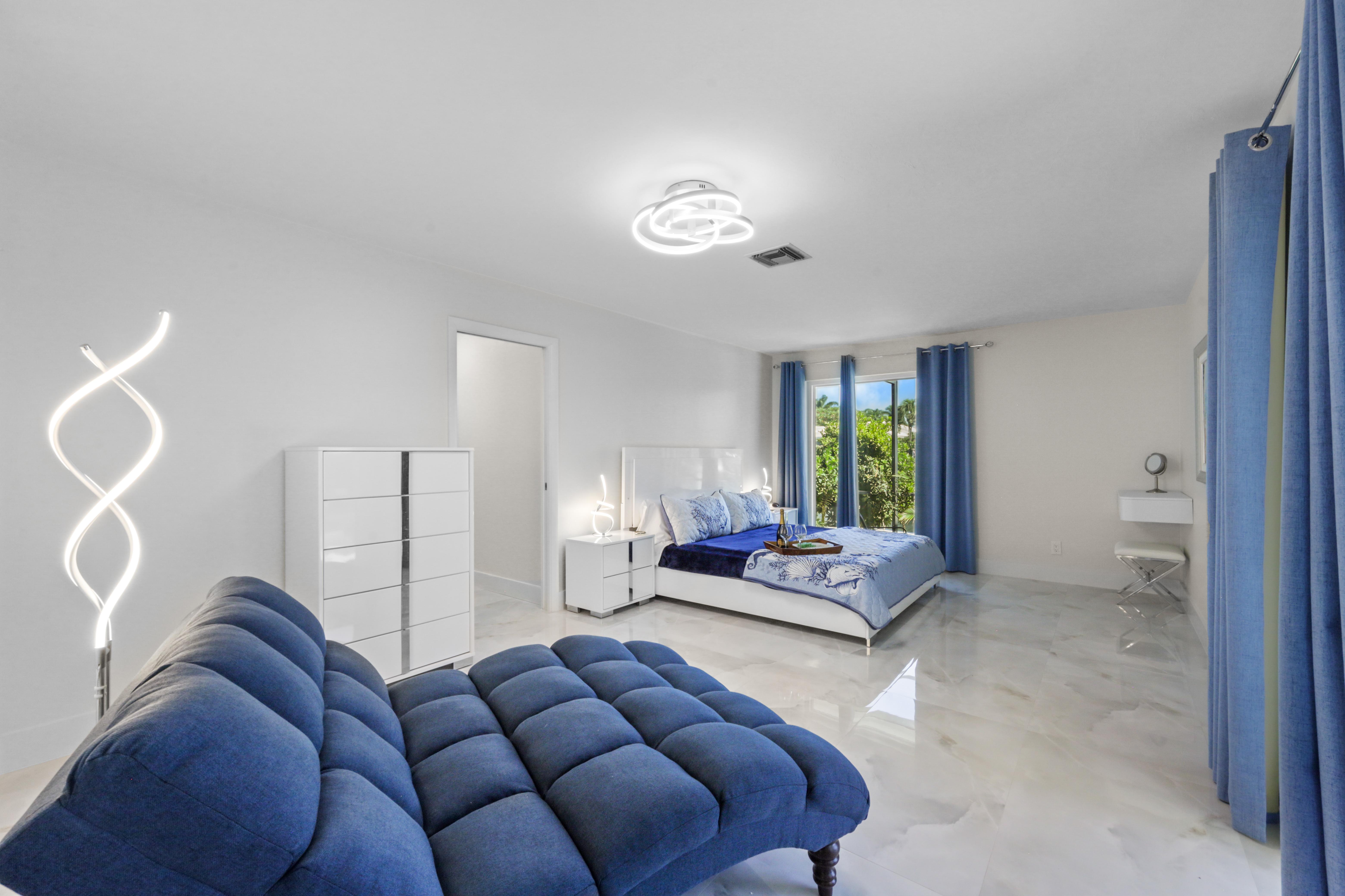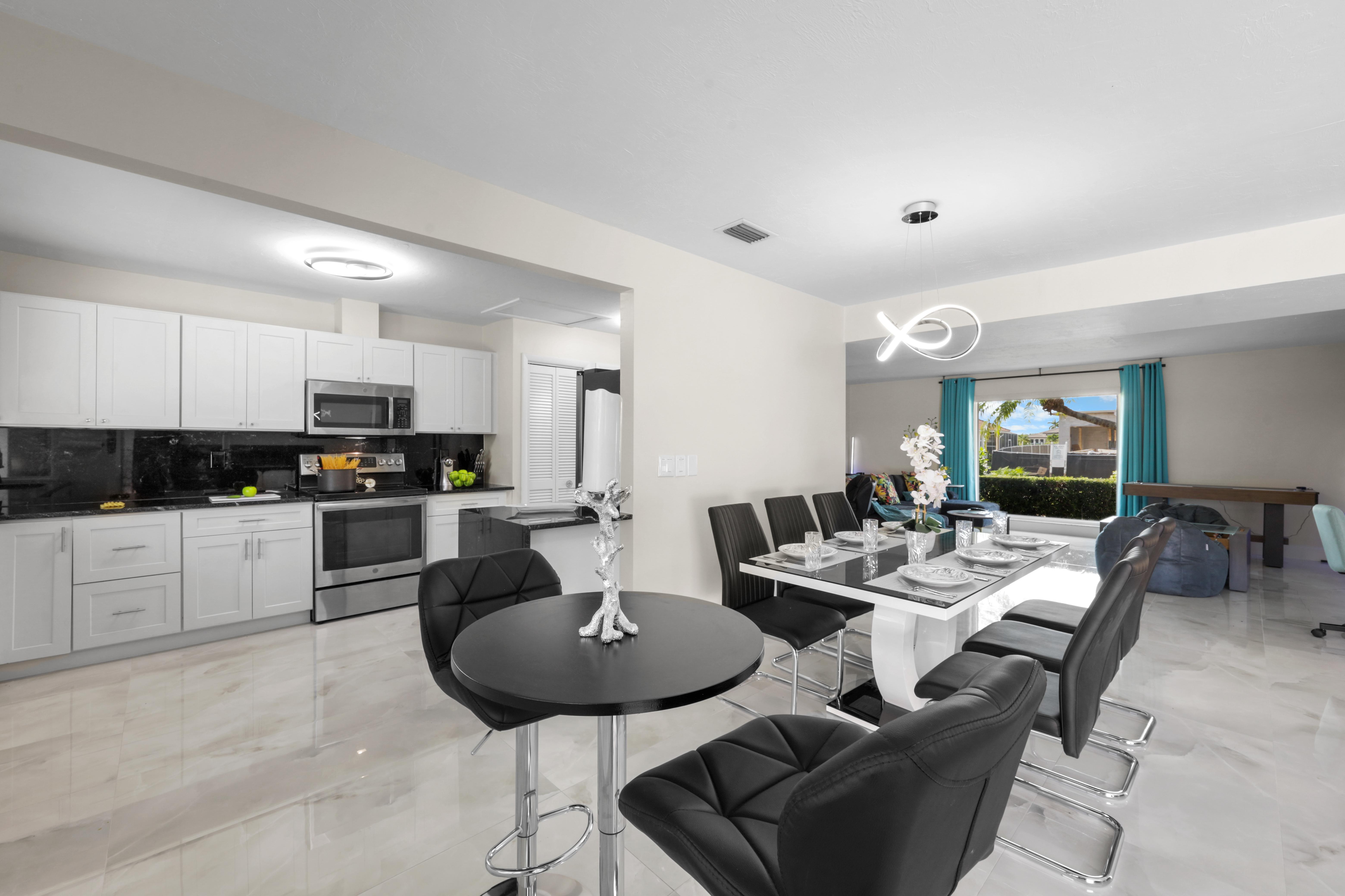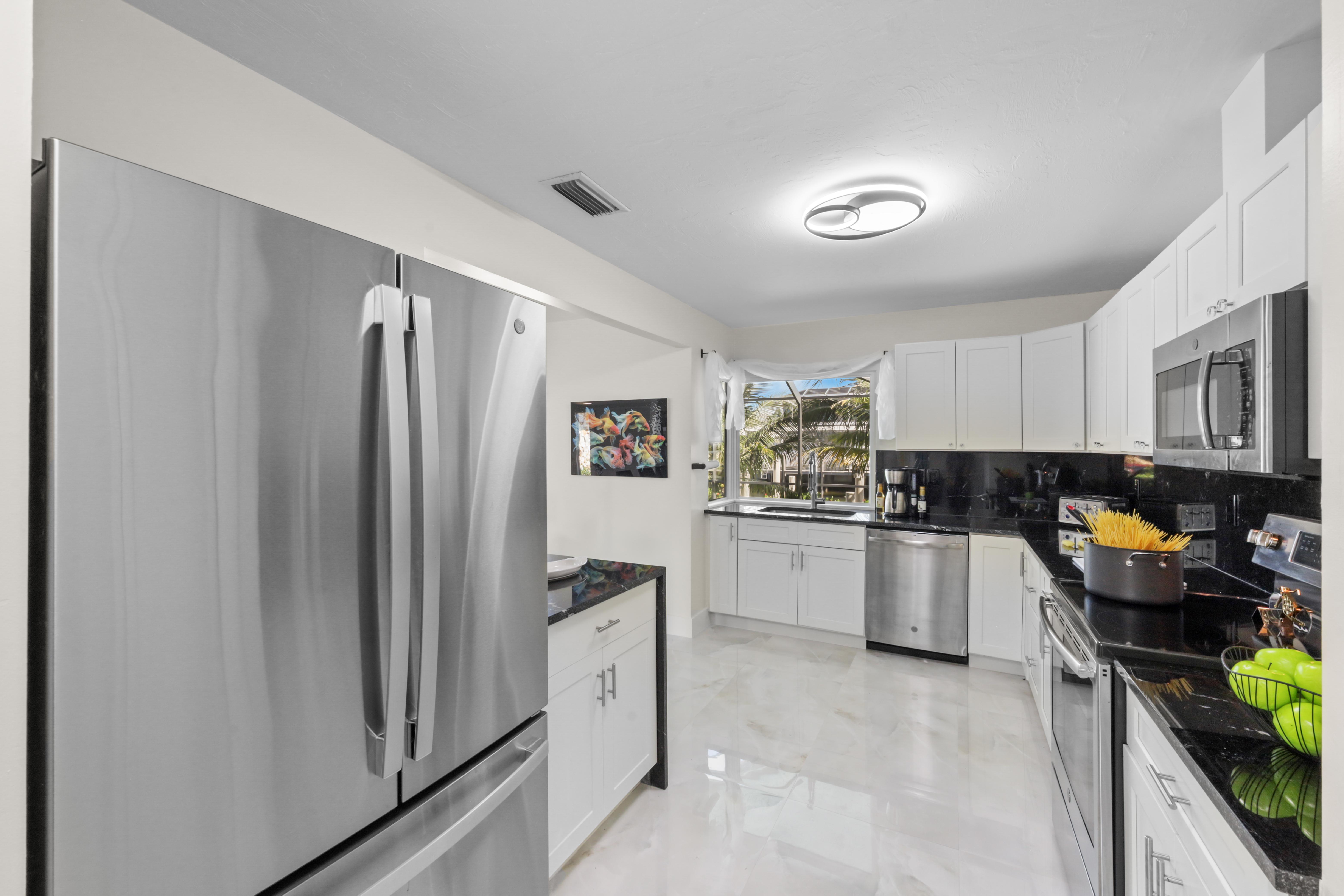 Step into your very own waterfront retreat on Marco Island, where tropical beauty meets modern coastal comfort. This four-bedroom, three-and-a-half-bathroom, 2,750-square-foot home welcomes you with a palm tree-lined driveway and lush tropical landscaping, setting the tone for an unforgettable getaway. It sleeps eight, with two king beds, two twin-sized bunk beds, one queen-sized murphy bed, and three-and-a-half bathrooms. It also comes with a two-car garage.