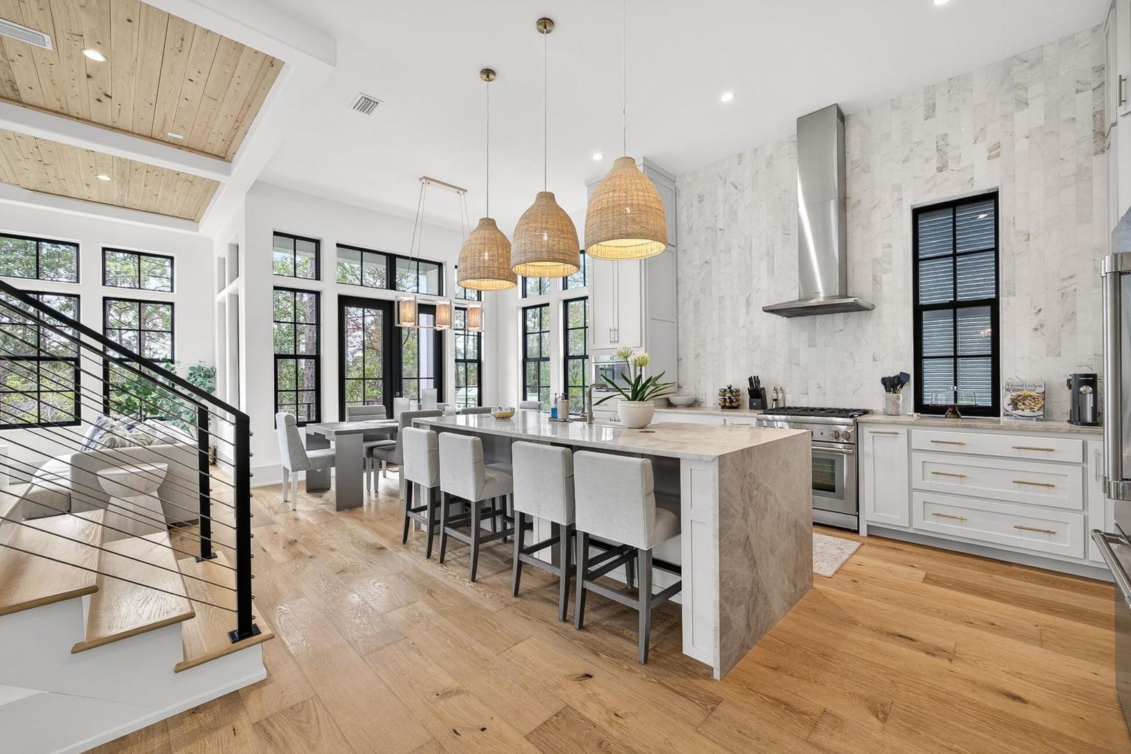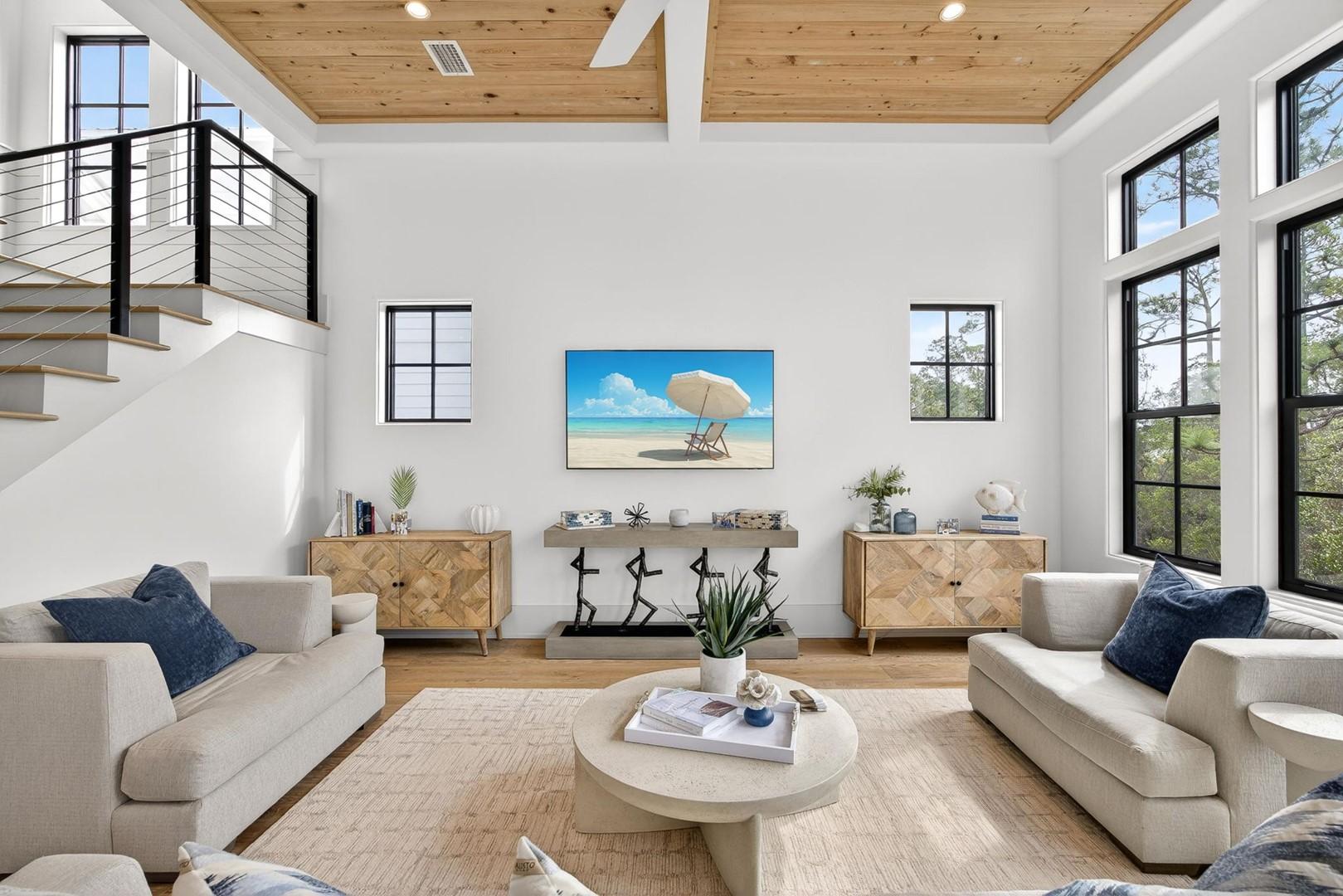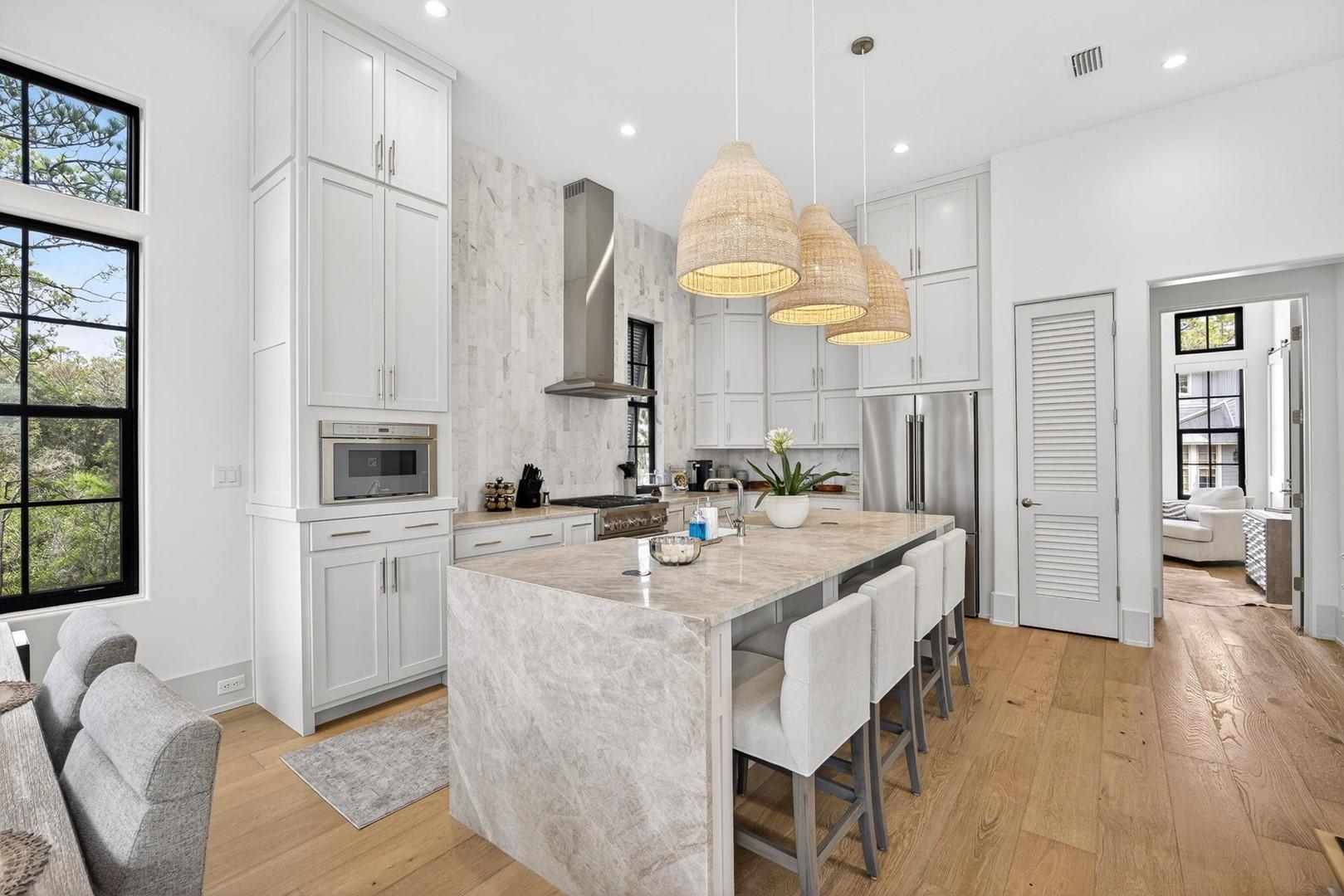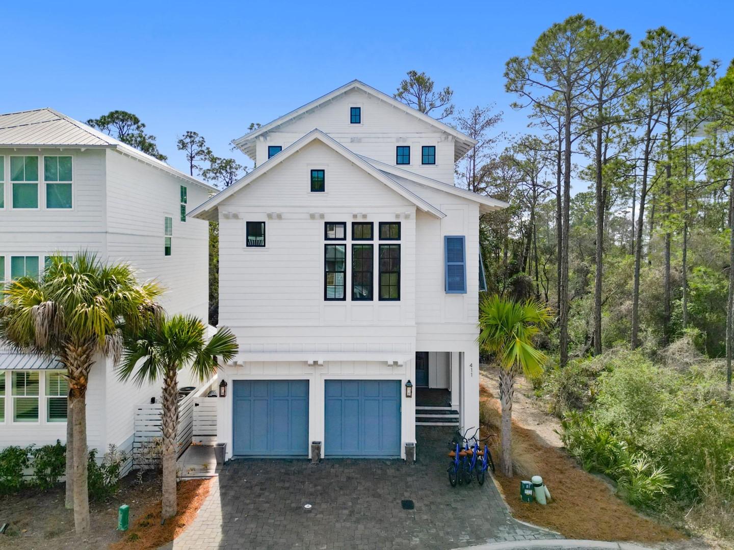 Mia’s Beach House by Panhandle Getaways is a luxury 30A retreat in Treetop Village. This newly built 3-level home features upscale finishes, spacious balconies, a gourmet kitchen, and stylish interiors. Guests enjoy community pool access, bikes included, and nearby beach access.