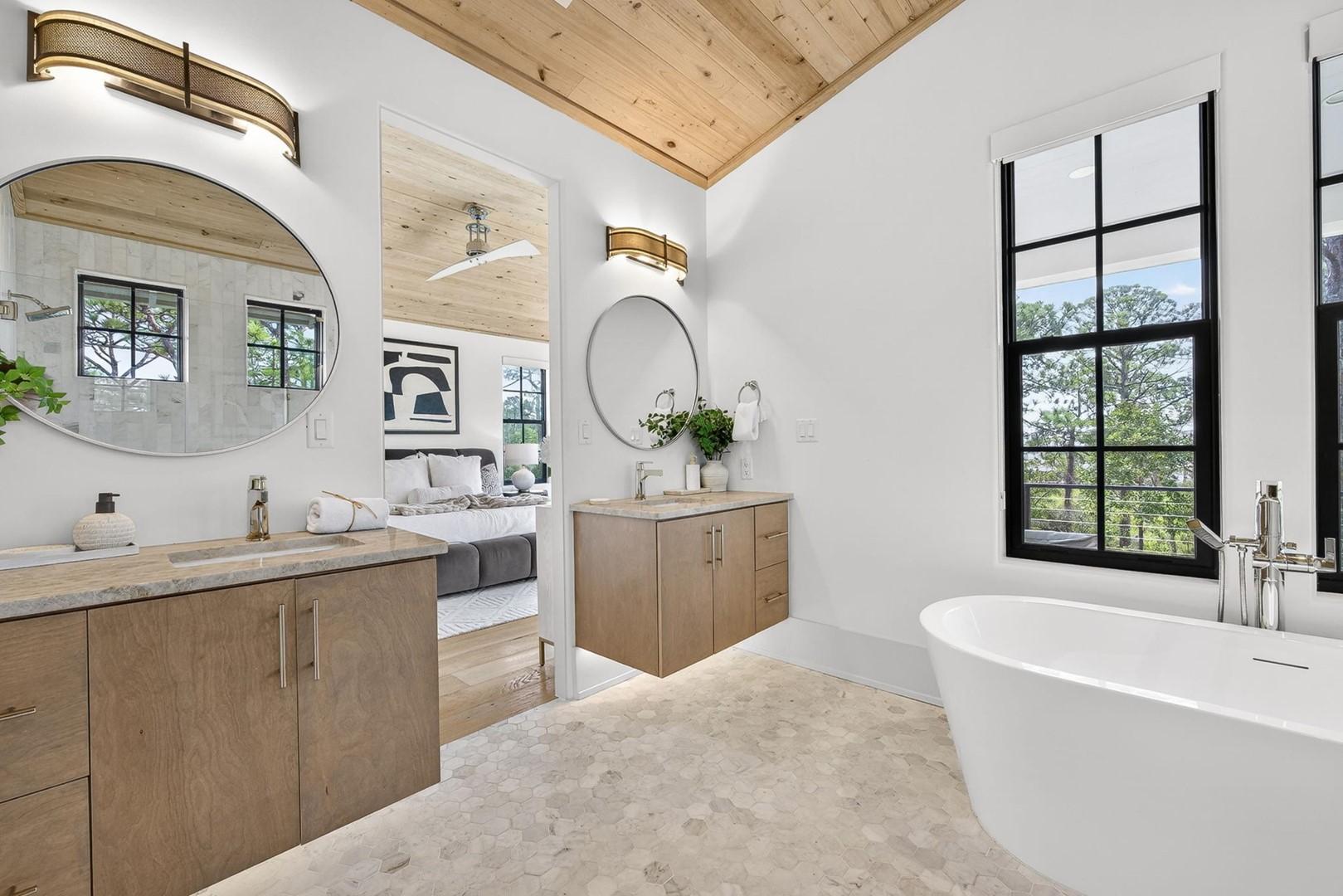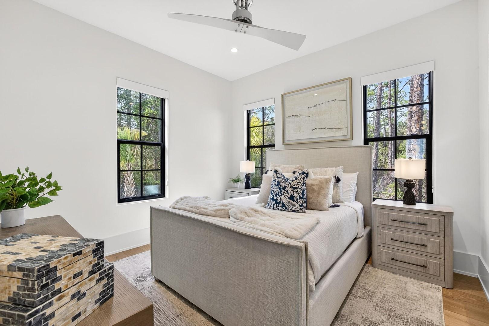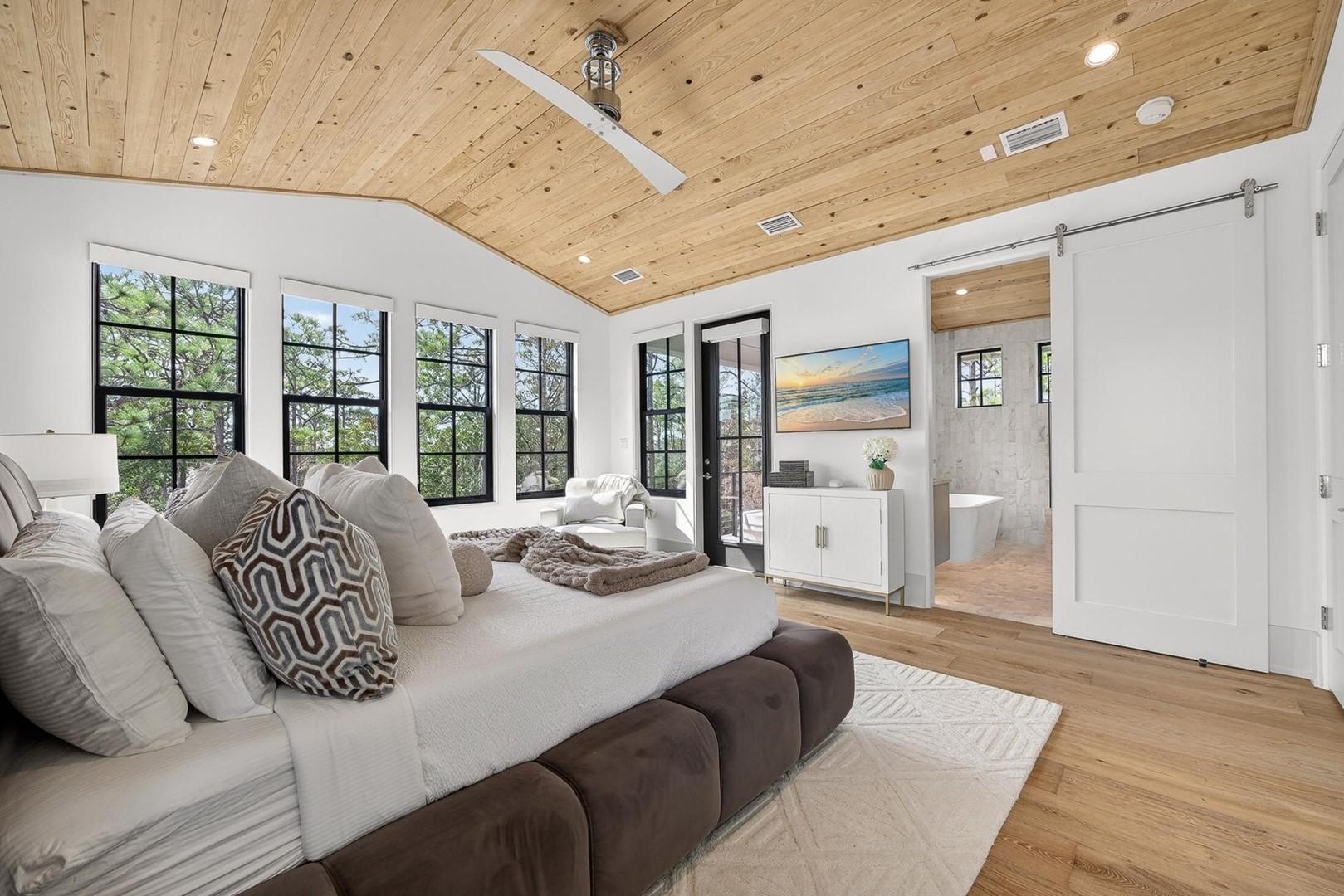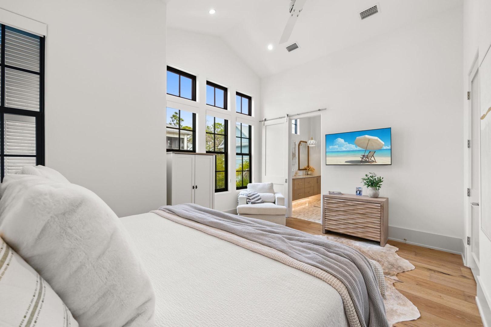 Mia’s Beach House by Panhandle Getaways is a luxury 30A retreat in Treetop Village. This newly built 3-level home features upscale finishes, spacious balconies, a gourmet kitchen, and stylish interiors. Guests enjoy community pool access, bikes included, and nearby beach access.