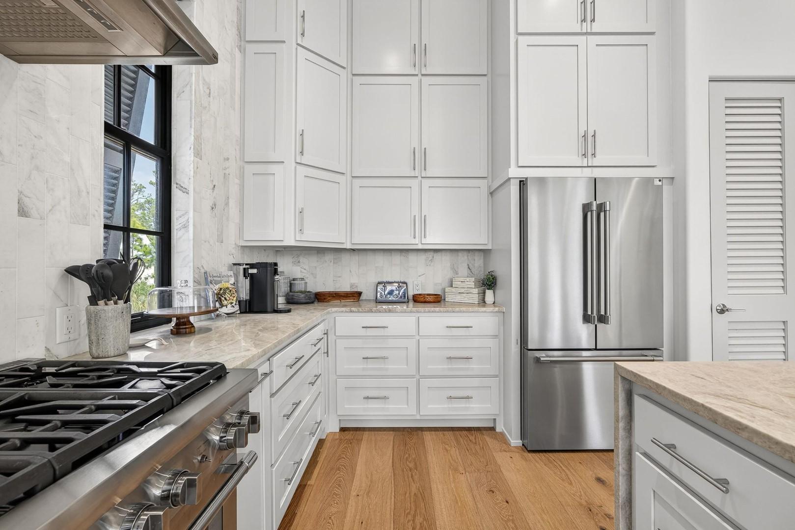 Fully equipped gourmet kitchen w/Thermador appliances + breakfast bar