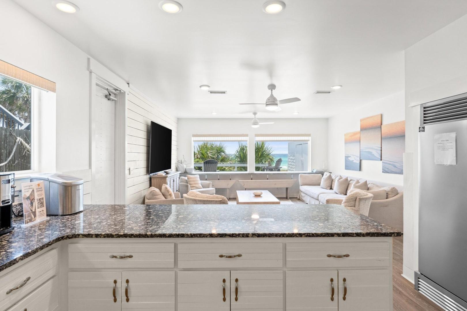 Family Tides by Panhandle Getaways is a 12-bedroom, 12-bathroom direct beachfront home on the quiet west end of Panama City Beach. Designed for large groups, weddings, or family reunions, this spacious retreat features two kitchens, expansive living areas, multiple balconies with gulf views, and flexible sleeping spaces to comfortably host up to 40 guests. For smaller gatherings, the property can also be rented as two separate 6-bedroom homes, Family Tides A and Family Tides B, each sleeping 20.