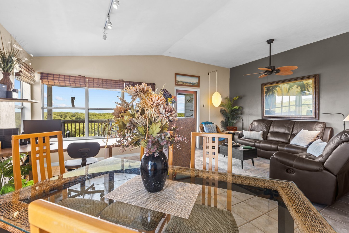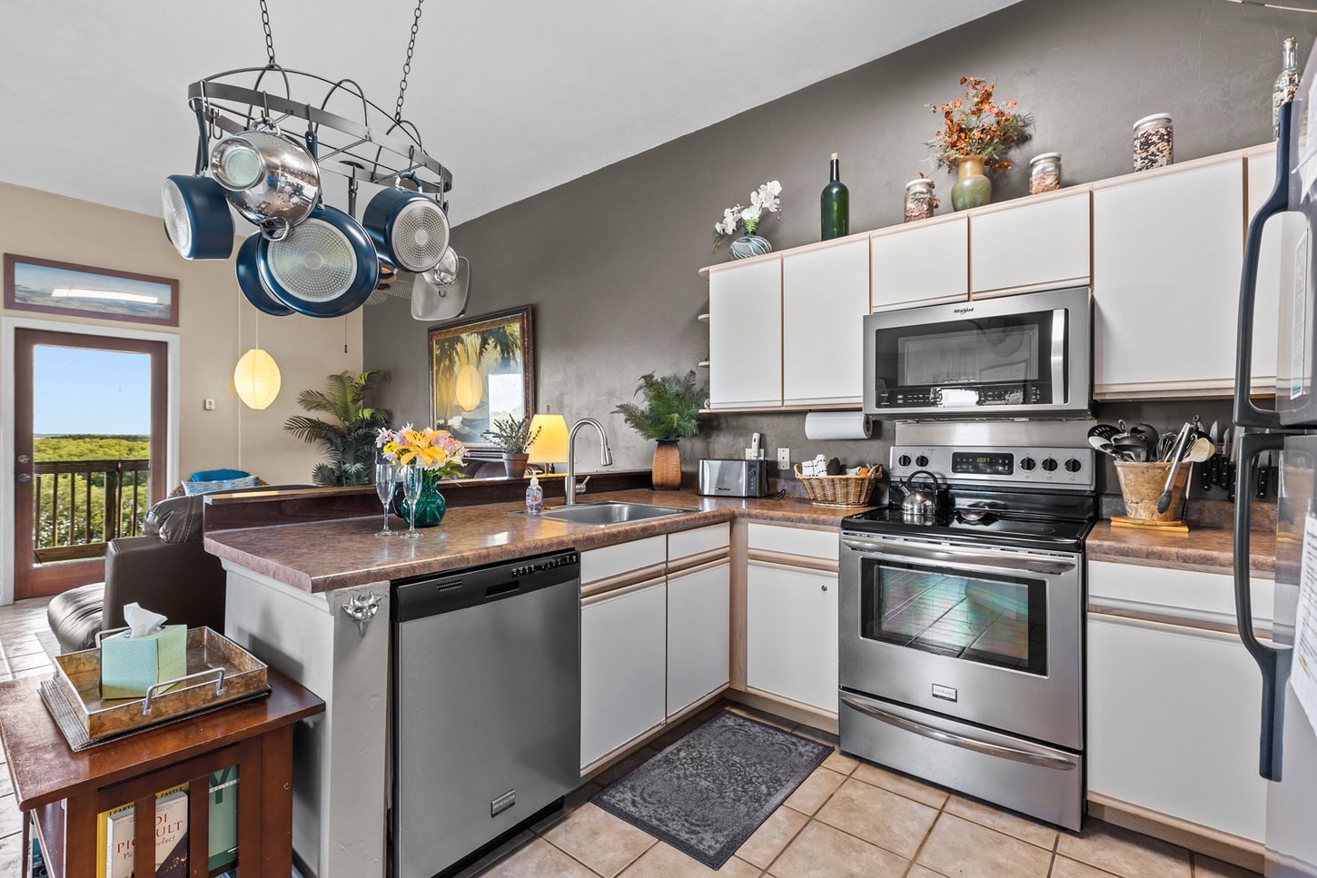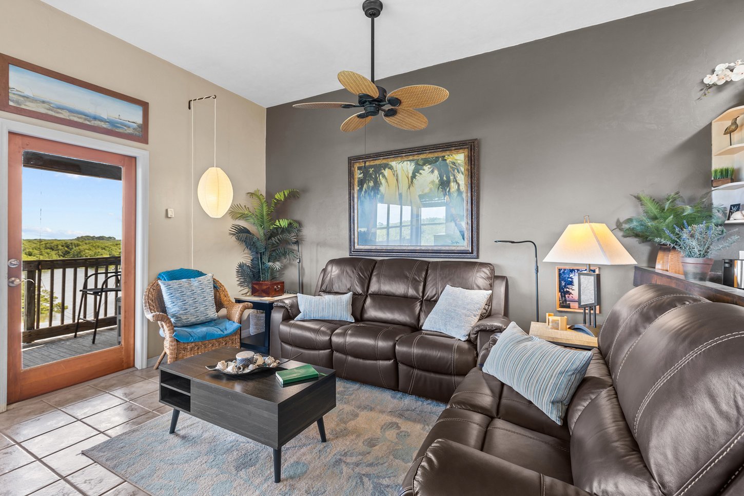 Our 3rd floor walk-up (NO ELEVATOR), corner condo has a VERY private balcony with fabulous view, real cooking kitchen, king and queen bedrooms, and two full baths set in a small, quiet, condo complex on a peninsula. Furnishings were chosen to impart a feeling of tranquility to complement the breathtaking views of Florida's Nature Coast.