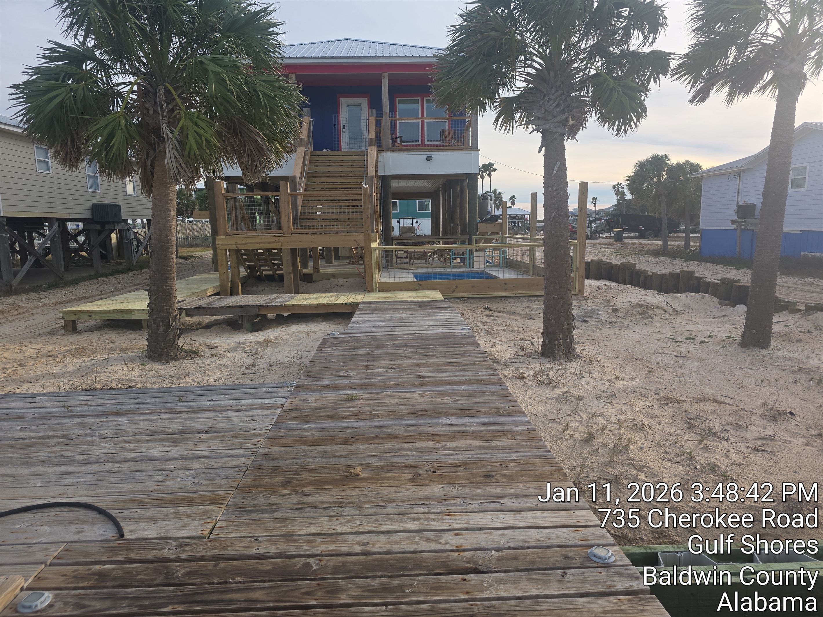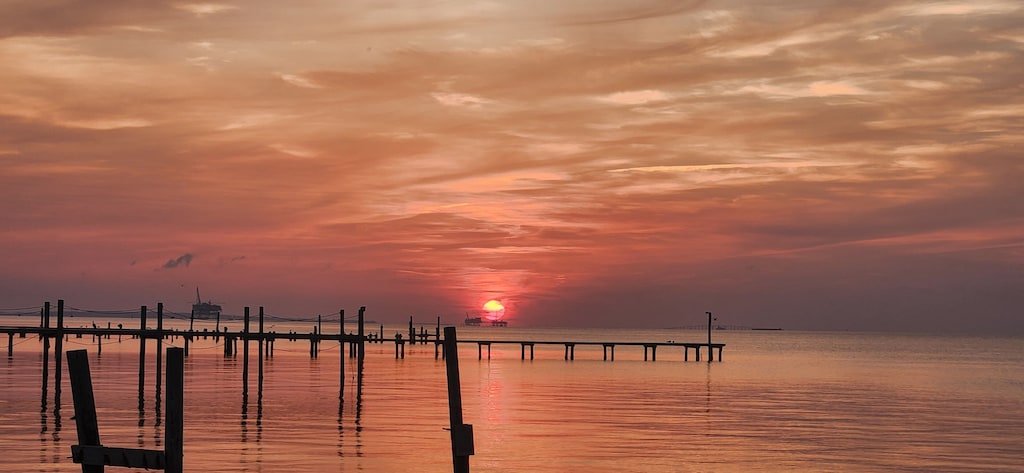 4 Bed 3 bath new construction complete December 2025. Located directly on Mobile Bay, the home boasts a 150-foot private pier that was recently updated . Guests can enjoy fishing for blue crabs, speckled trout, and redfish, while often witnessing spectacular dolphin shows. The sunrises and sunsets from this serene and secluded location in Fort Morgan, Alabama are truly exceptional.
