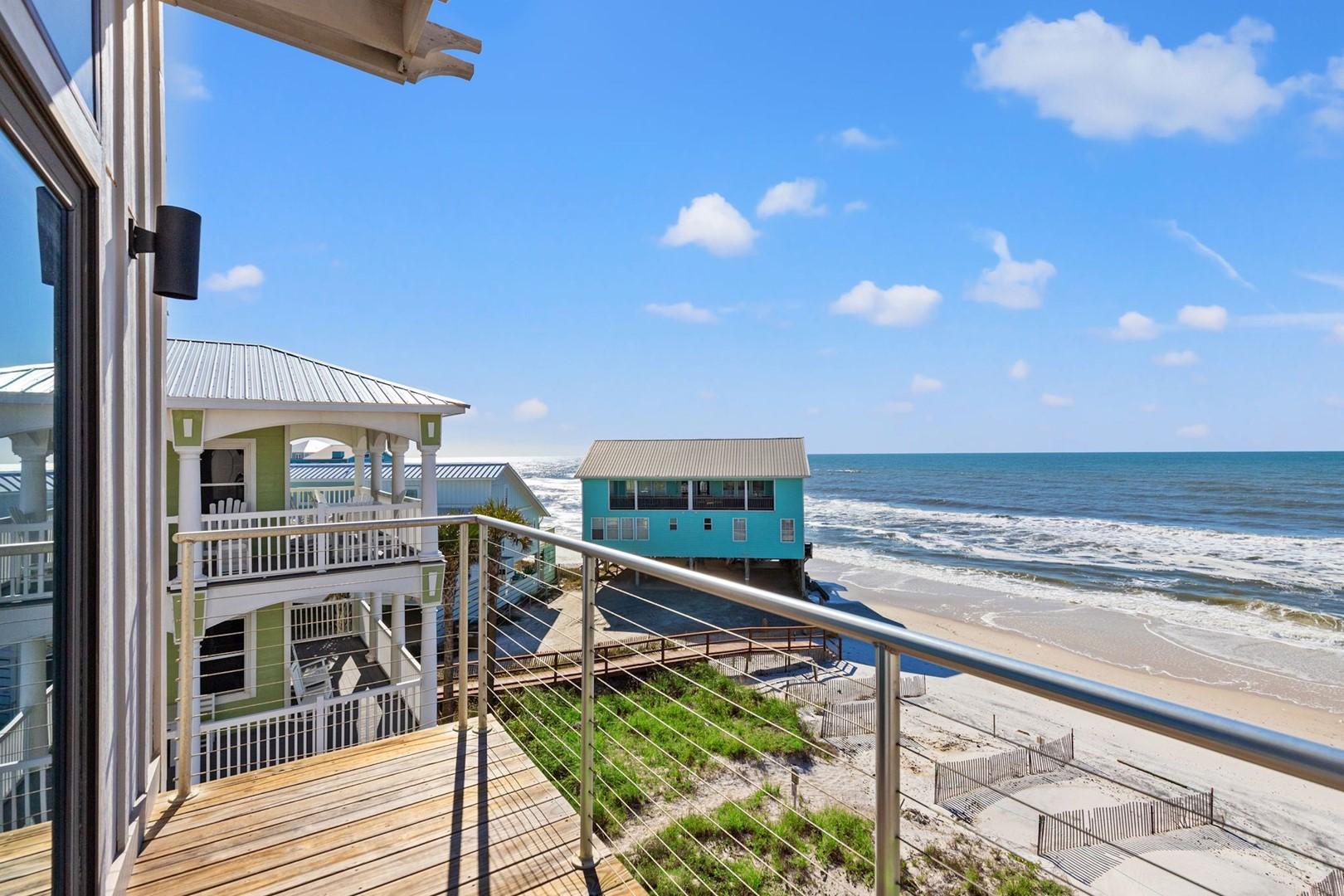 6 Pack Beach House by Panhandle Getaways is a spacious, direct beachfront vacation home in beautiful Cape San Blas, Florida, offering breathtaking Gulf views from every level. This 3-bedroom, 3.5-bathroom retreat features expansive balconies, modern coastal design, and room for the entire family — the perfect destination for a relaxing and memorable beach getaway.