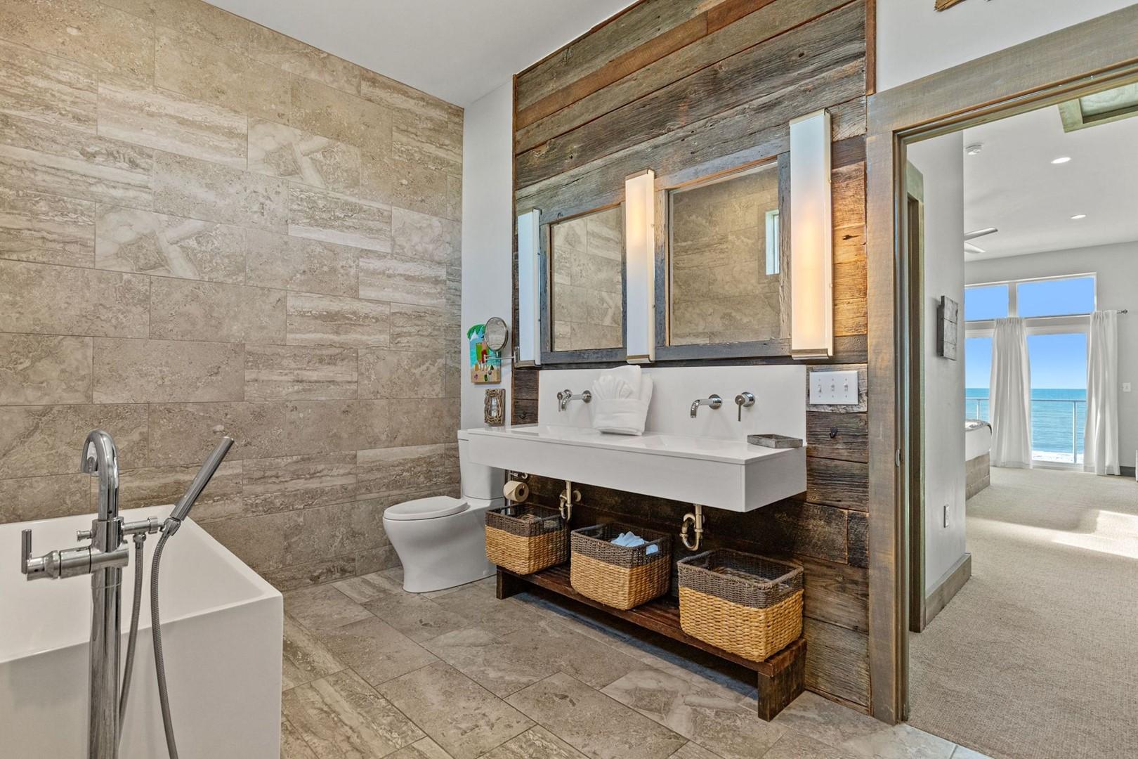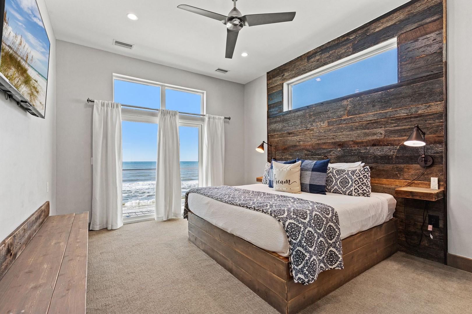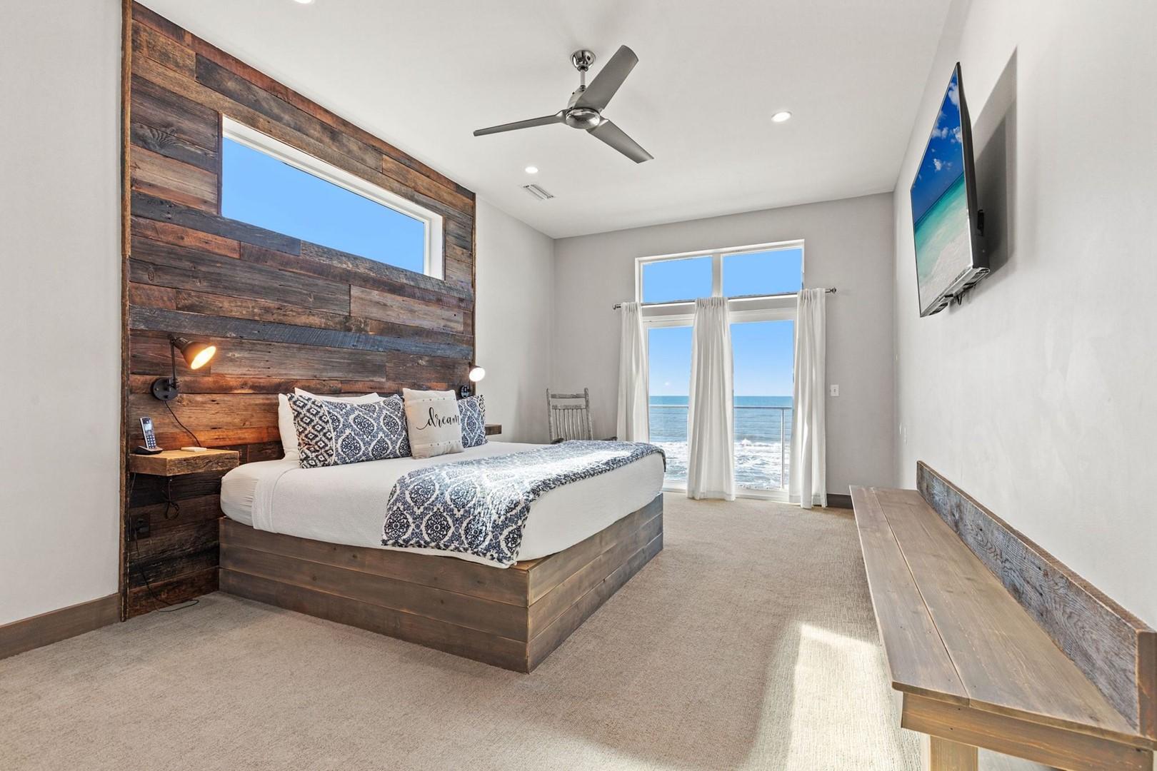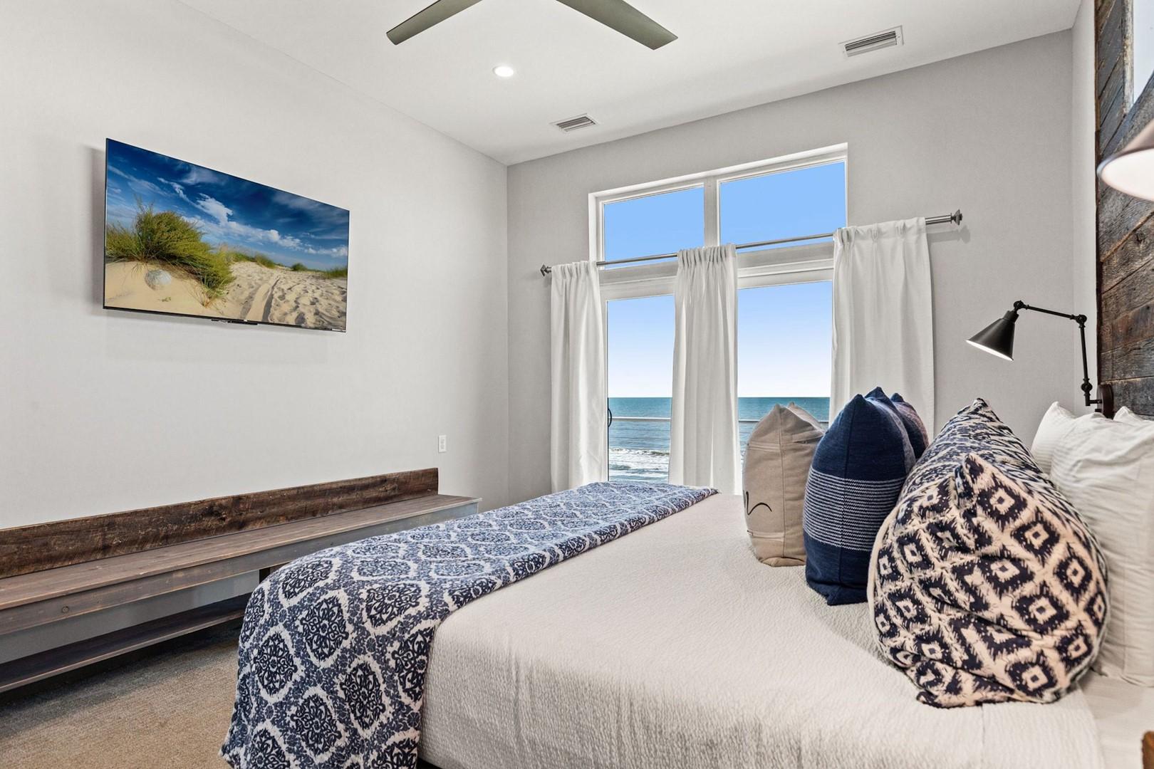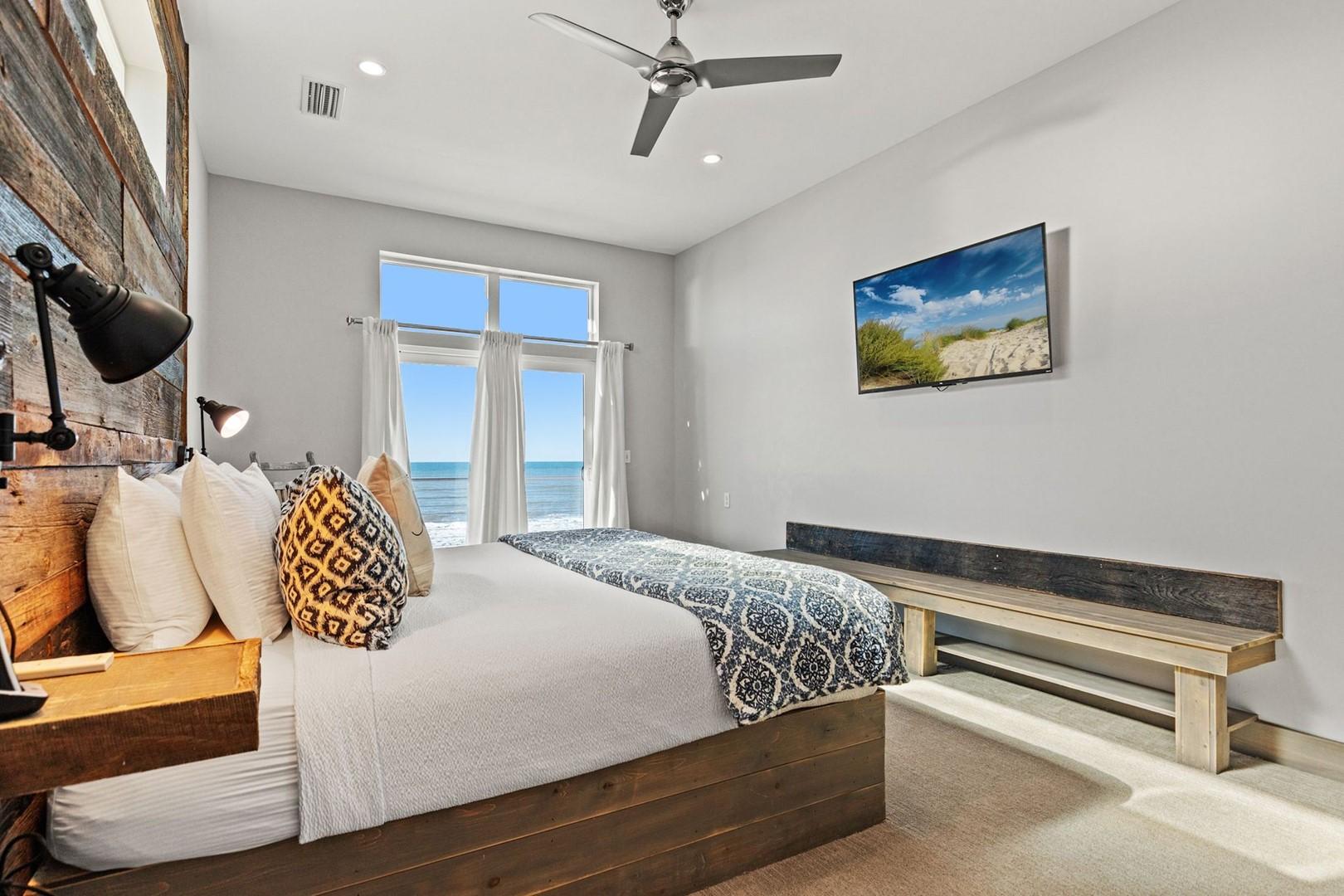 Bedroom 1 – King Bed, Gulf View, 60" Smart TV, En Suite Bathroom