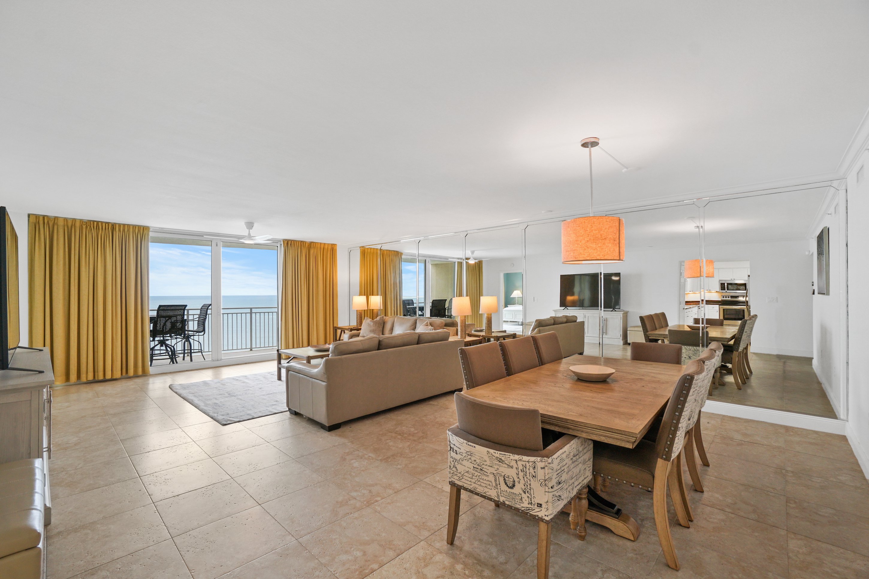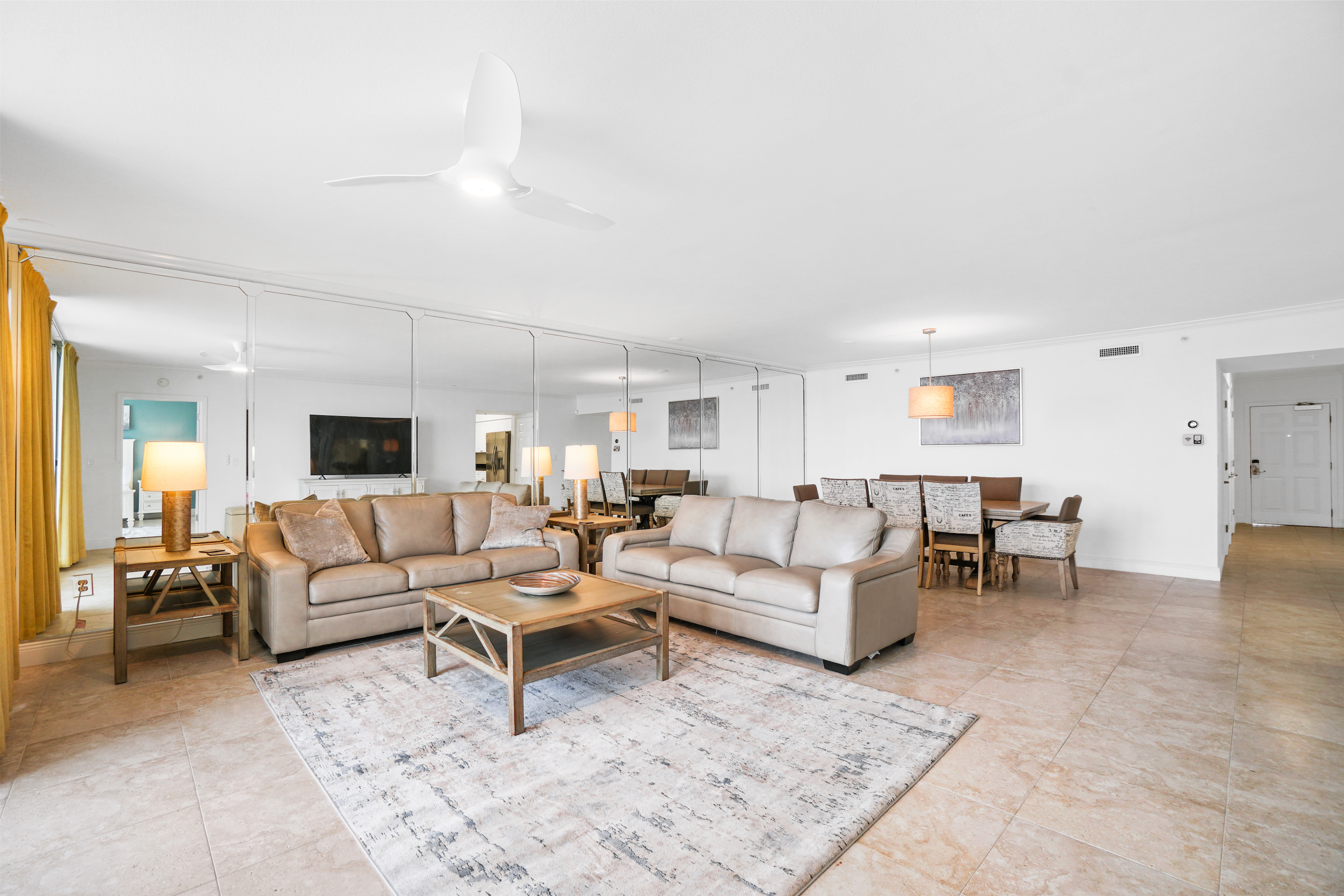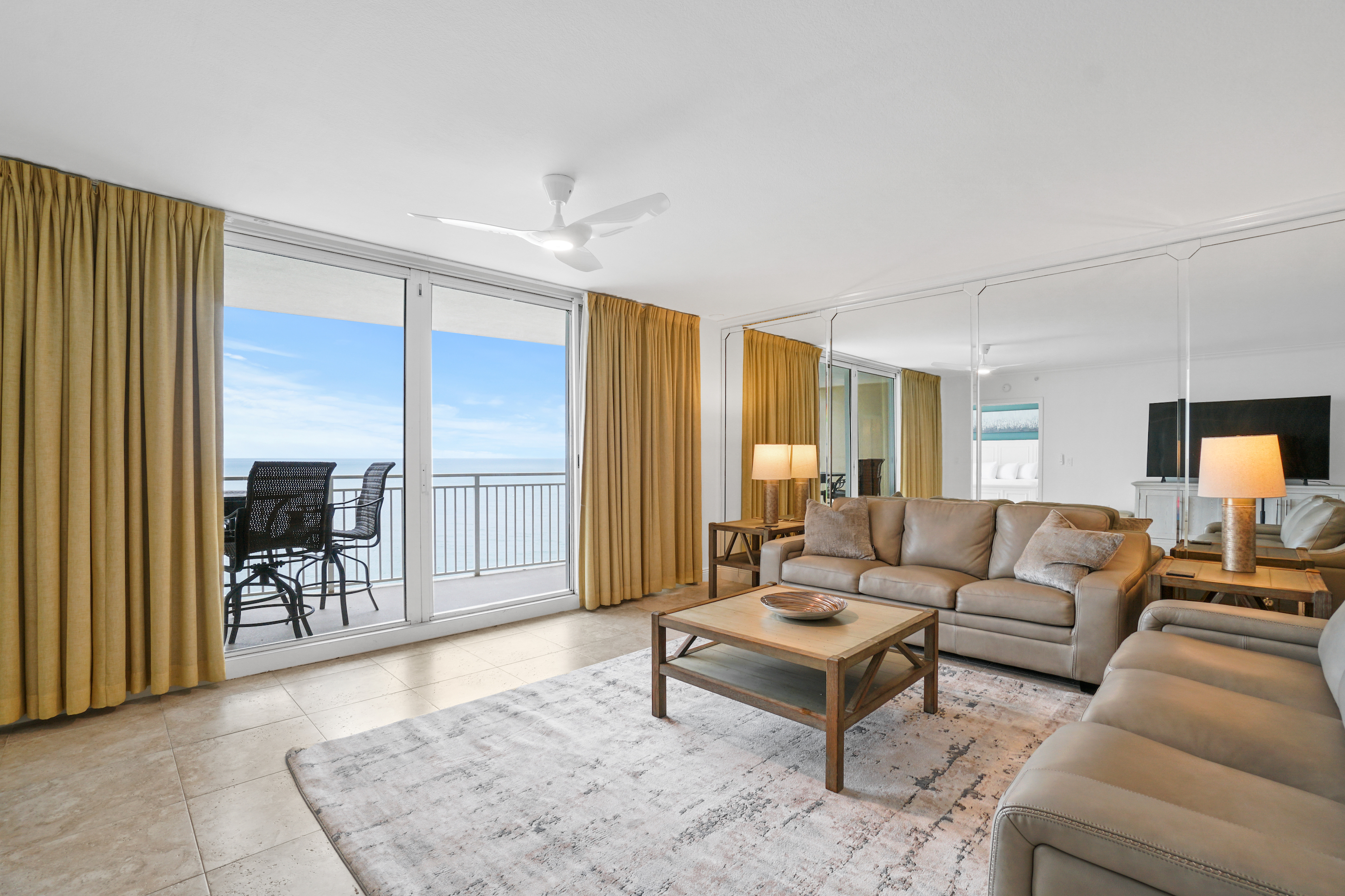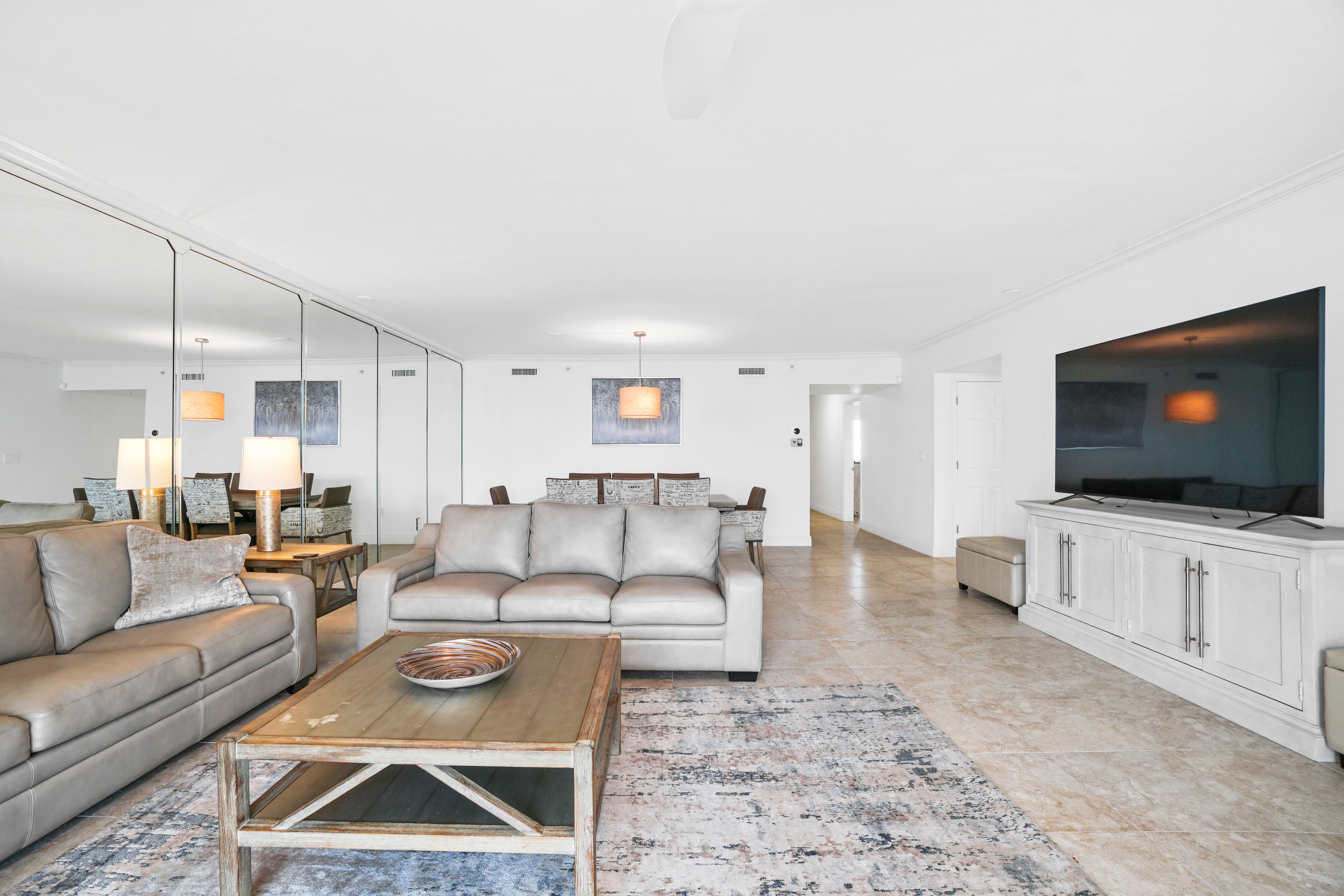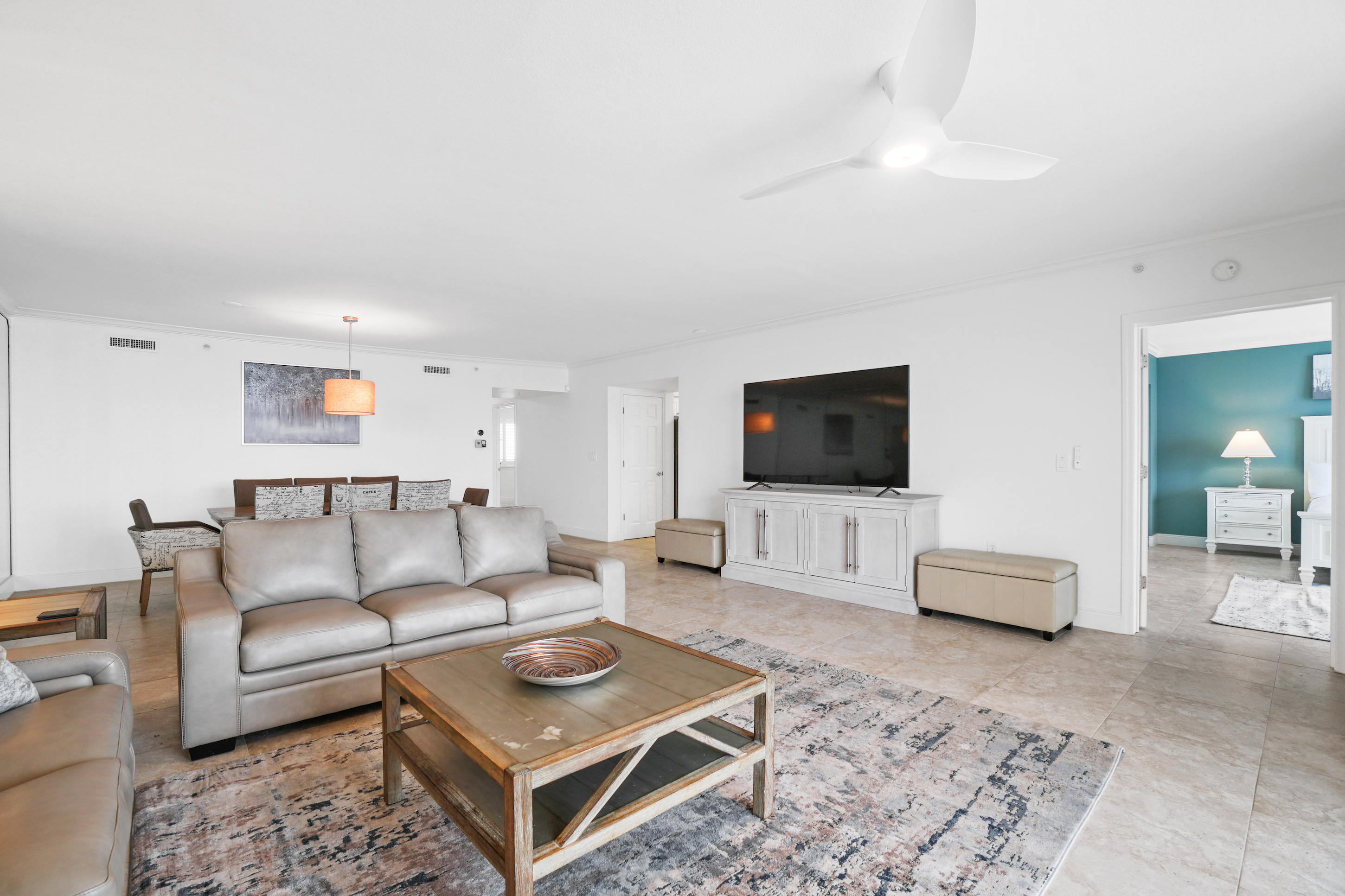 * Living Area - Gulf View, 75" Smart TV, 2 Full Sleeper Sofas