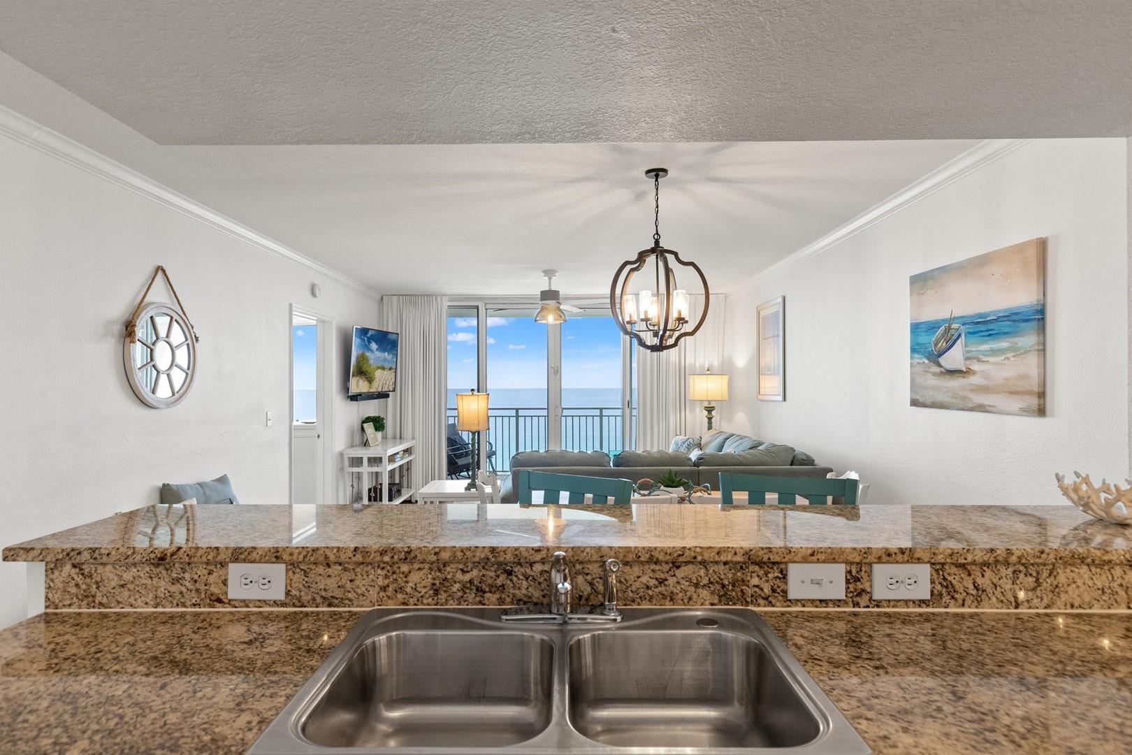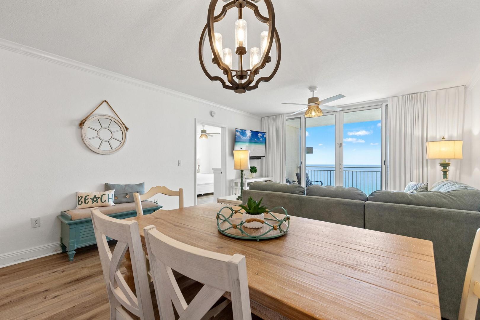 * Living Area with Gulf View and Smart TV