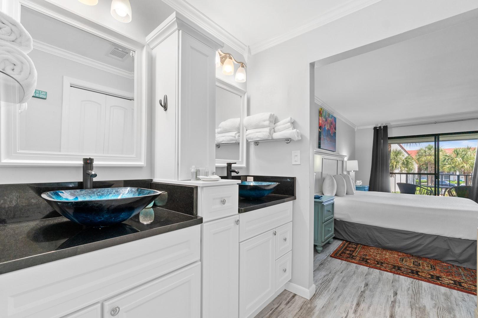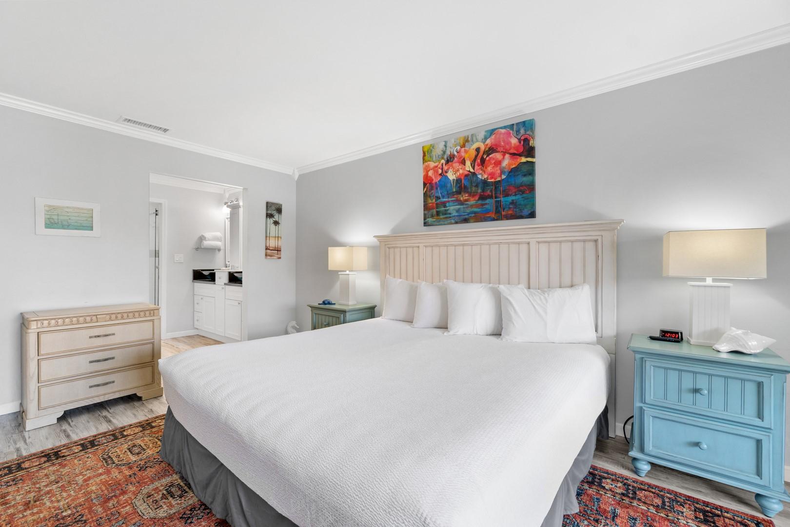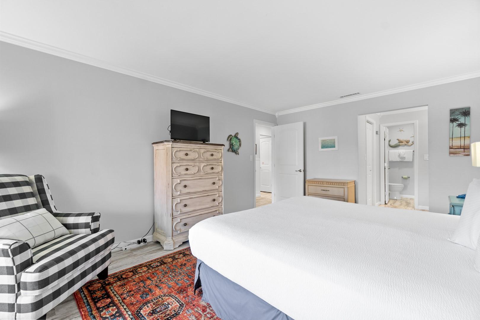 * Bedroom 1 - King Bed, 32" Smart TV, En Suite Bathroom