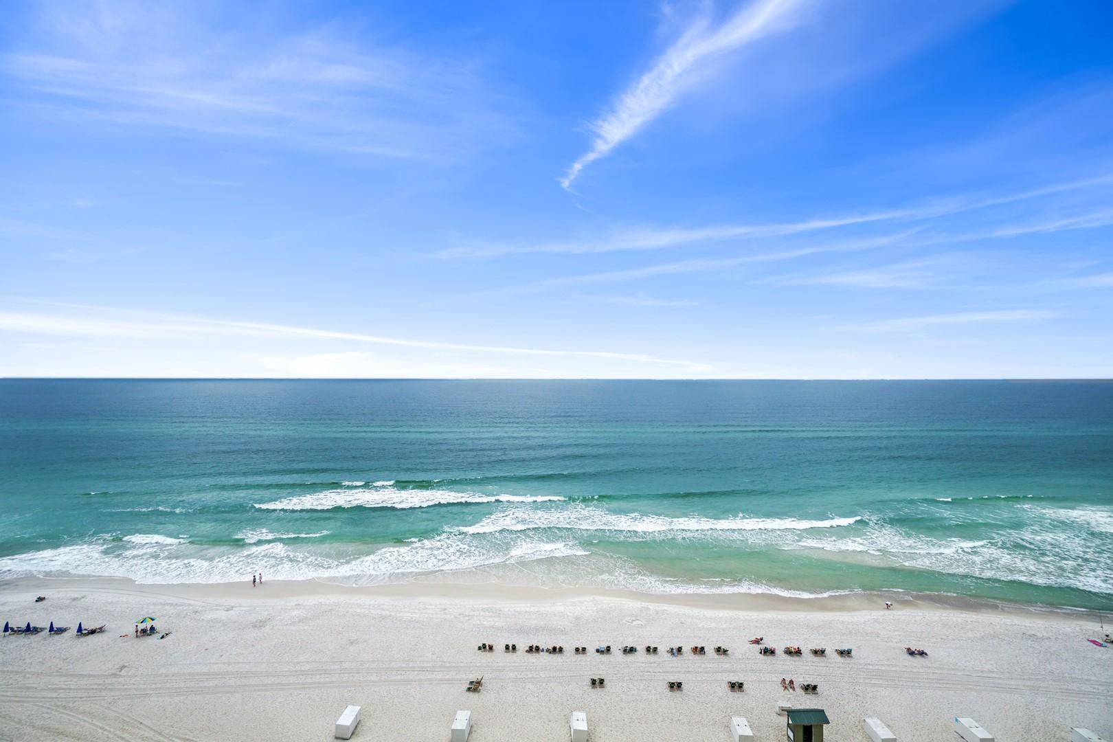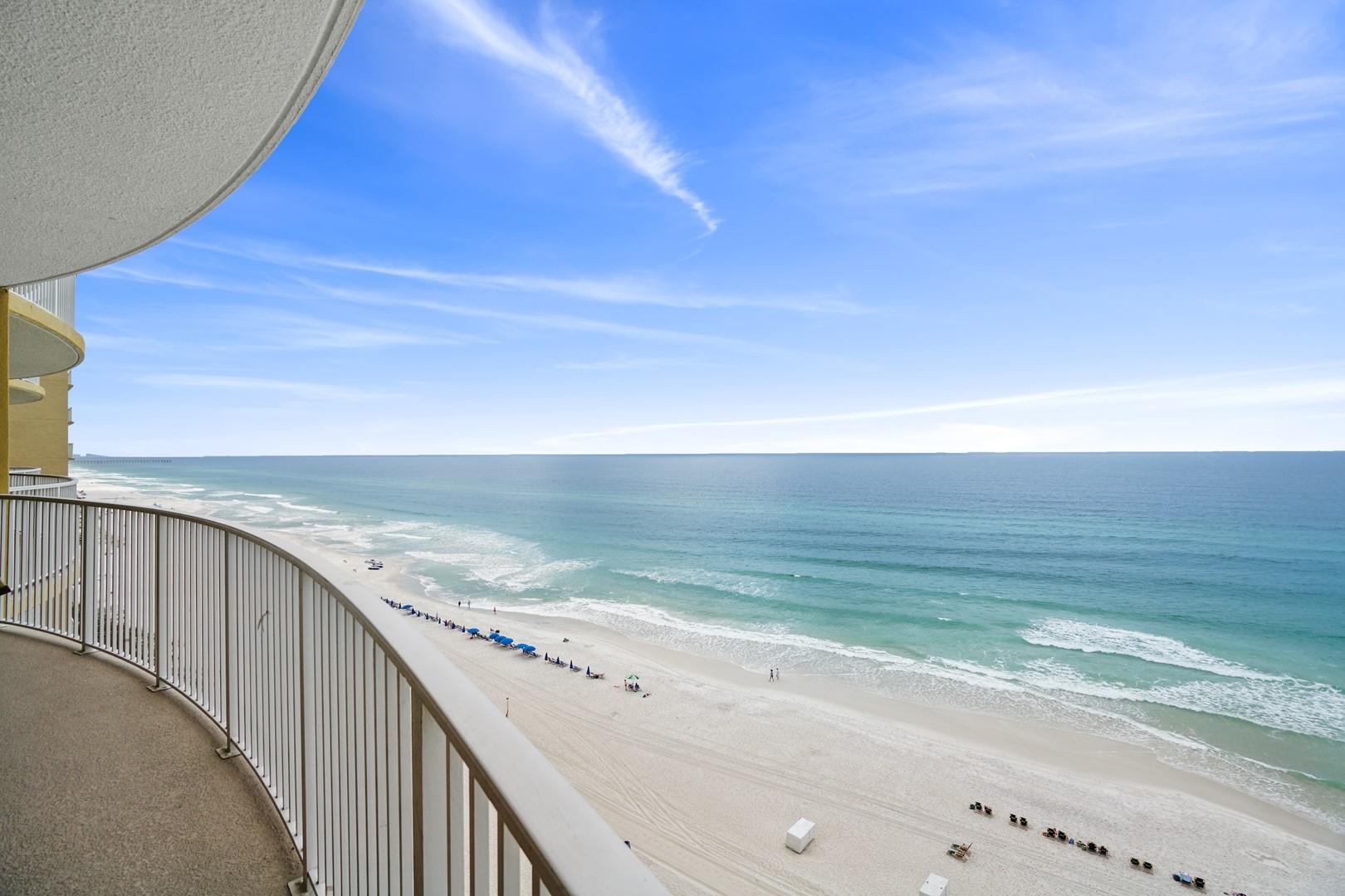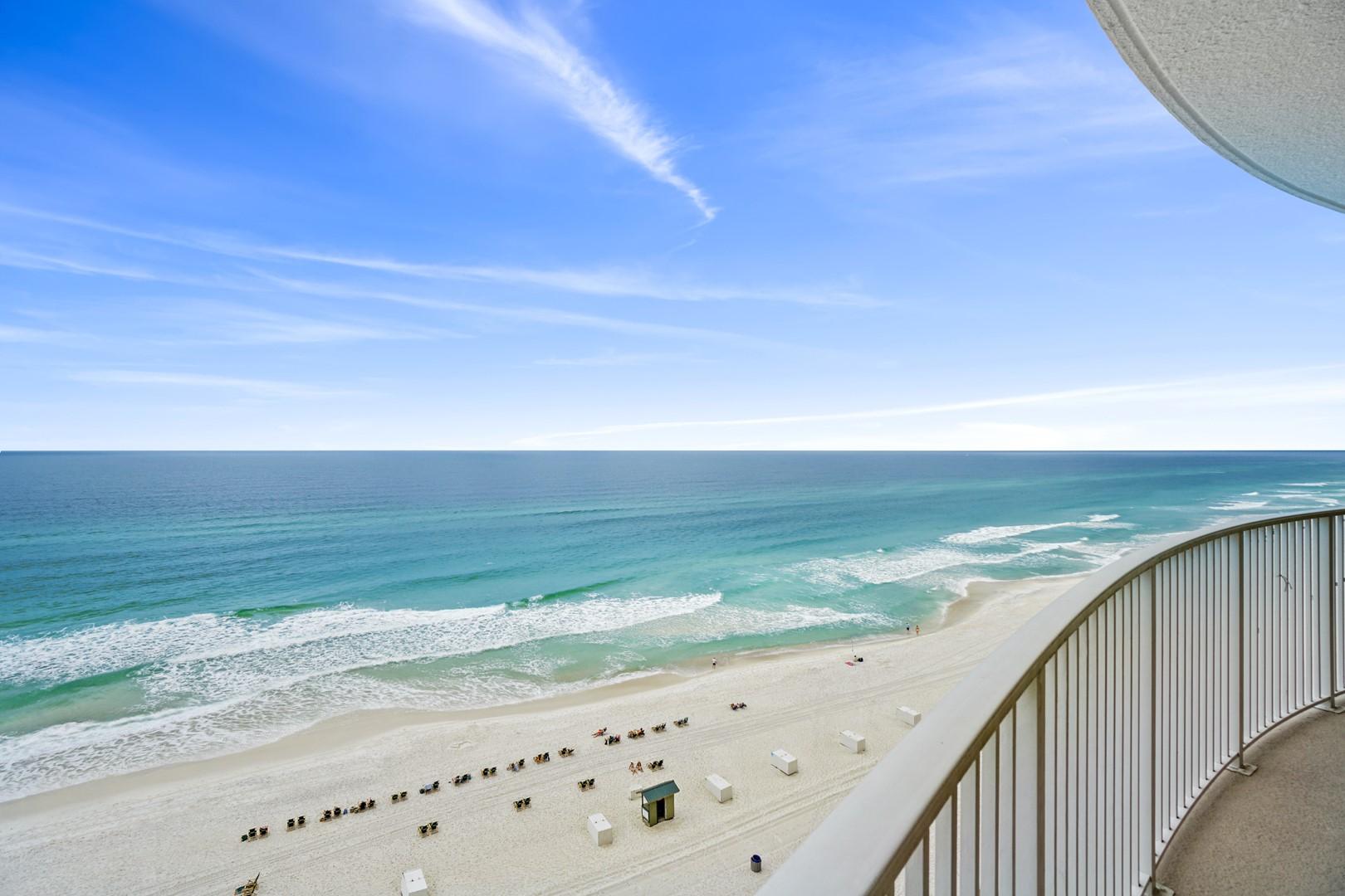 Emerald Isle rental 1108 located in Panama City Beach, FL by Panhandle Getaways is a 2 bedroom, 2 bathroom direct beachfront vacation home complete with all of the conveniences of home. Guests that choose this vacation home, tell us their favorite thing about this rental is the large balcony with panoramic views of the beach and Gulf of Mexico.