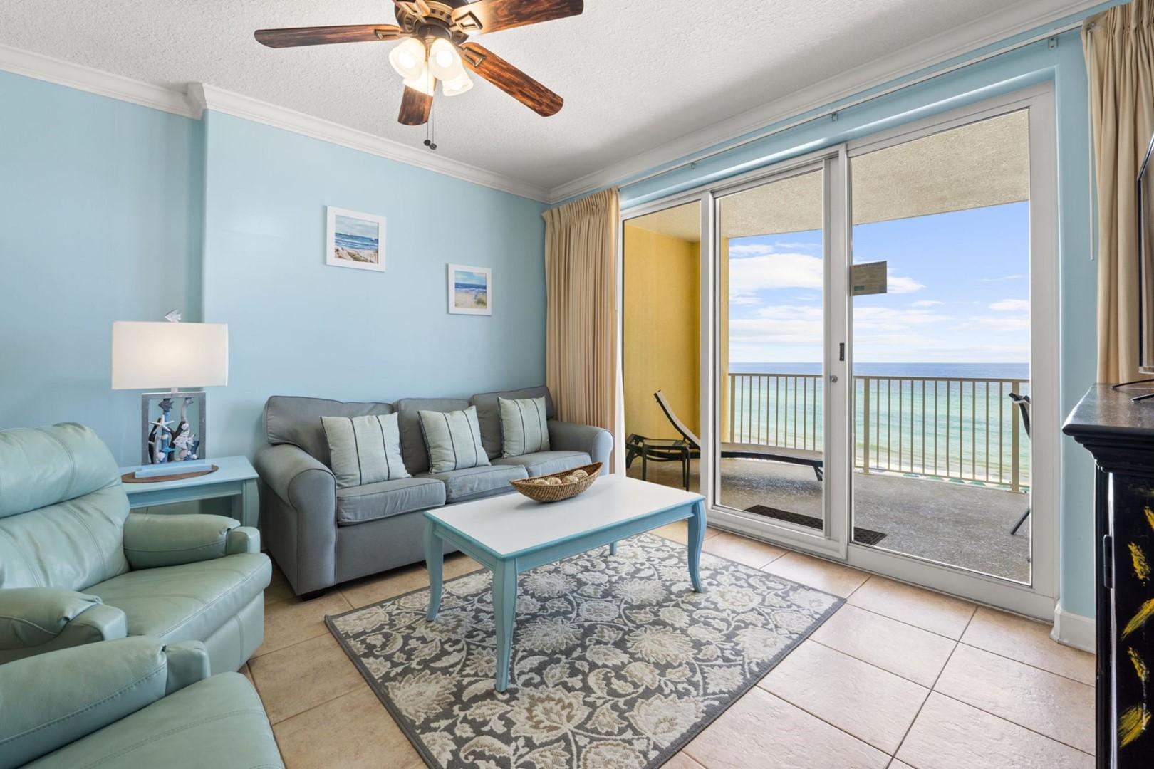 * Living Area - Gulf View, TV, Balcony Access