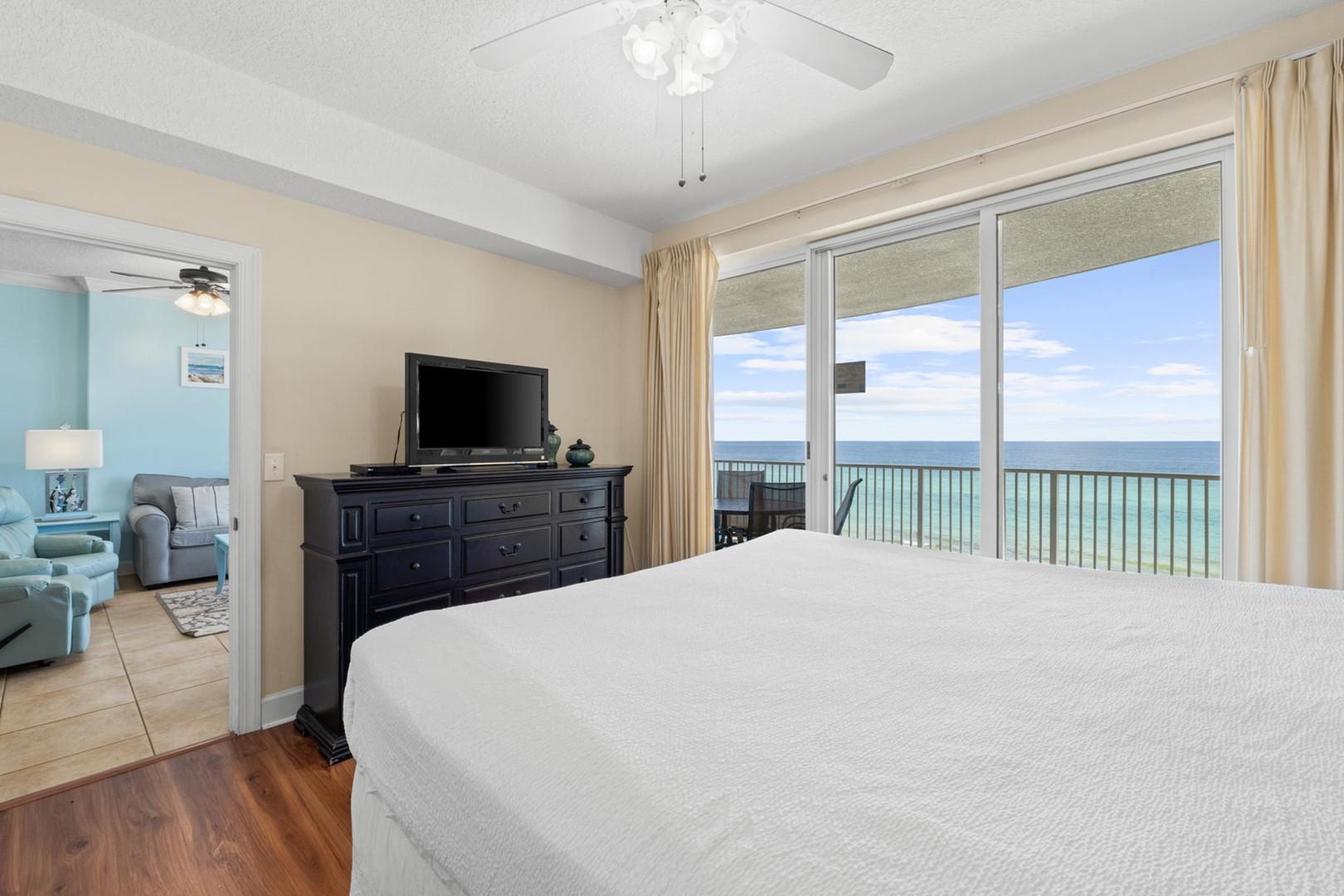 * Bedroom 1 - Gulf View, King Bed, TV, Balcony Access, En Suite Bathroom