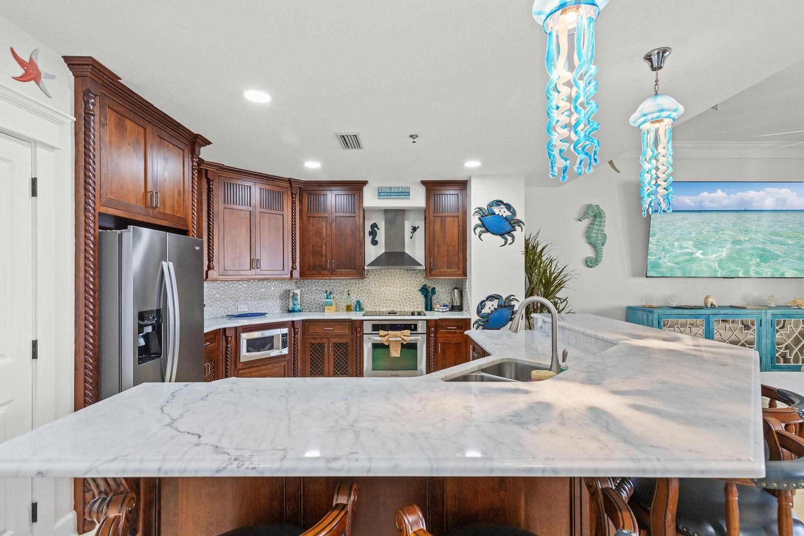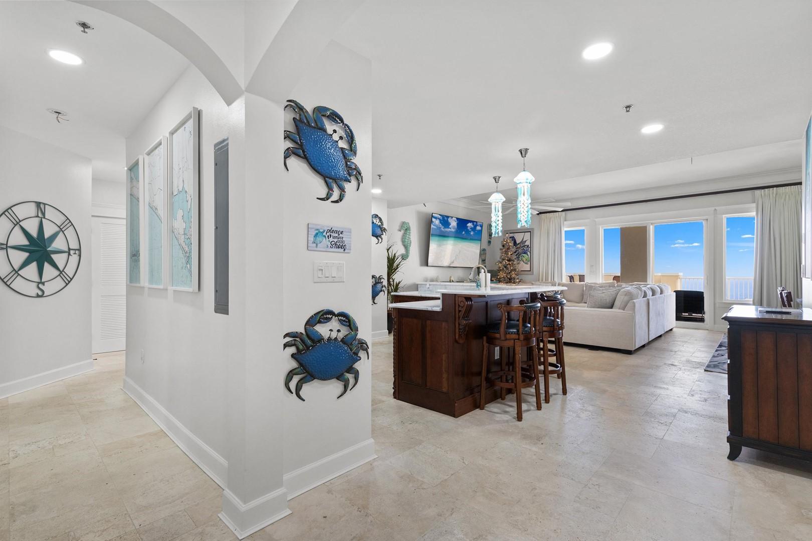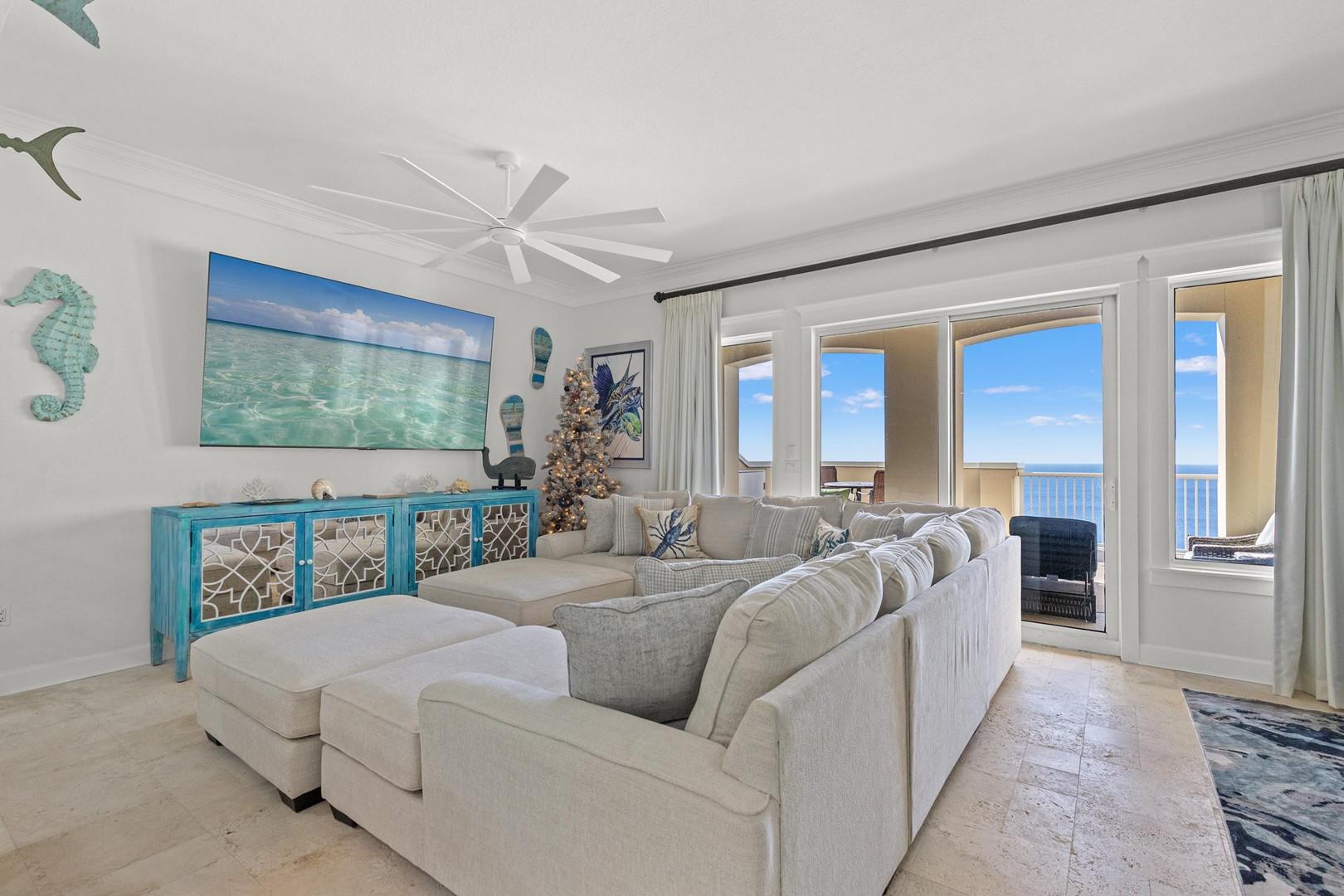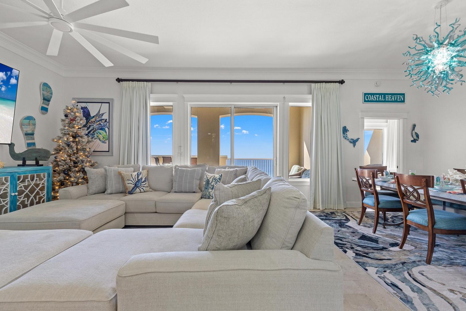 * Living Area - Gulf View, 90" TV, Balcony Access