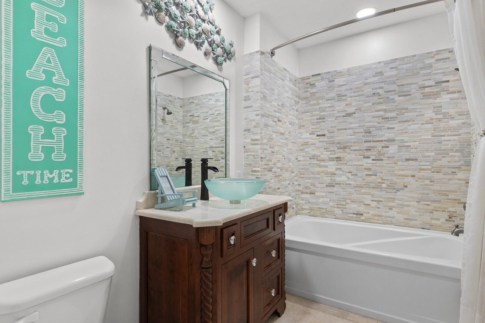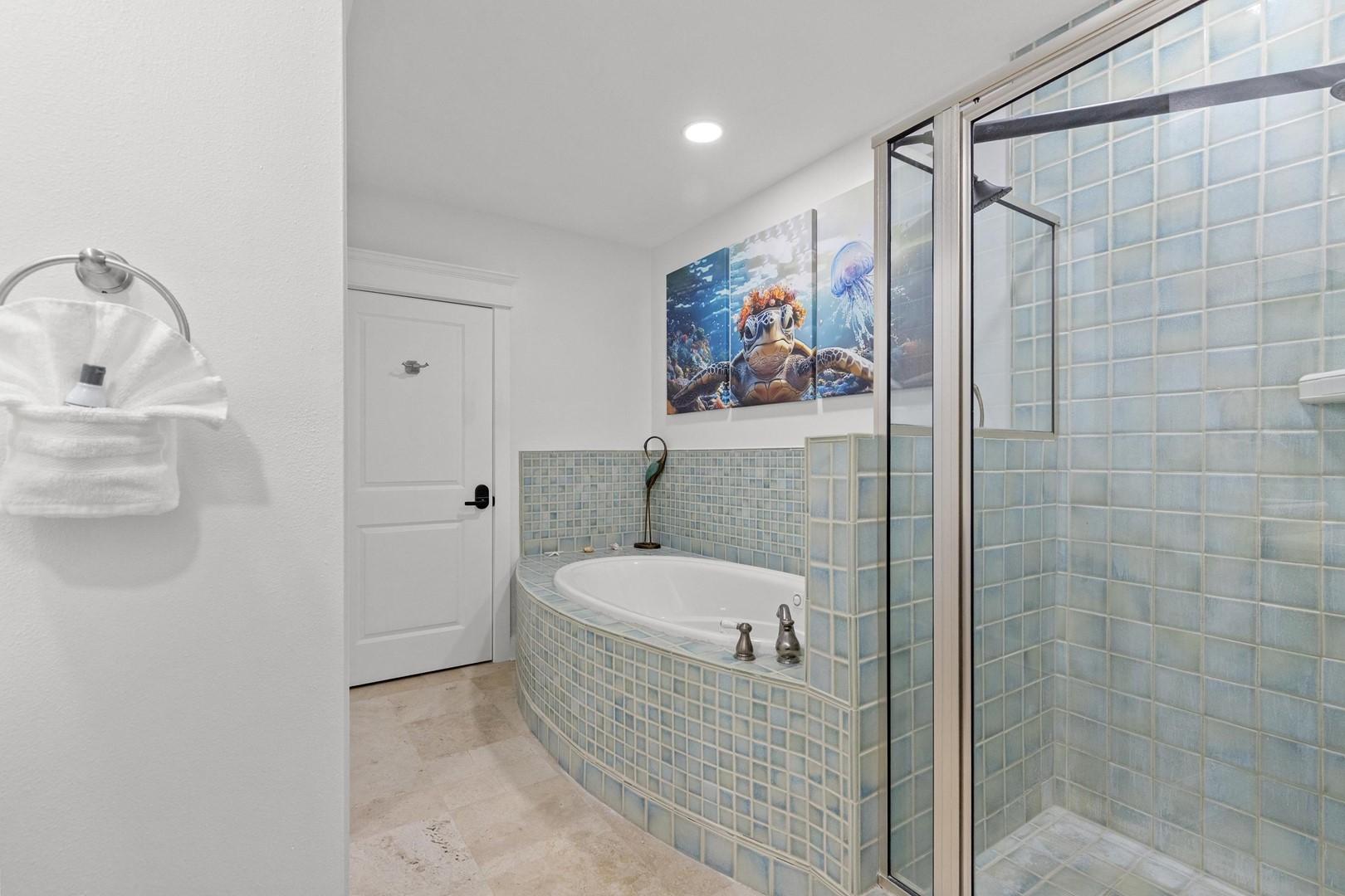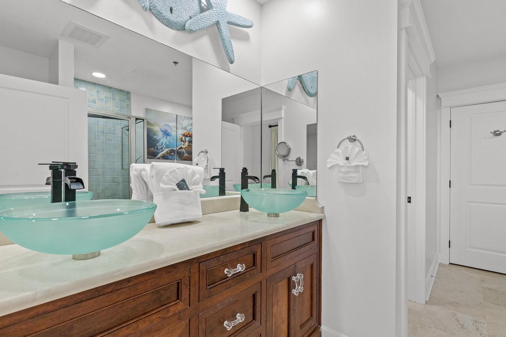 * Bedroom 2 - Queen Bed, 80" TV, En Suite Bathroom with Jacuzzi Tub