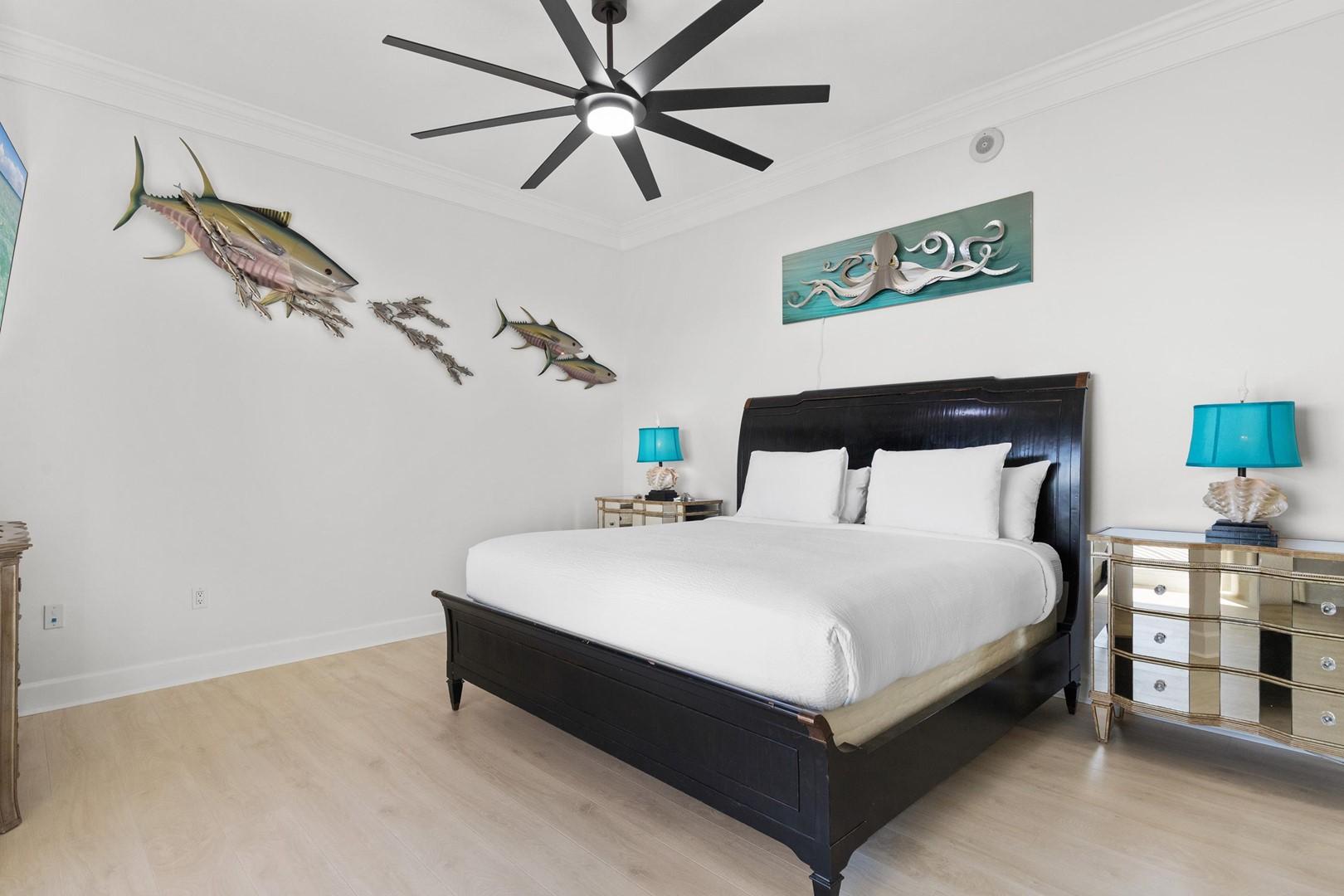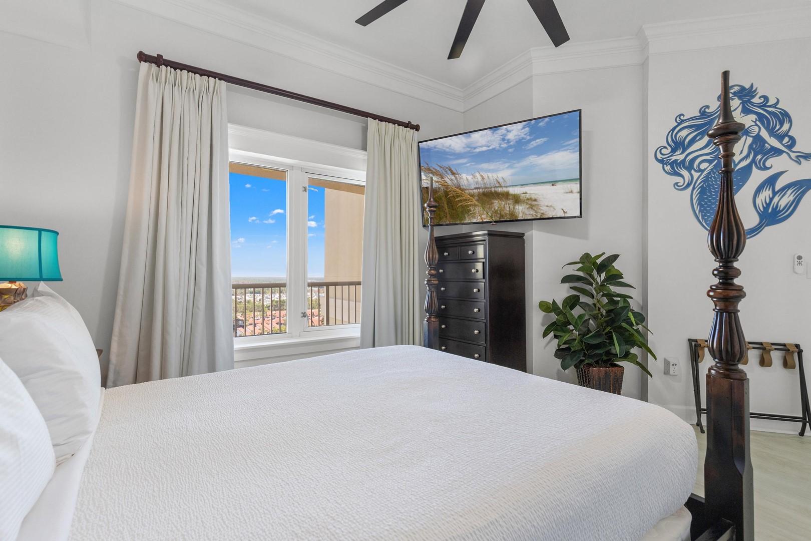 * Bedroom 1 - King Bed, Balcony Access, 80" TV, En Suite Bathroom with Jacuzzi Tub