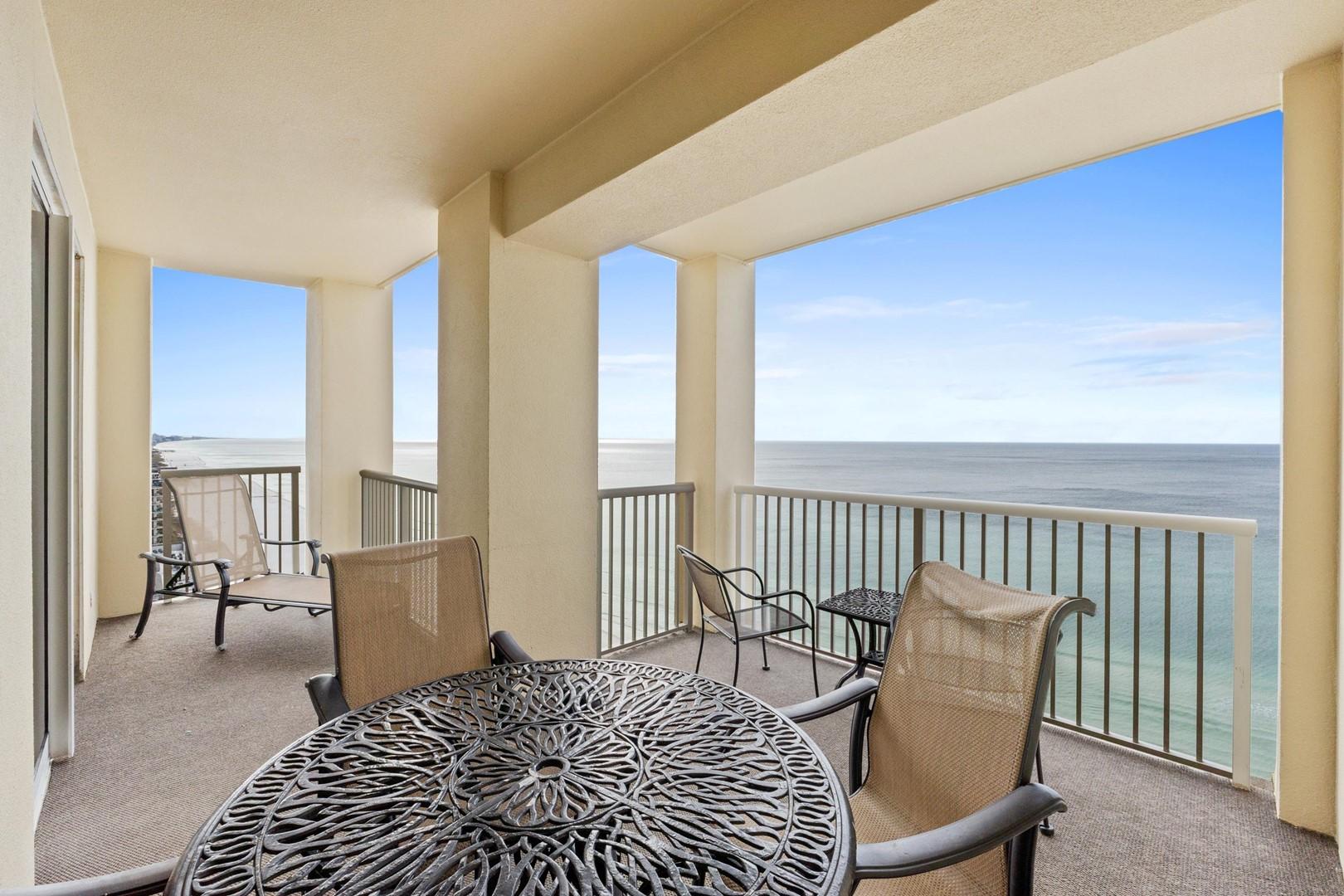 * Huge Balcony with Panoramic Beachfront View