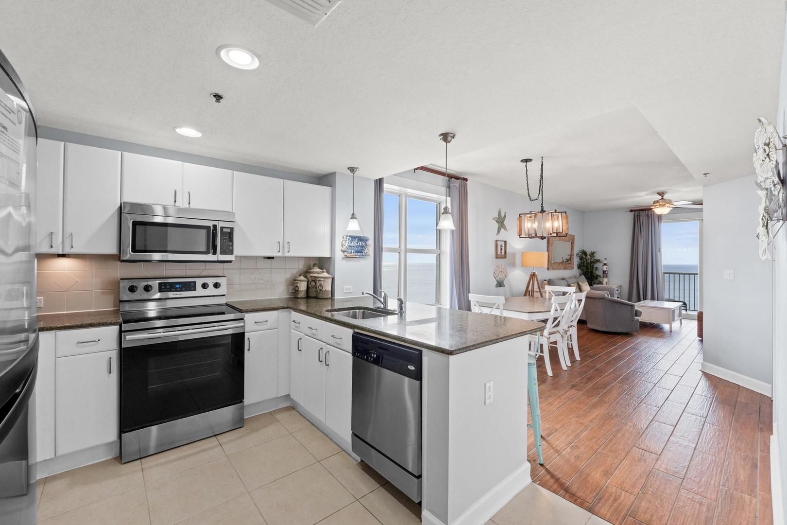 Grand Panama Beach Resort rental 1-1809 in Panama City Beach, Florida by Panhandle Getaways is a 3.5 bedroom, 2 bathroom direct beachfront property boasting incredible family friendly amenities and all of the conveniences of home. Corner Unit, Higher Floor