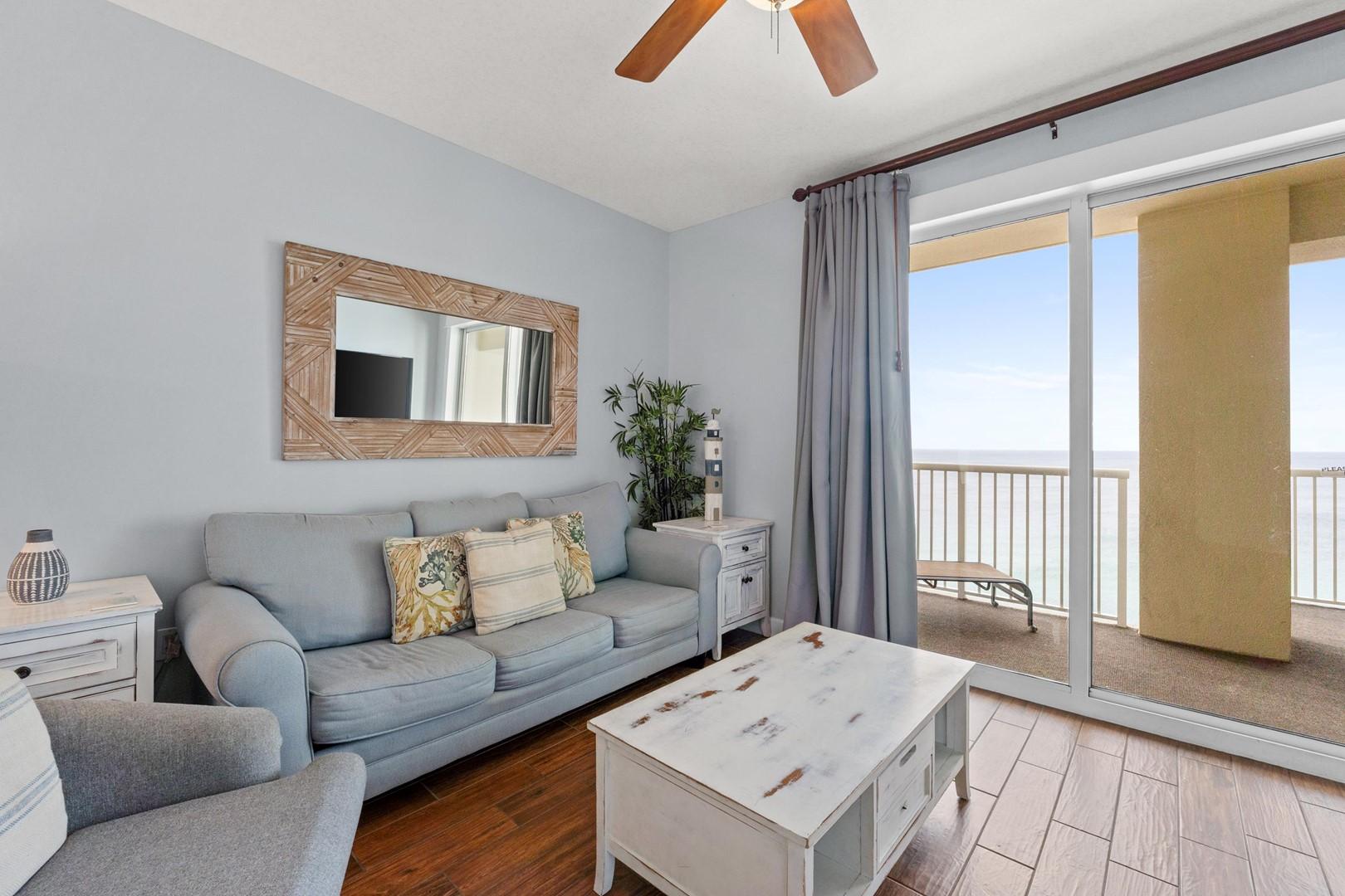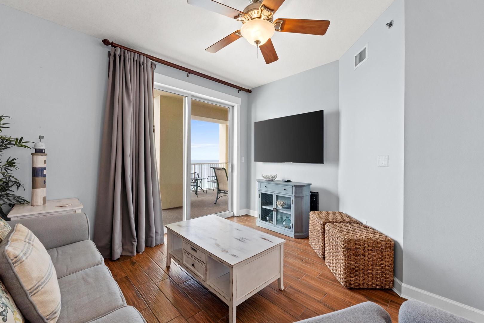 * Living Area - Gulf View, TV, Balcony Access