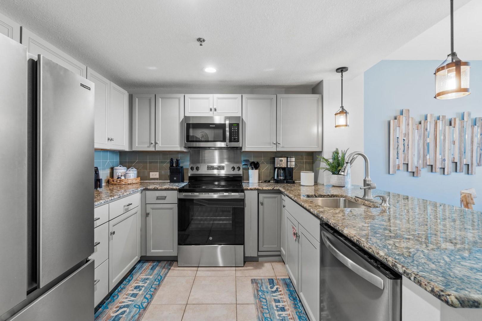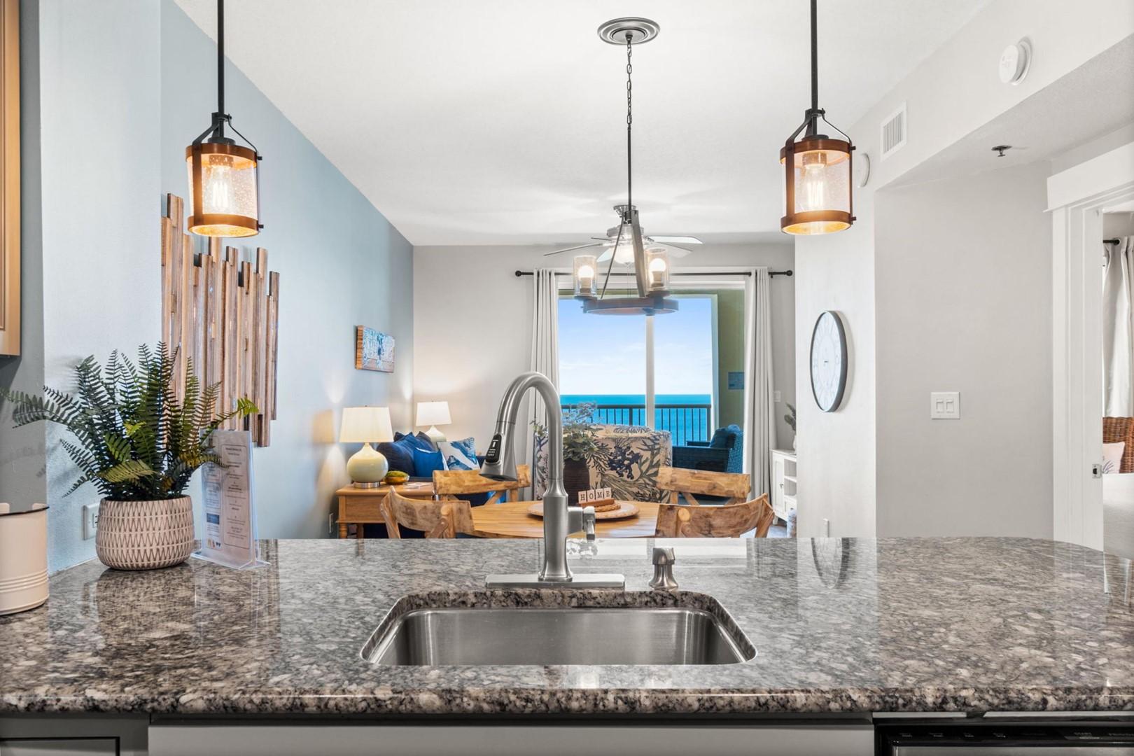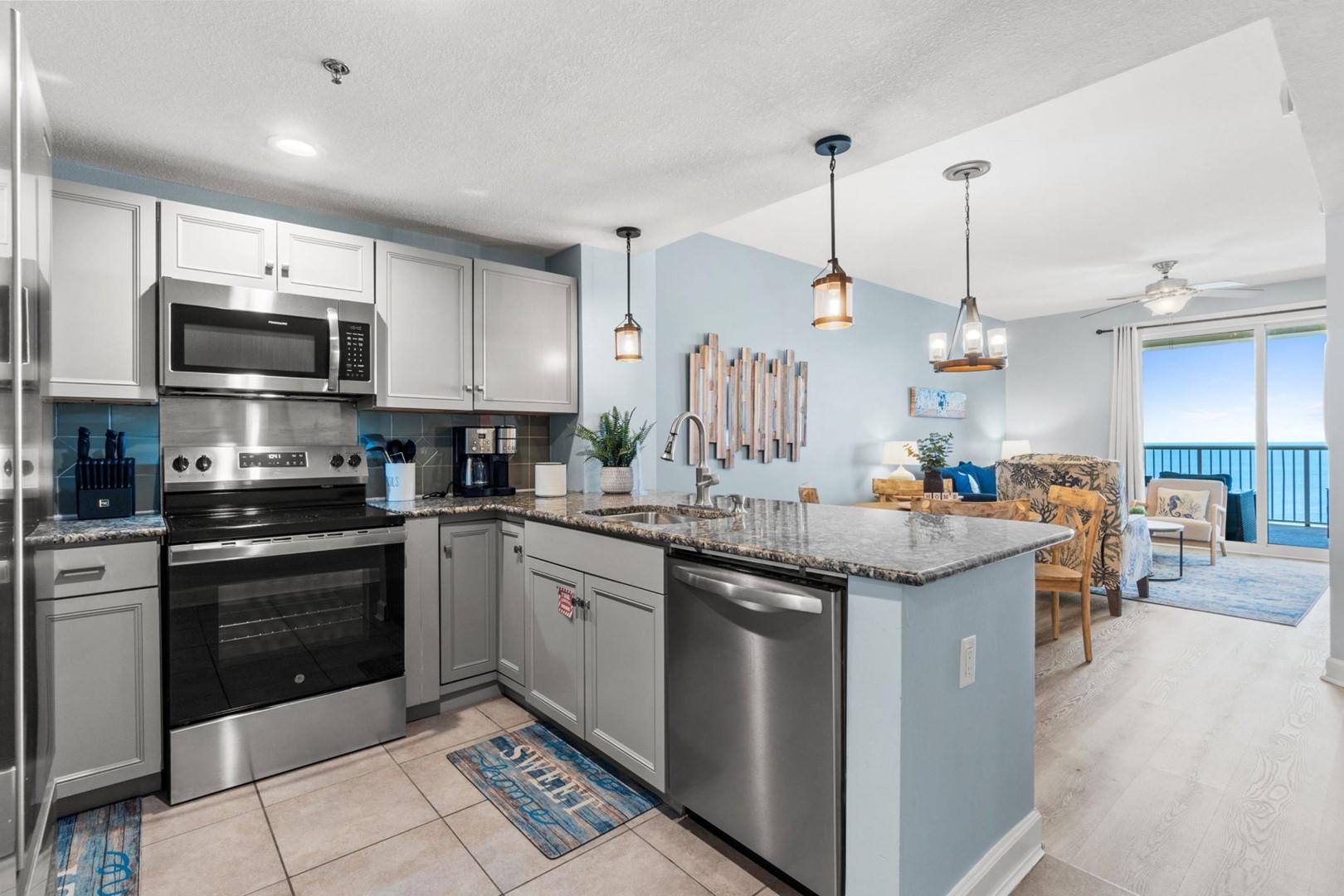 Grand Panama Beach Resort 1-2003 located in Panama City Beach, FL by Panhandle Getaways is a 2 bedroom plus bunk area, 2 bathroom direct beachfront vacation home rental complete with all of the conveniences of home.