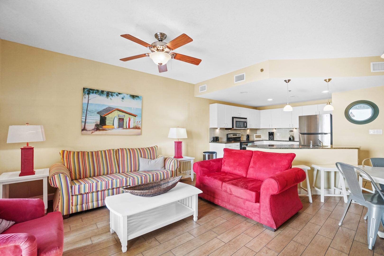 Grand Panama Beach Resort pet friendly rental 2-407 in Panama City Beach, FL by Panhandle Getaways is a beach and gulf view 1 bedroom plus bunk area, 2 bathroom vacation home complete with all of the conveniences of home.