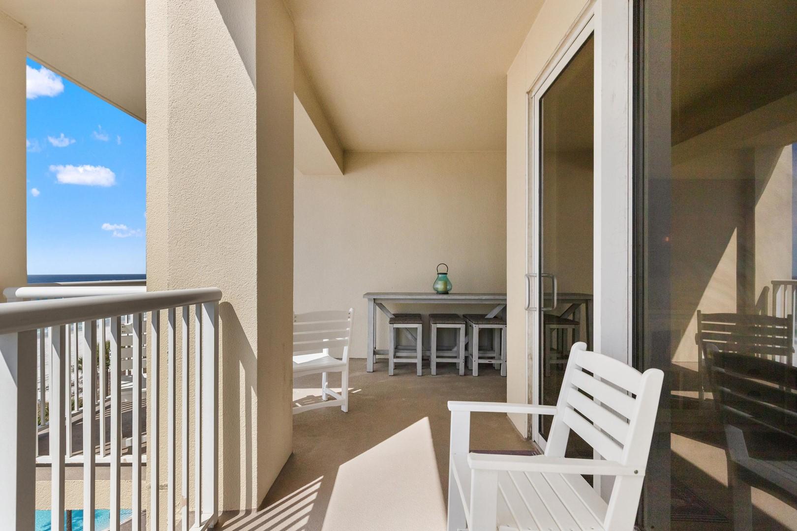 Corner unit with large balcony and ample seating