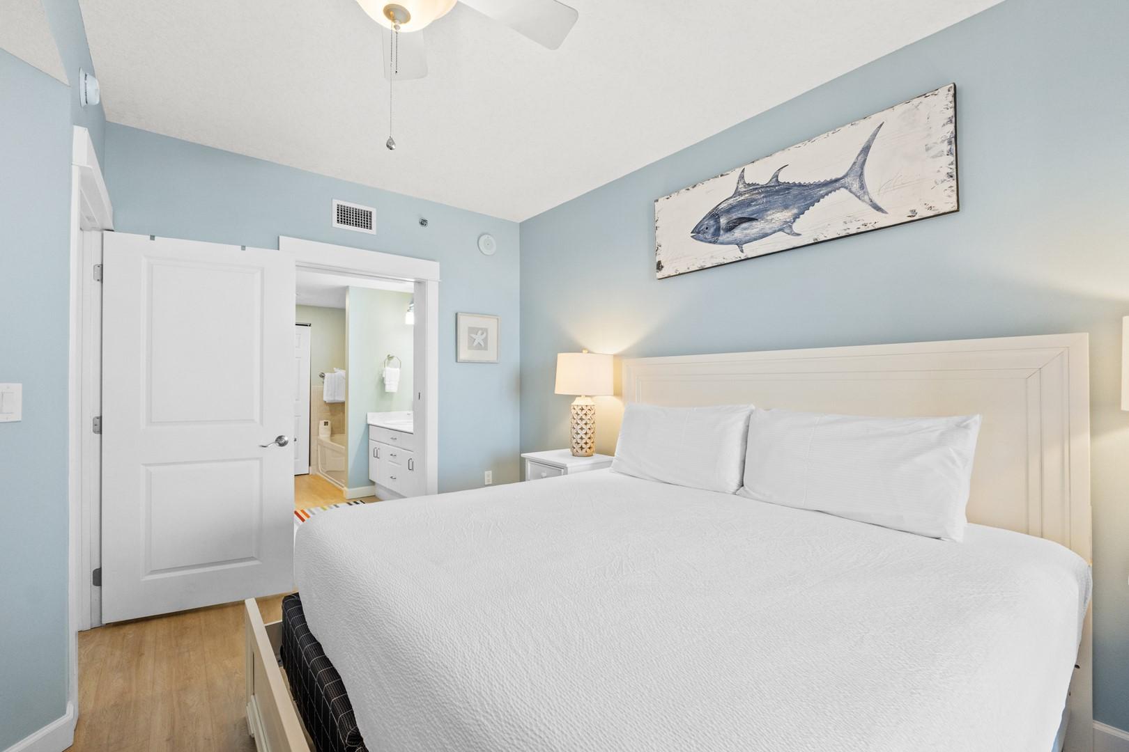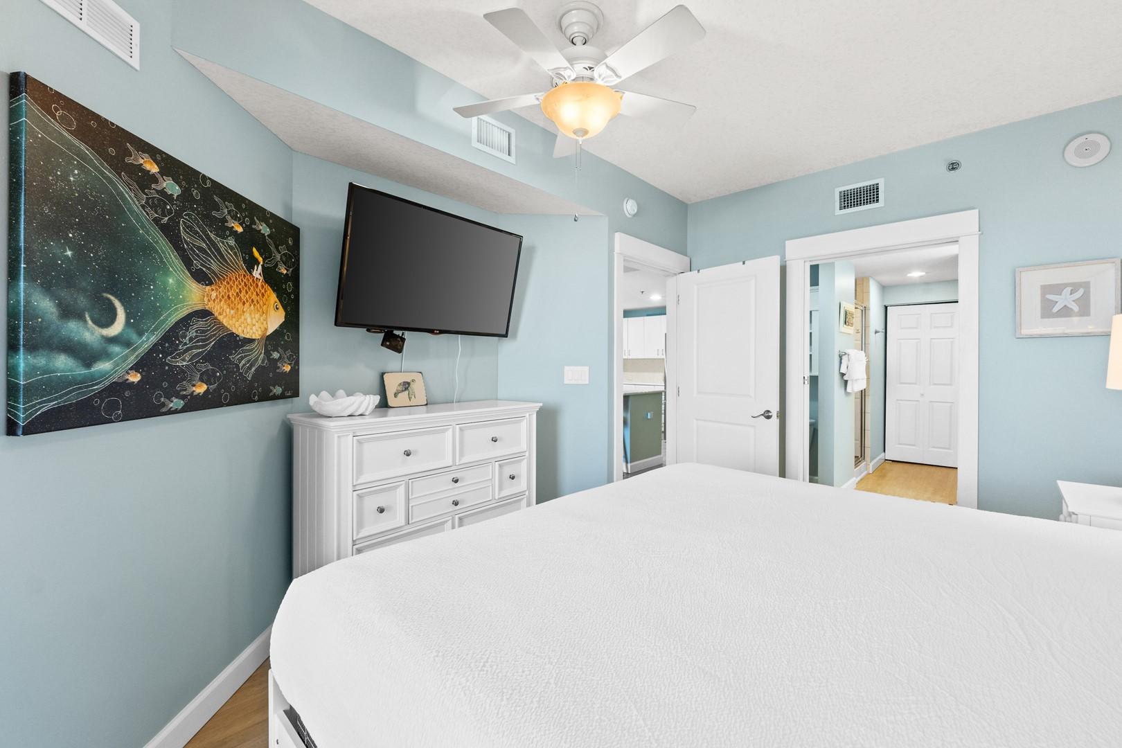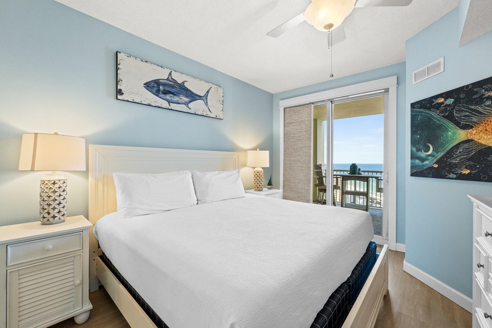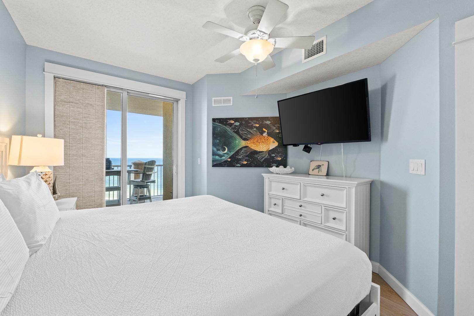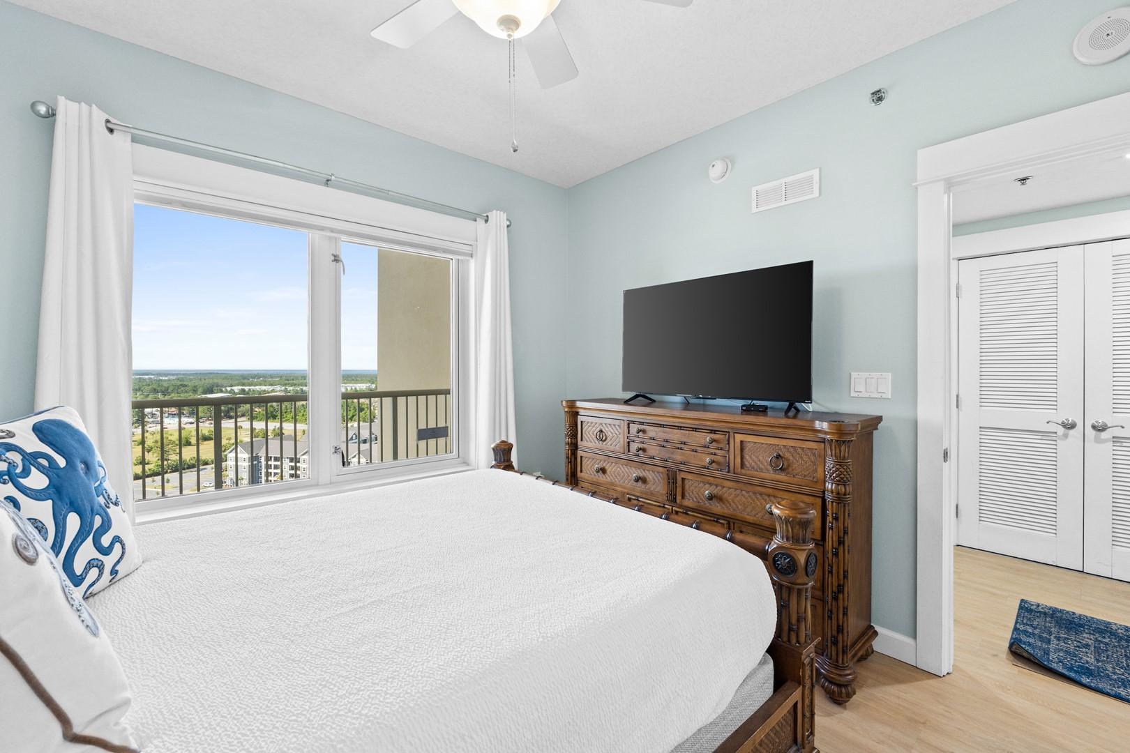 * Bedroom 1 - King Bed, Private Balcony Access & Smart TV
