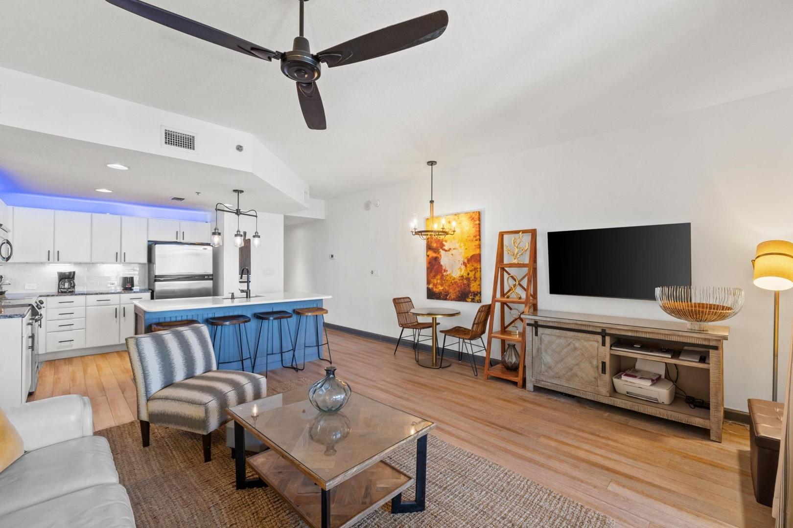* Living Area - TV, Balcony Access