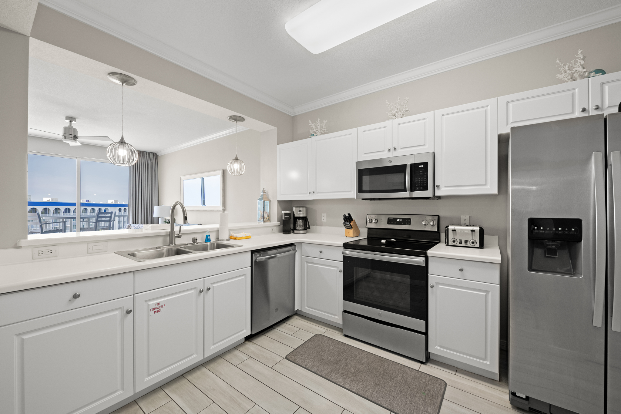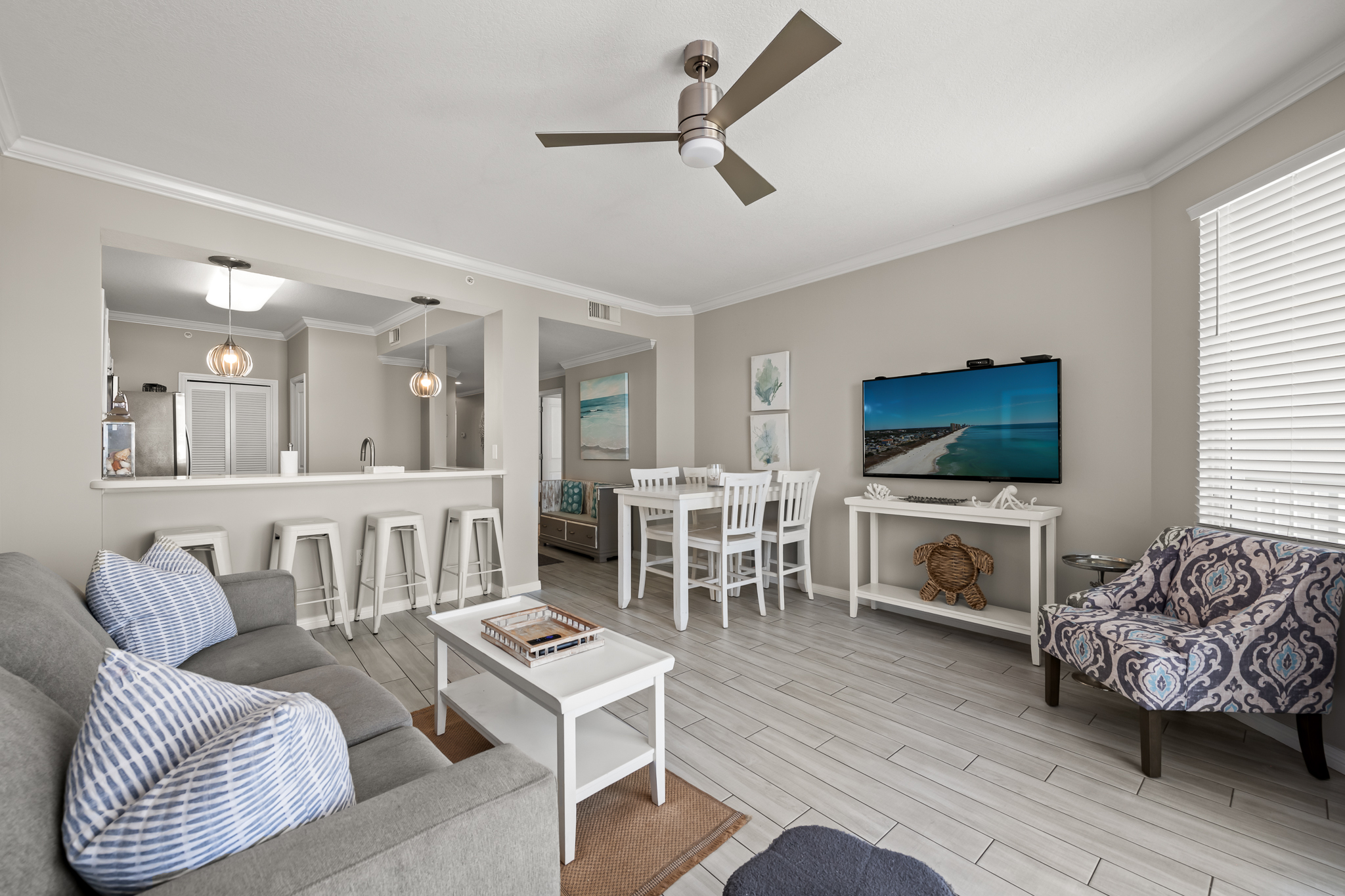 This beautiful coastal-designed condo has been fully renovated and includes new flooring, updated finishes, stainless appliances, modern lighting and plumbing fixtures, new furniture, and beautiful beach-inspired decor.