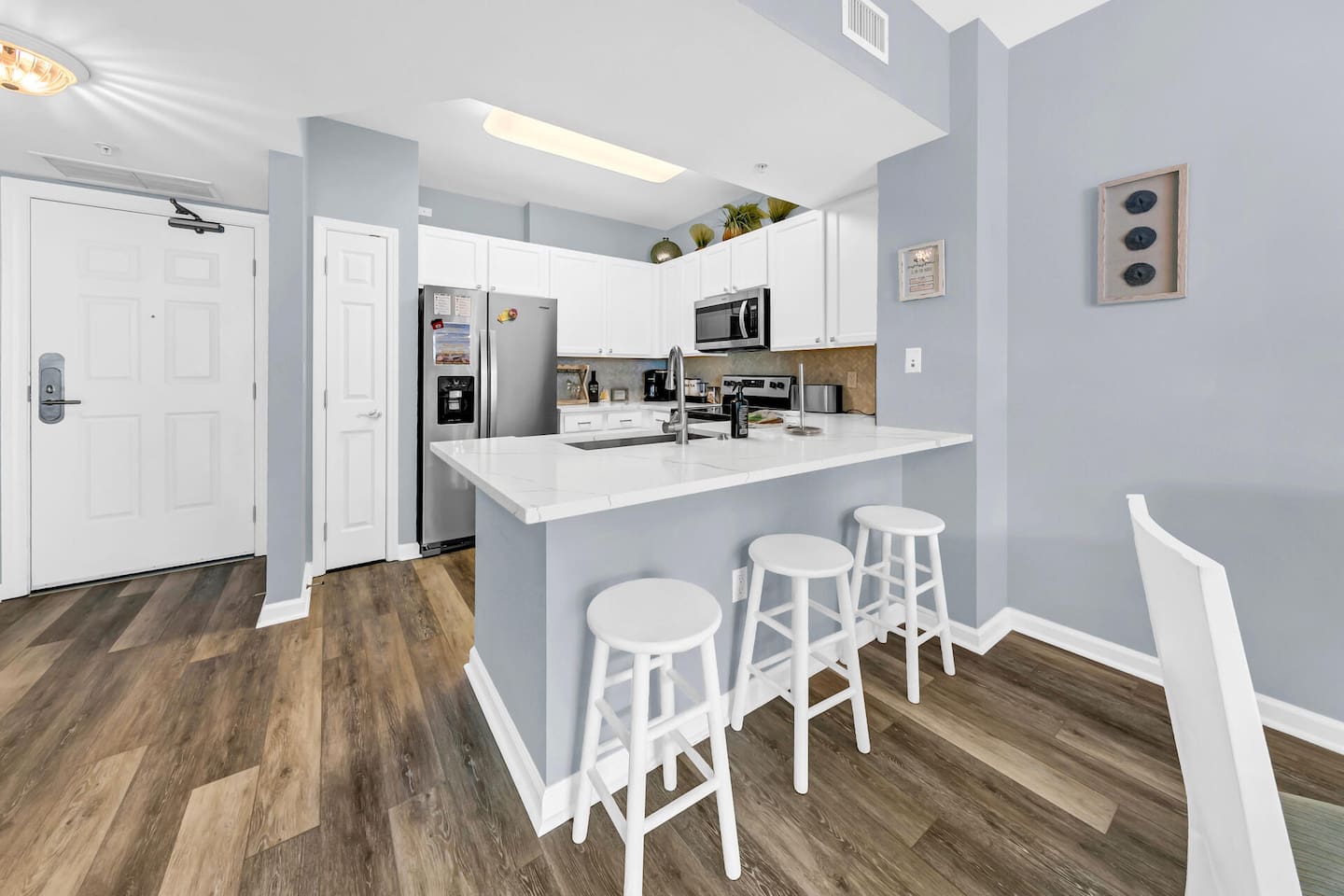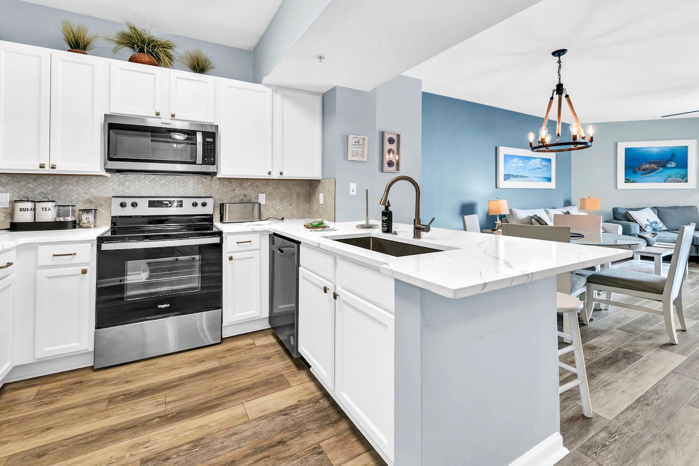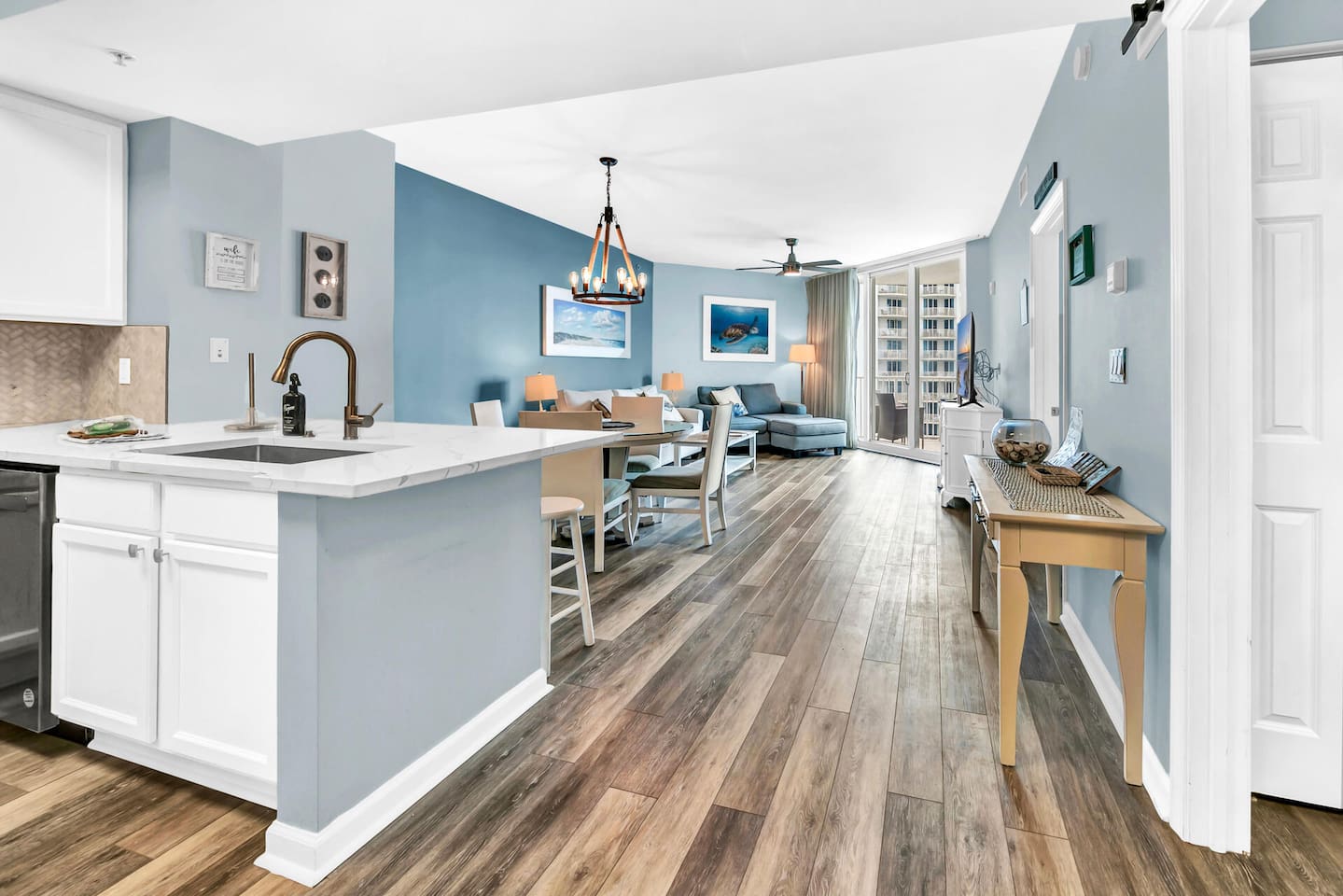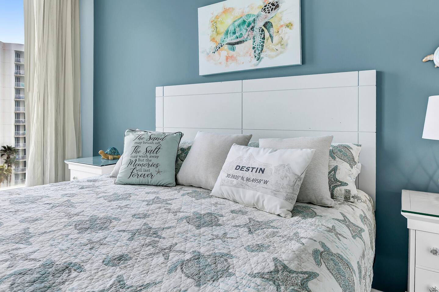 Escape to unit 2703 at The Palms of Destin, where every moment is filled with luxury and relaxation. Perched high above, this newly renovated condo offers breathtaking views of the Gulf of Mexico and the resort's spectacular pool area. Step inside to discover a haven of comfort and style, with modern furnishings and upscale decor ensuring a memorable vacation experience.