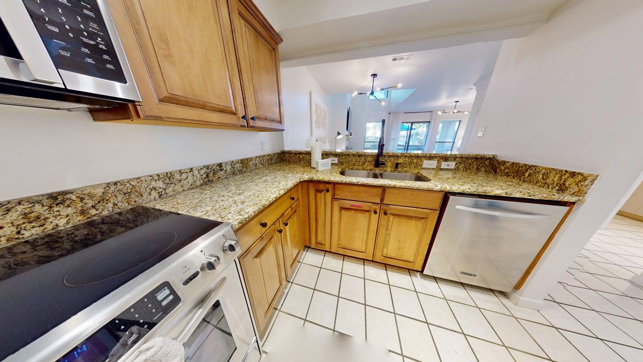 This property offers updated elegance from the moment you walk in. Inside, you'll find a living space with ample seating for the entire family as well as a flat screen TV. Your updated kitchen is fully stocked with all the basic utensils, pots & pans, and appliances you should need for an enjoyable stay. The owners have even included a full-size washer and dryer in the unit as well as 4 extra beach chairs for your use!
