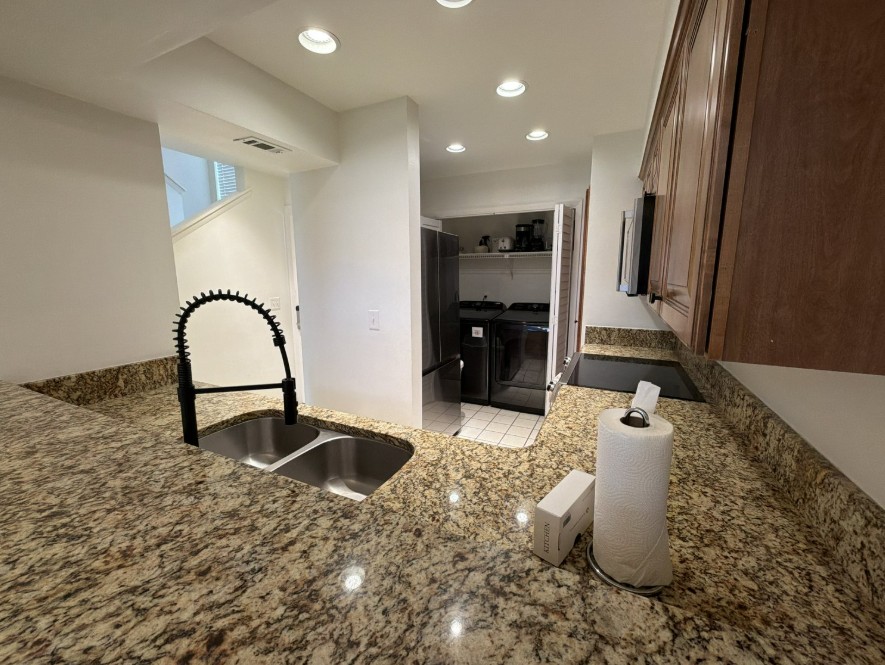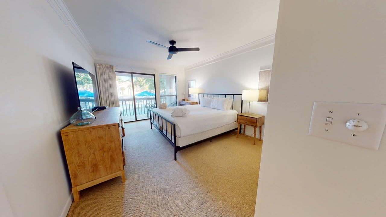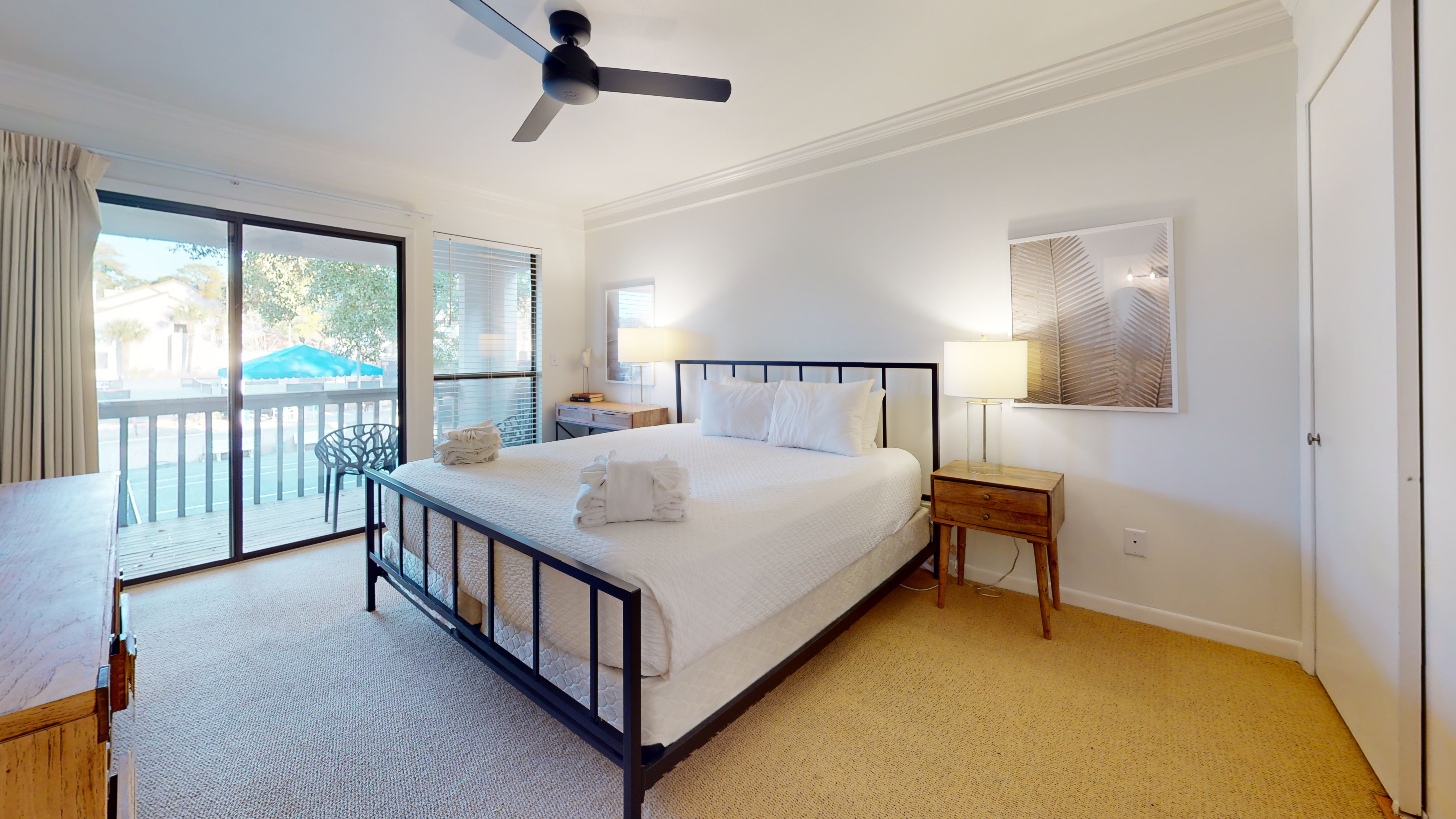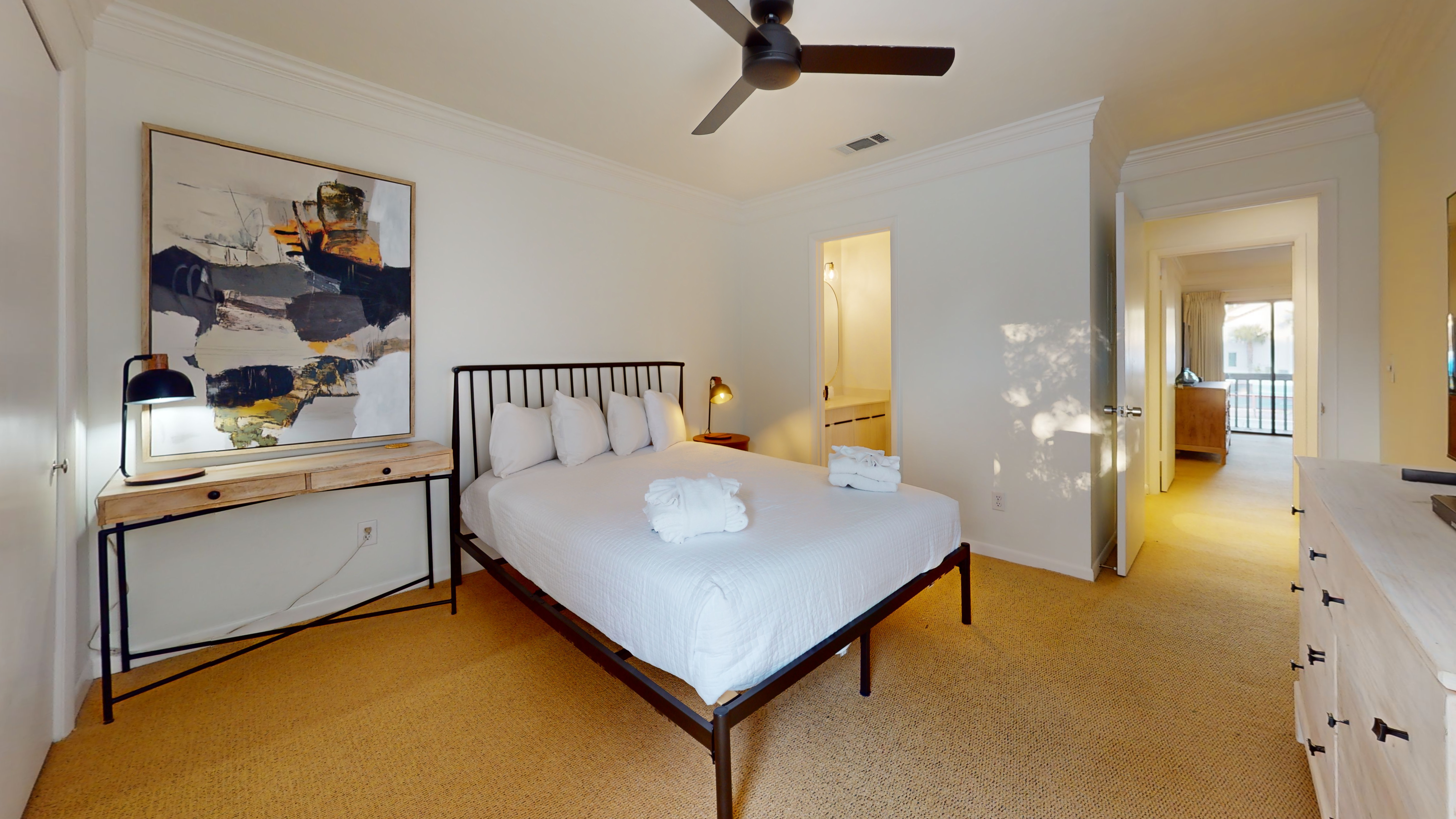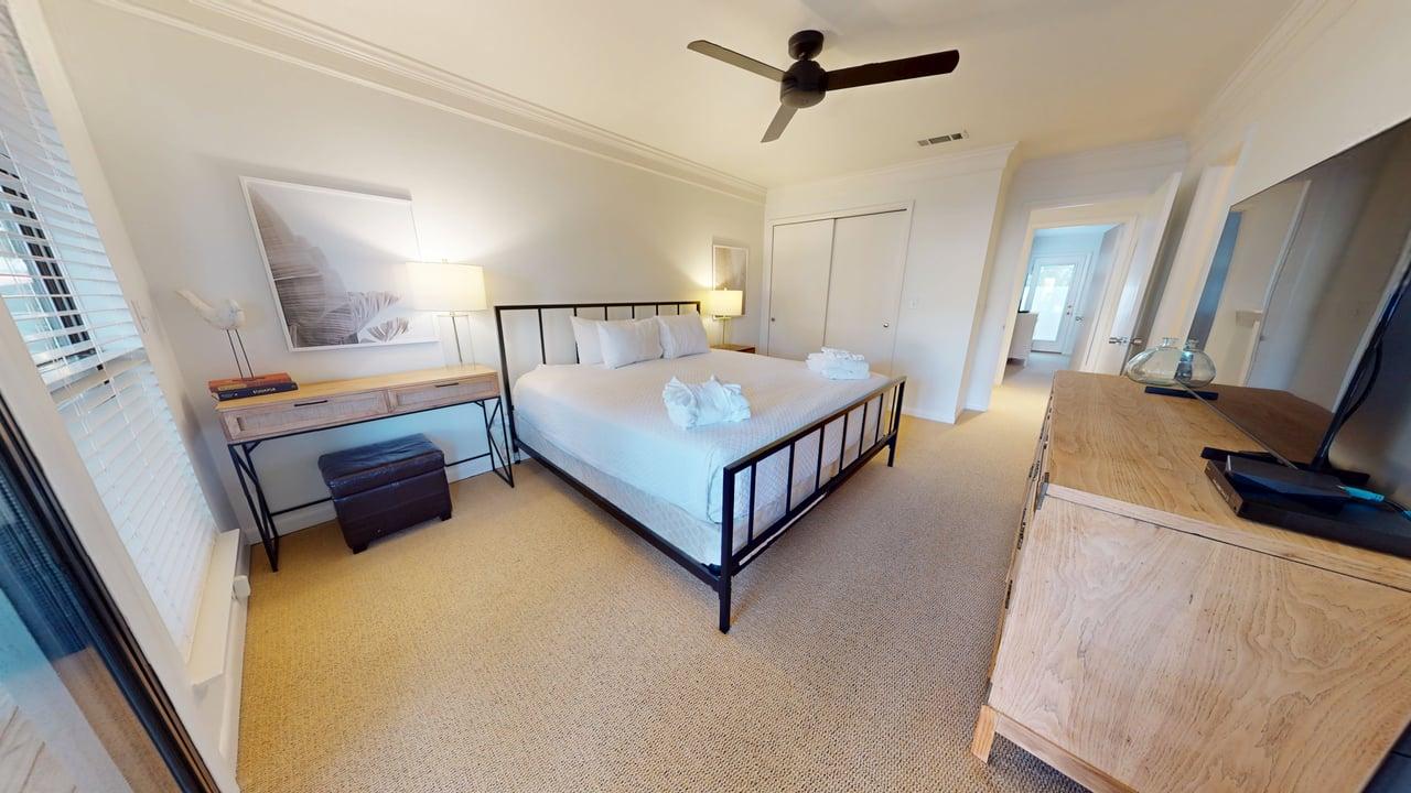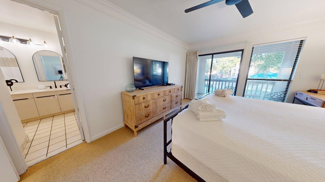 Your master bedroom boasts a king size bed, flat screen TV, and a private balcony. The master ensuite has a separate shower, soaking tub, and a double vanity. The guest bedroom has a queen size bed. The guest bathroom offers a shower/tub combo. You'll find this townhouse is homey and perfect for your beach trip...