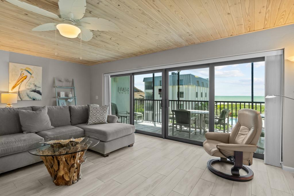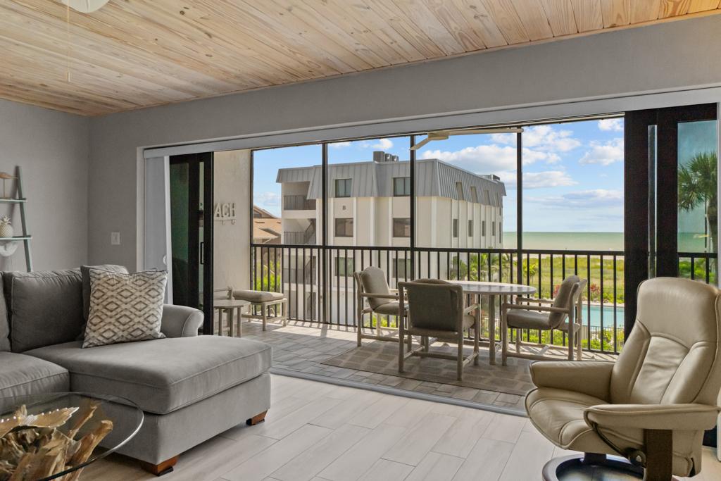 Welcome to your dream island retreat at Shorewood of Sanibel! This beautifully updated 3-bedroom, 2-bath condo combines comfort, style, and breathtaking Gulf views for the ultimate beach escape. Located on the second living level (third floor), this rare corner unit offers a front-row seat to stunning sunsets and uninterrupted views of the shimmering waters—right from your private lanai.