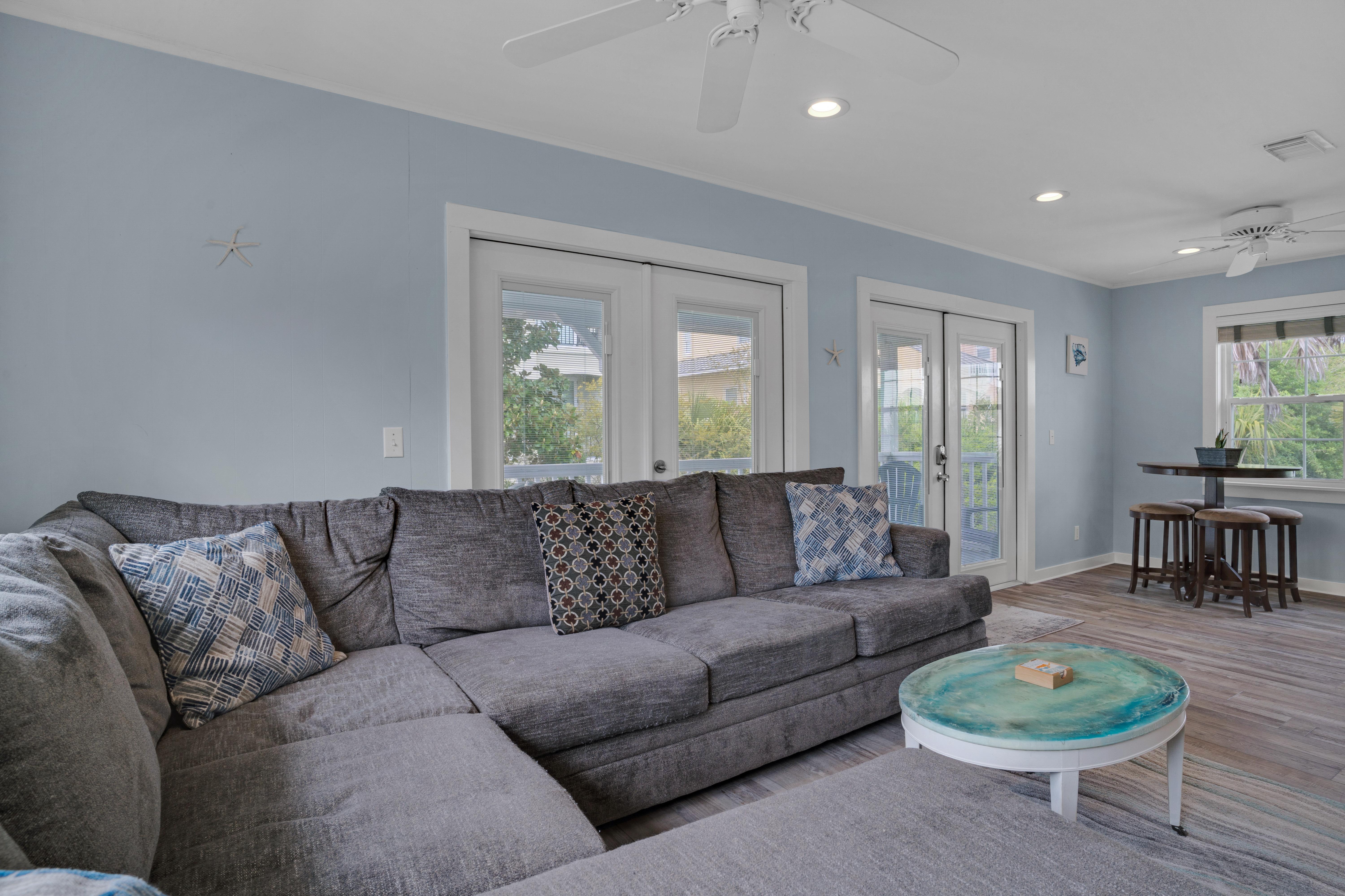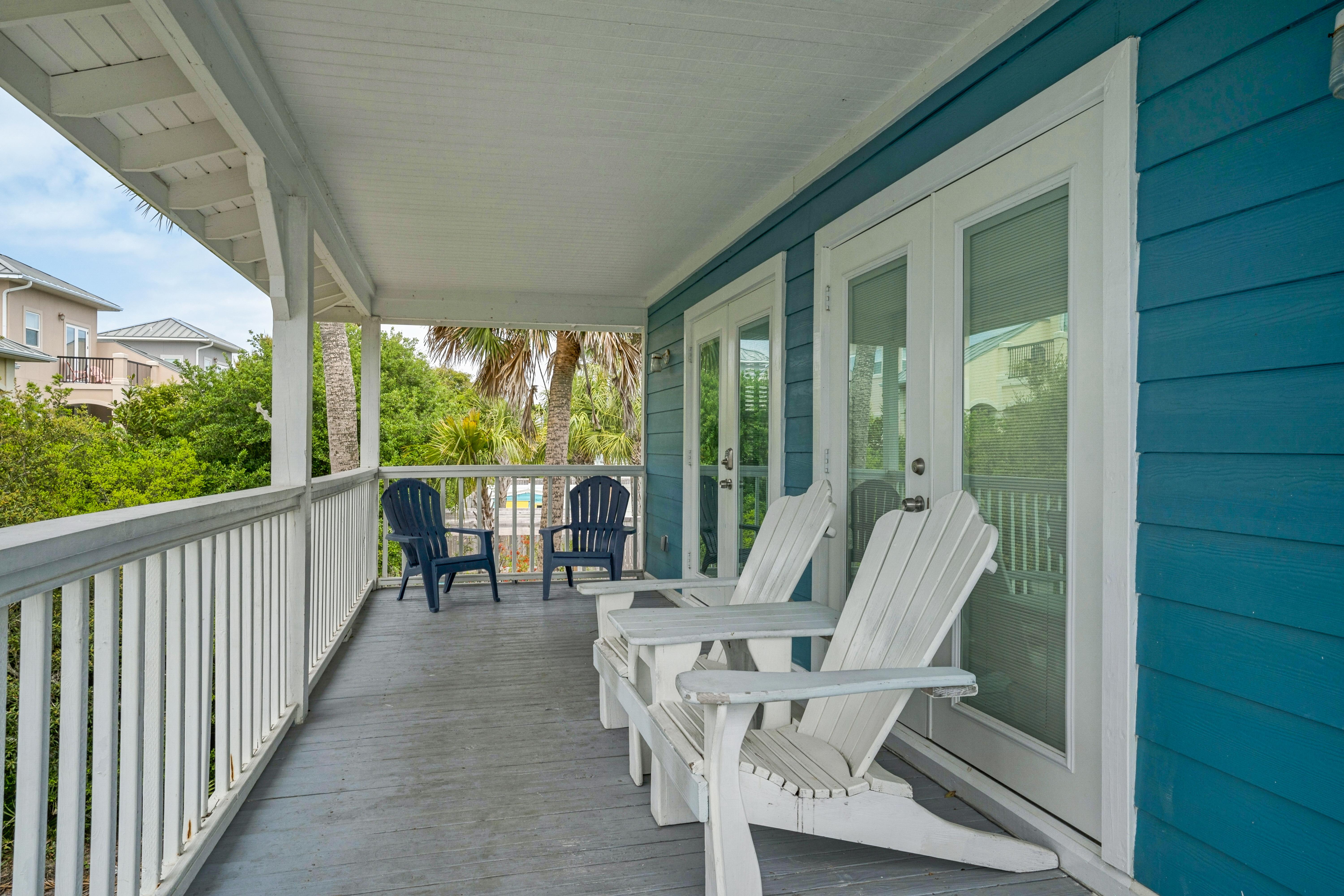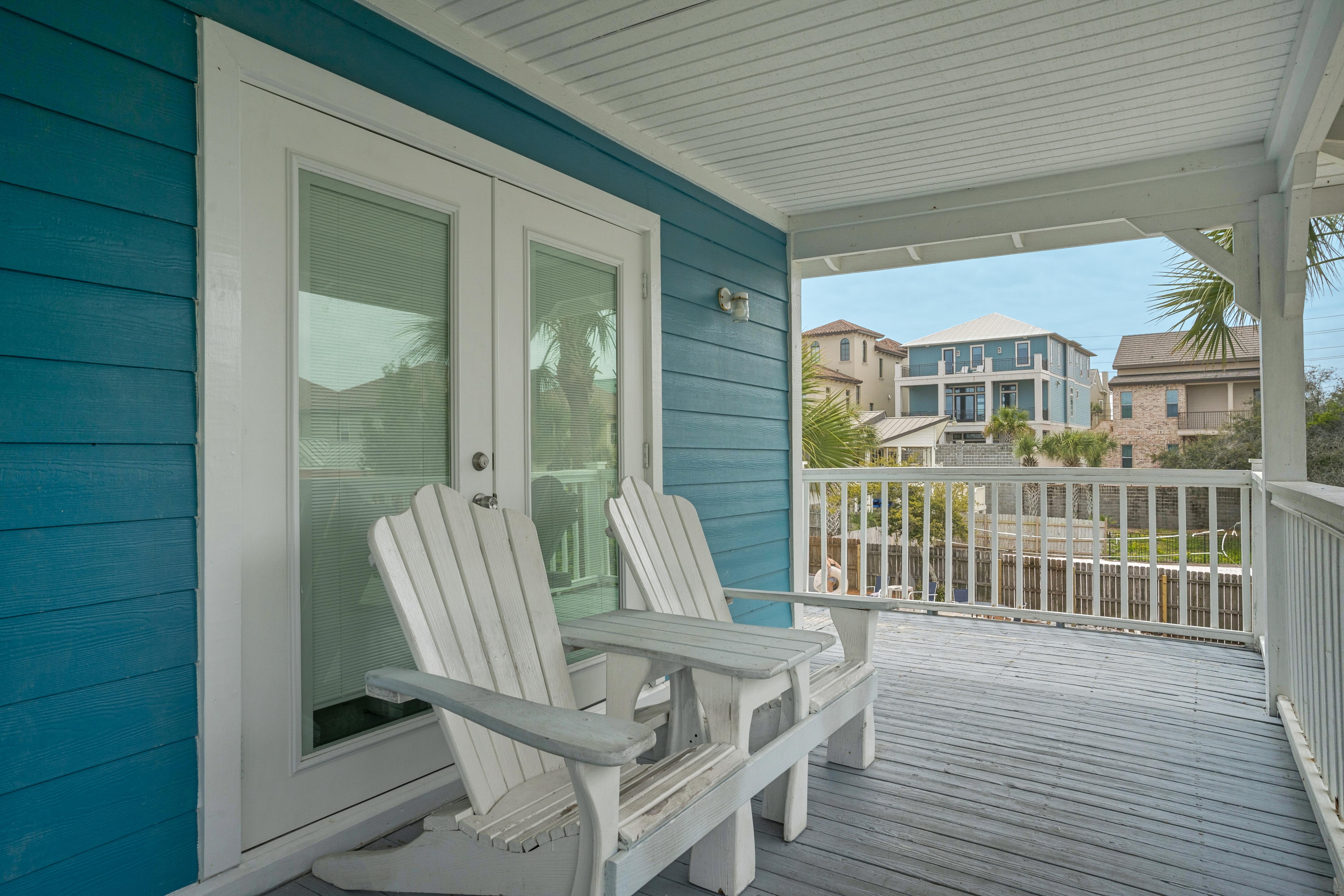 Emerald Sea is located just steps away from the Gulf of Mexico, so you can stroll down and enjoy the beach, lounge in the sugar white sand, or catch a breathtaking sunset. Emerald Sea can be rented by itself or with the home behind it, Emerald Sol, for a two family or group vacation.