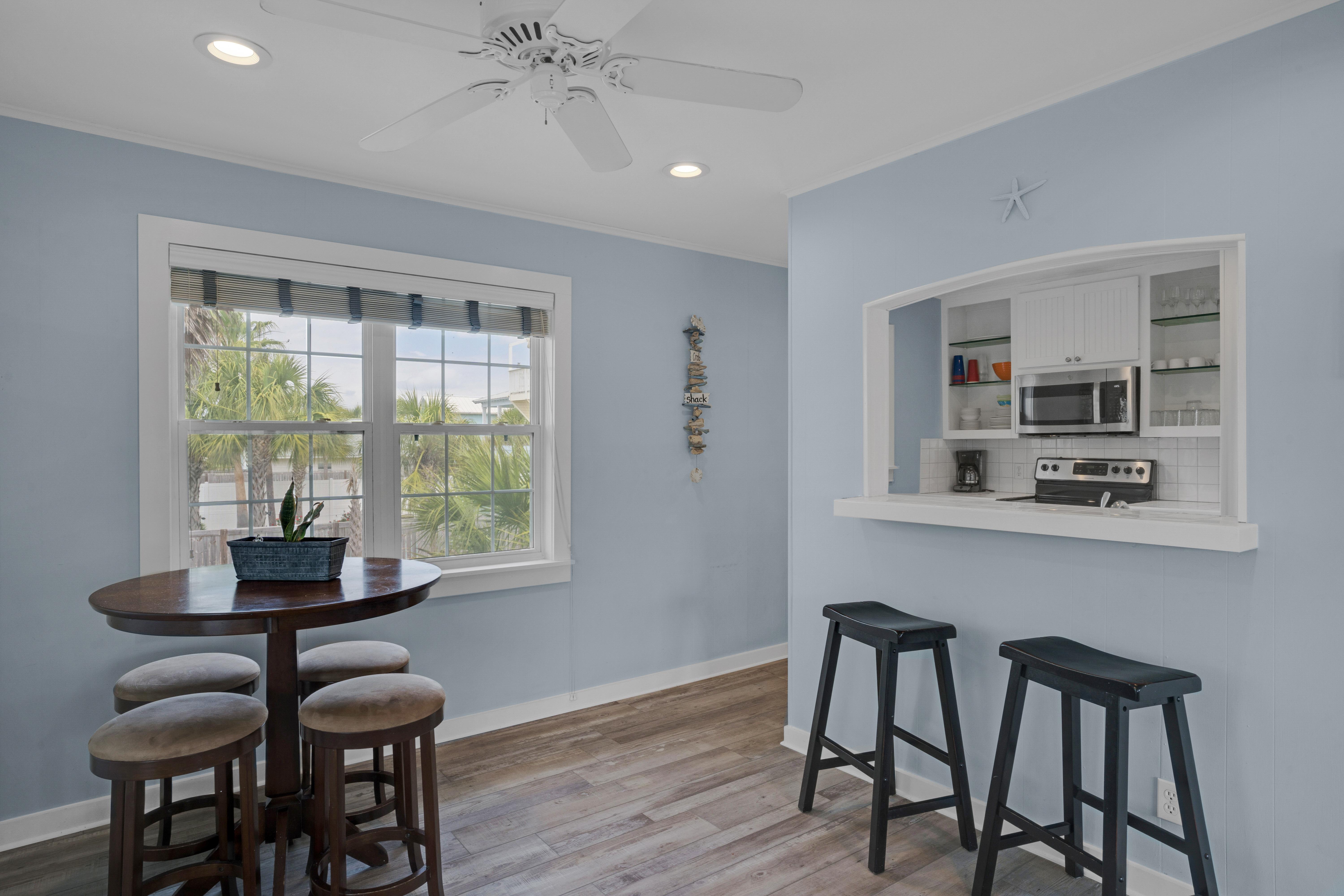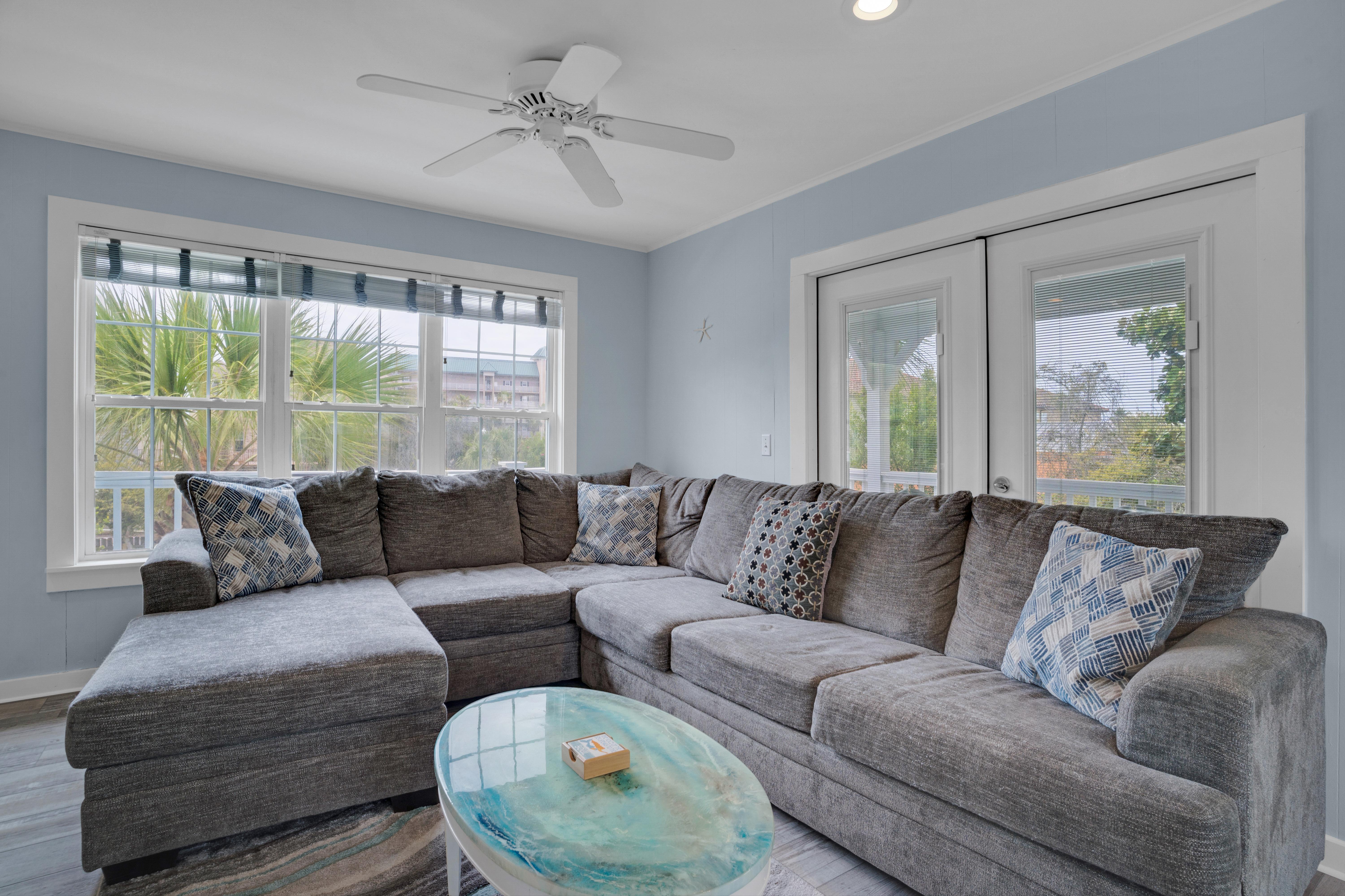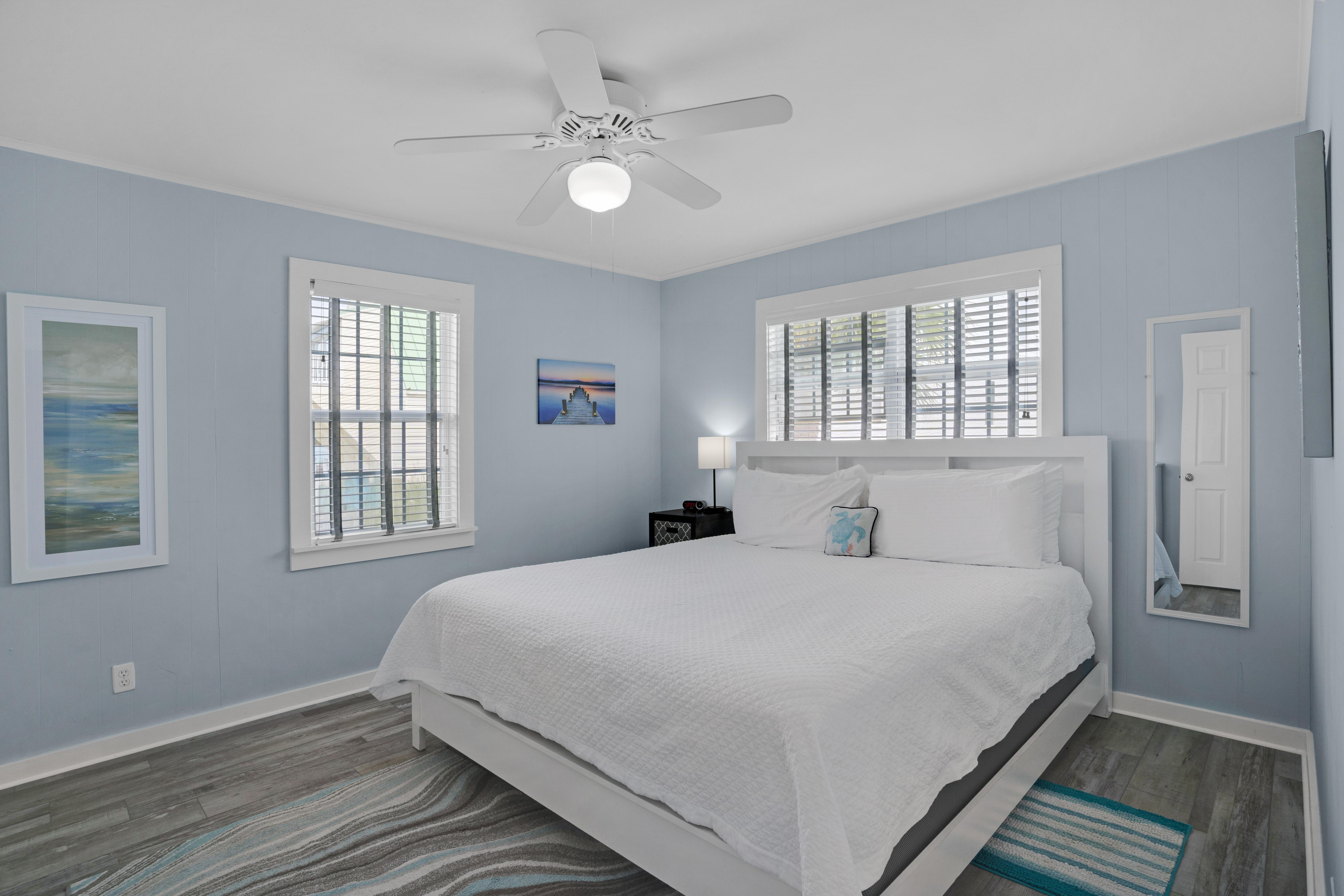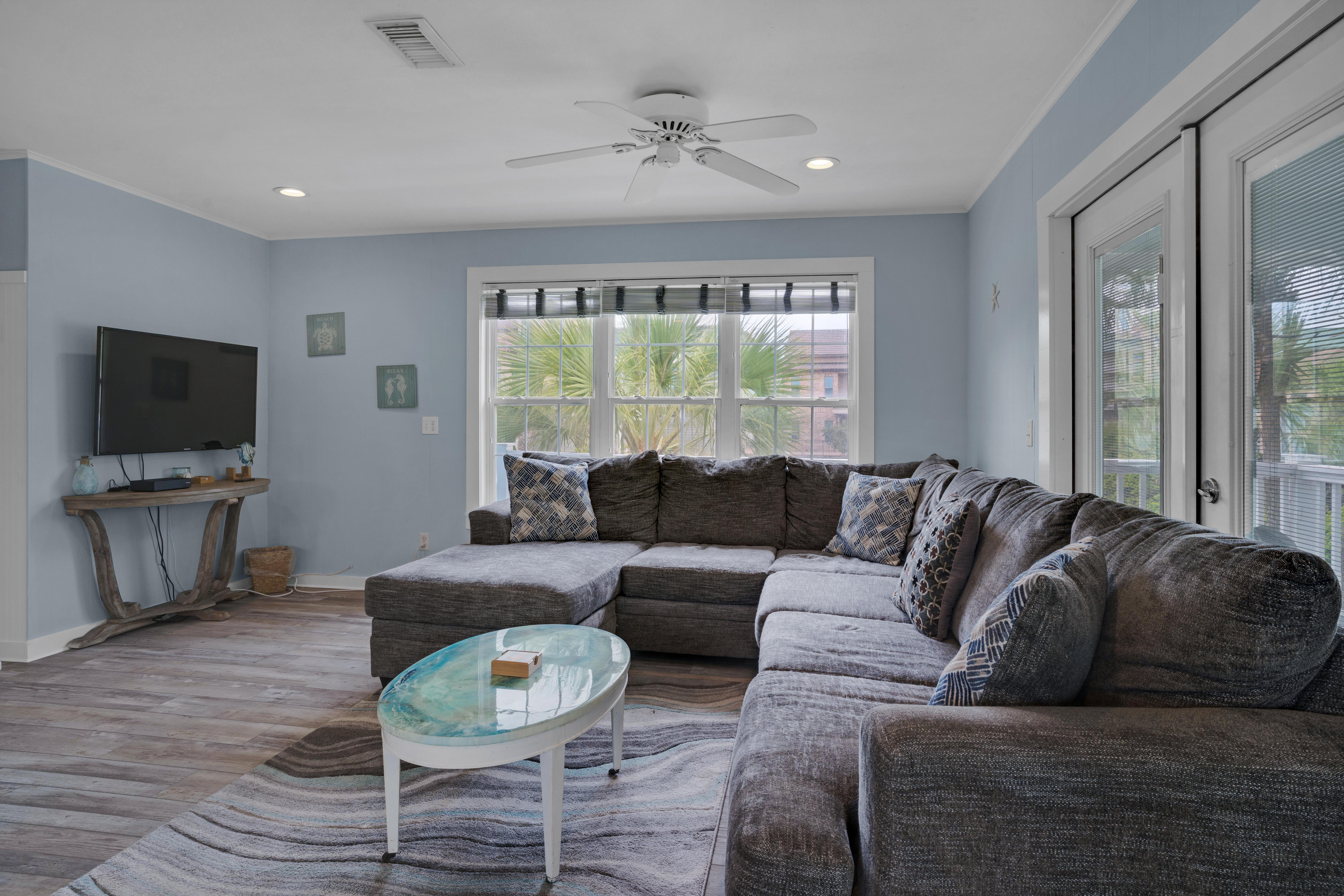 Emerald Sea is located just steps away from the Gulf of Mexico, so you can stroll down and enjoy the beach, lounge in the sugar white sand, or catch a breathtaking sunset. Emerald Sea can be rented by itself or with the home behind it, Emerald Sol, for a two family or group vacation.