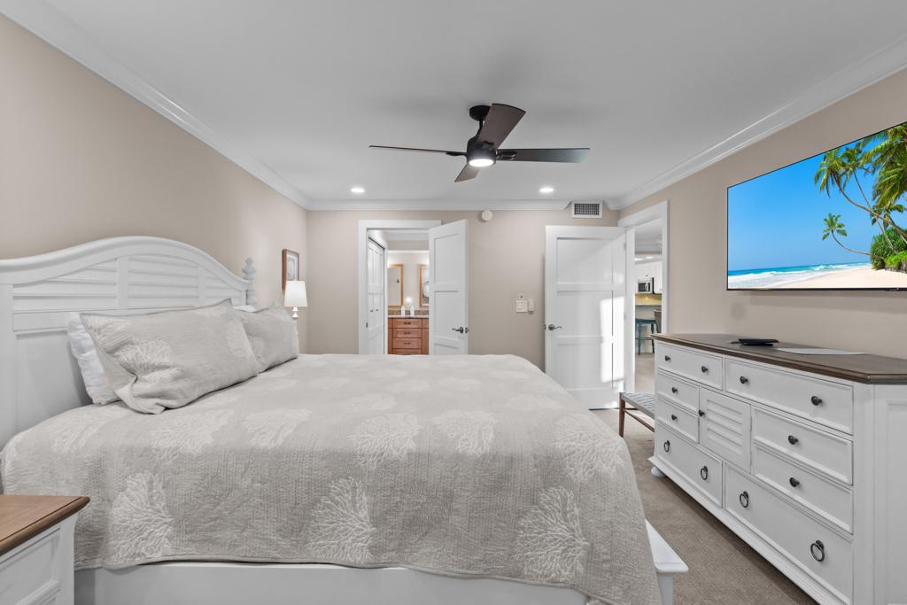 Wake up to stunning Gulf views in the king primary suite with a private bathroom, while the second bedroom features two full beds and an adjacent bathroom – perfect for families or two couples traveling together. Sleeper Sofa in the living room.