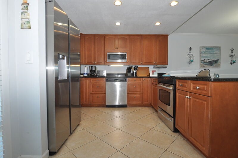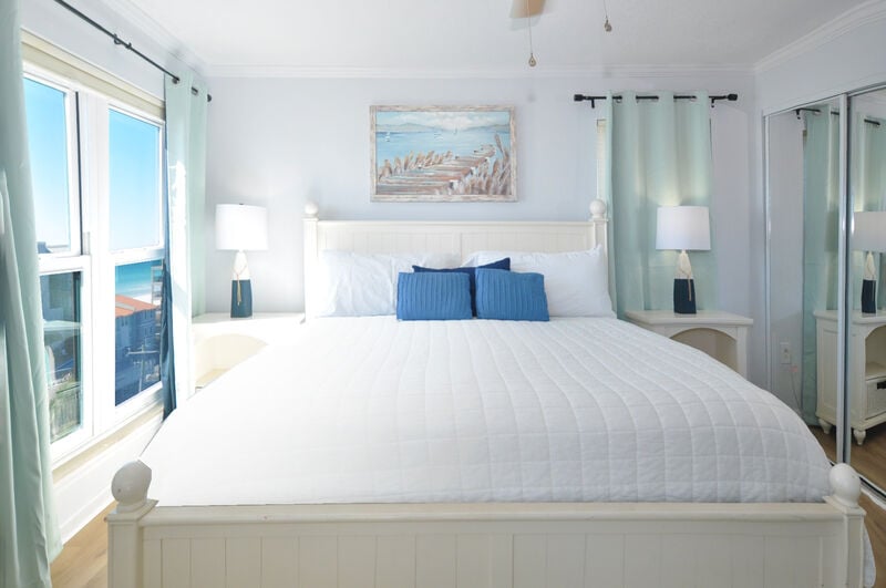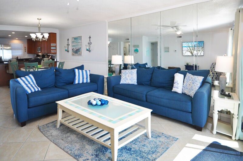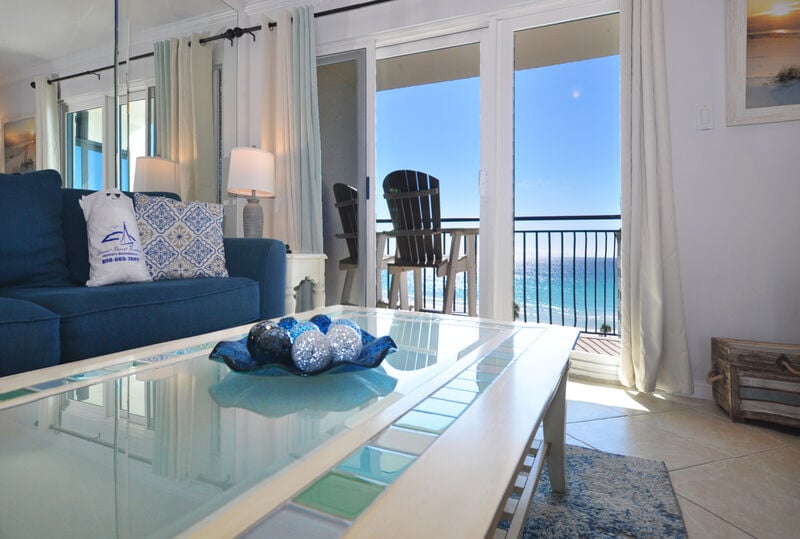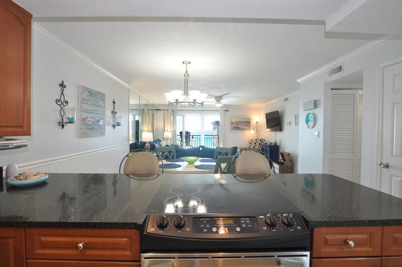 Top Floor Corner Unit / Beach Service Chairs and Umbrella / Beach View from Private Balcony / King Master Bed with Private Bath & Balcony Access / 2 Full Guest Beds / Sleeper Sofa / Sleeps 6 / Communal Washer Dryer / Granite ...