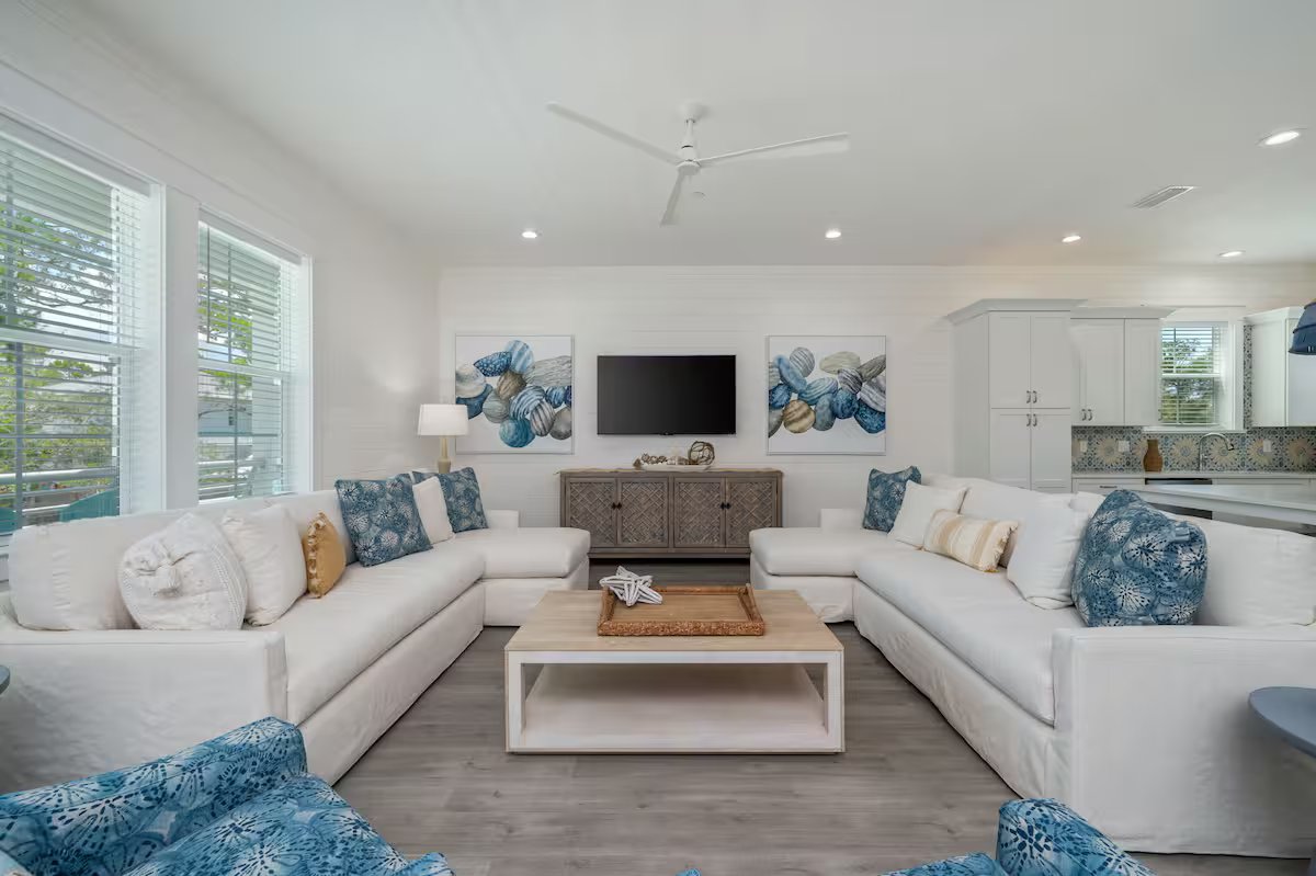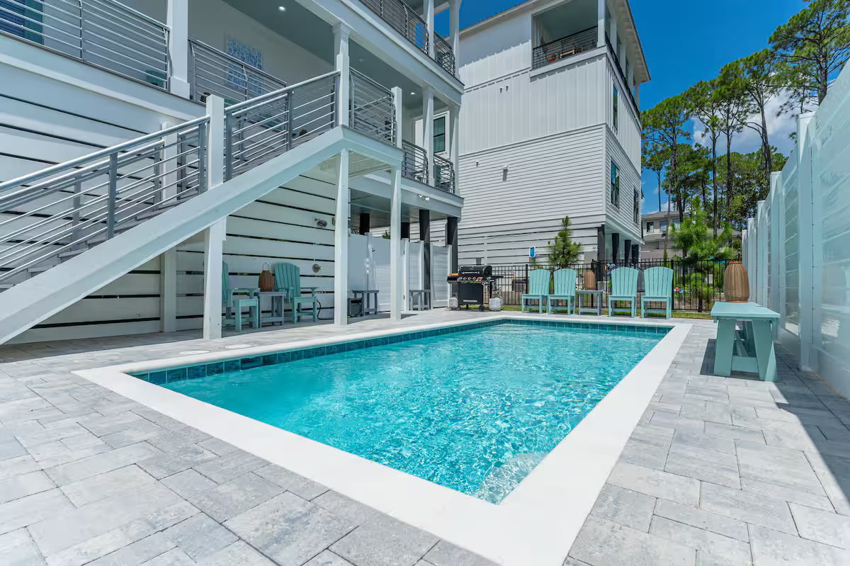 Melody is perfect for up to 18 guests! Cruise to the beach or nearby dining in style with the included 6-seater golf cart, or soak up the sun on the rooftop observation deck with stunning Gulf views. Professionally decorated and built for comfort, Melody is the ultimate spot for your 30A getaway.