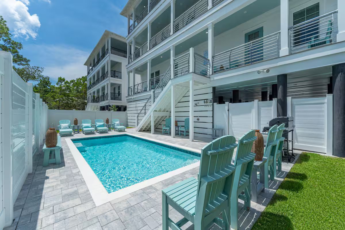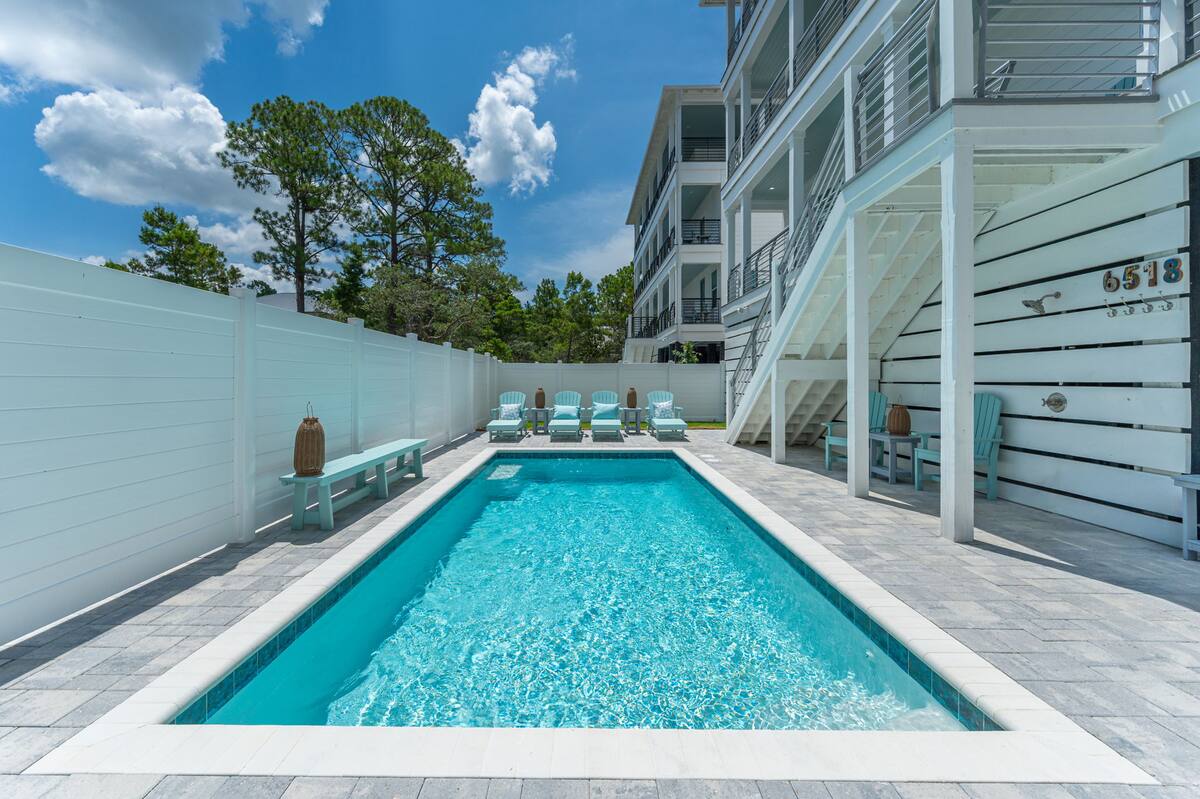 Welcome to Melody, your brand-new 30A retreat just 0.6 miles from Santa Rosa's sugar-white beaches. Carefully designed w/ 8 bedrooms, each w/ its own private bath, 3 living rooms, & a private pool