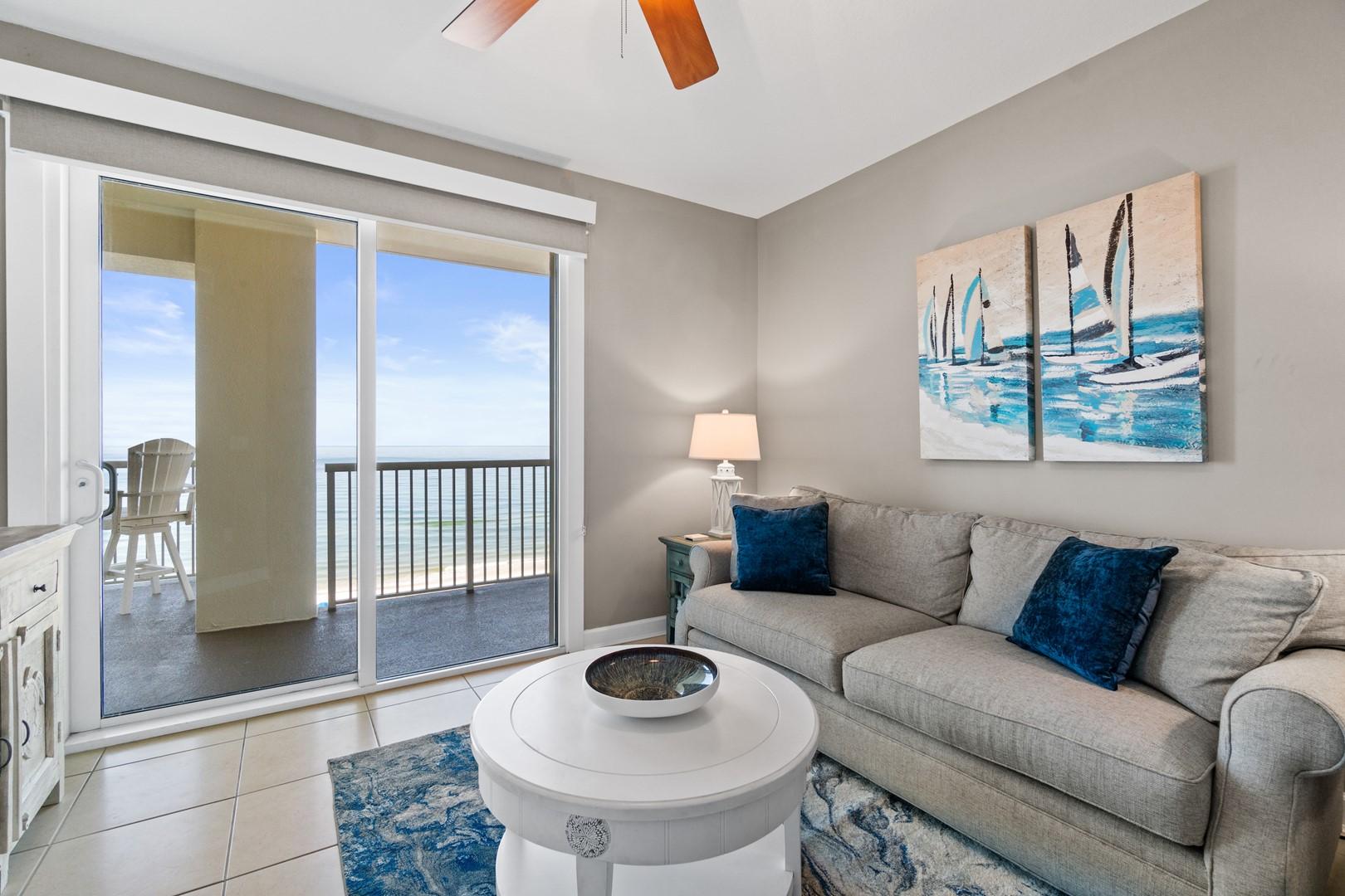 * Living Area - Gulf View, Smart TV, Balcony Access
