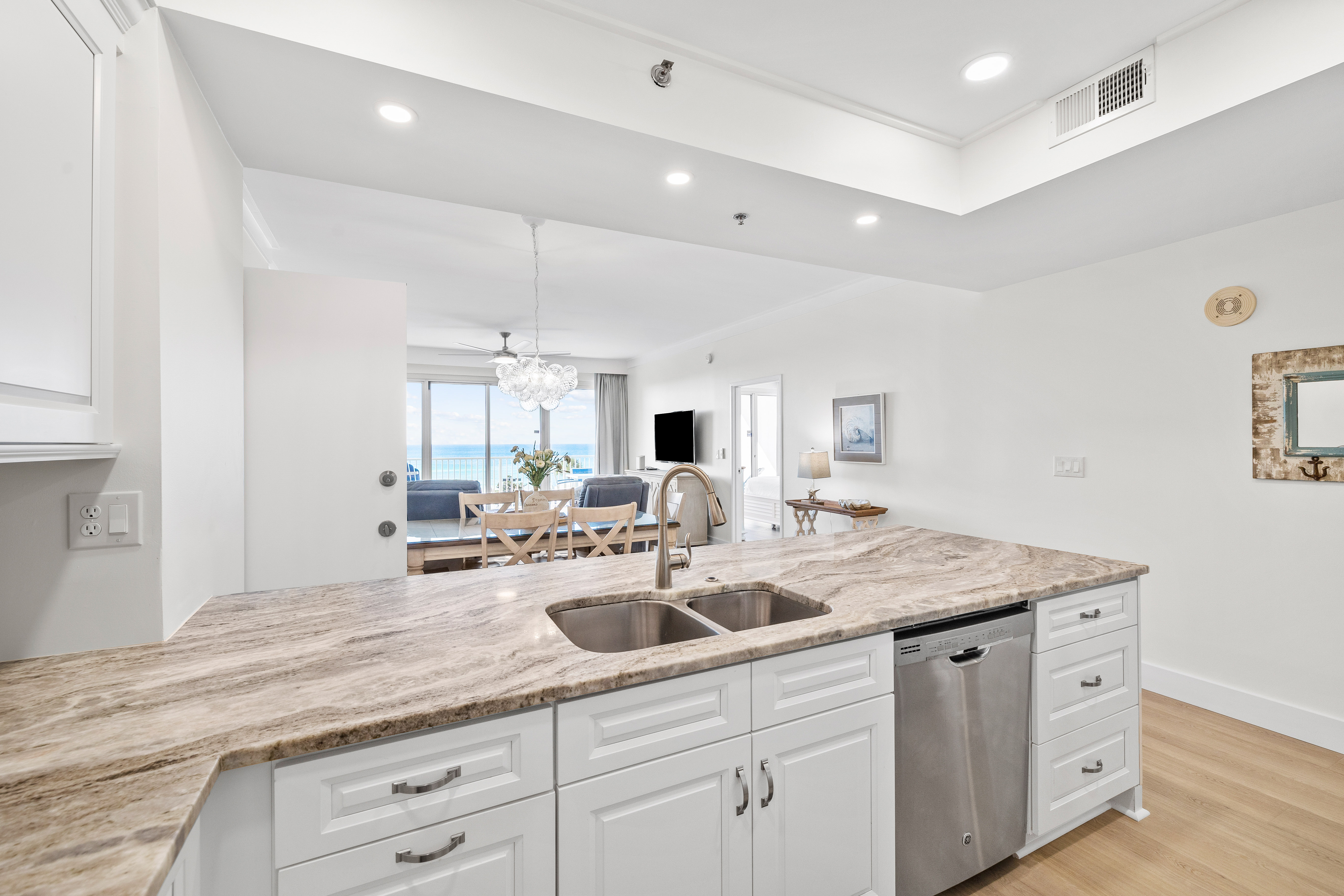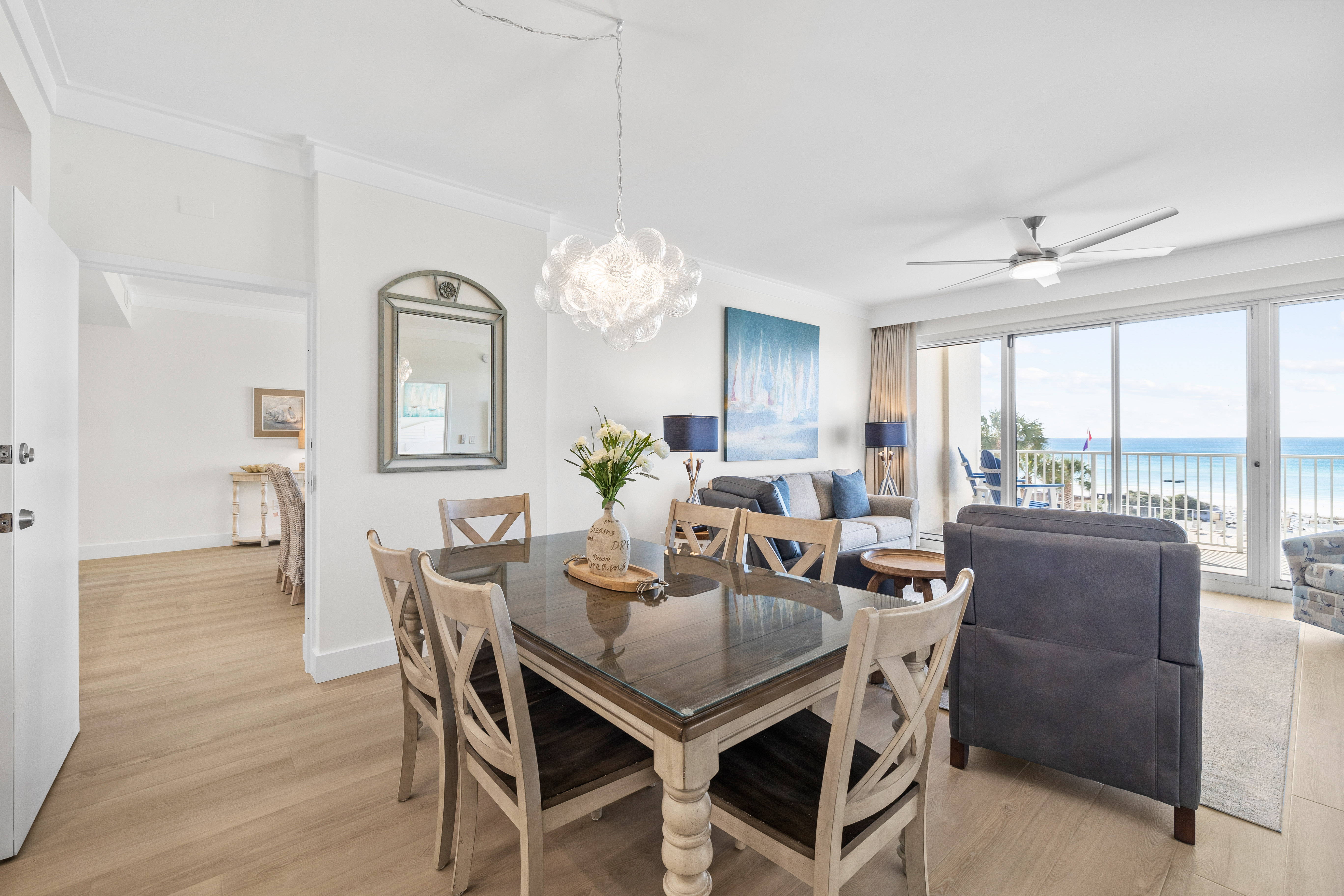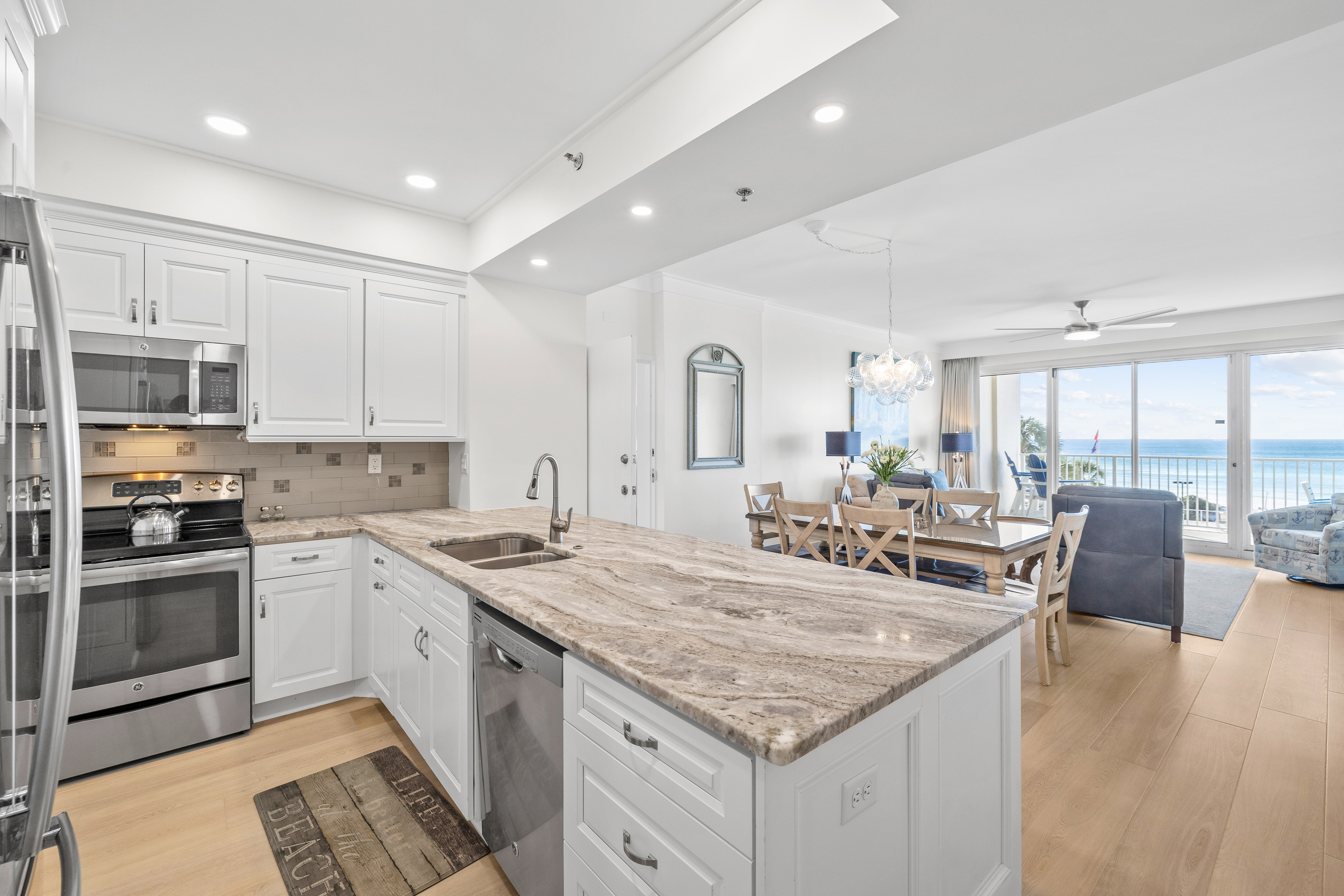 Step into Tides 205, a stunningly renovated Gulf-front condo where contemporary style meets ultimate comfort. With its open-concept design, sleek new LVP flooring, and designer furnishings, this second-floor retreat offers a fresh coastal vibe that’s as relaxing as it is stylish. Floor-to-ceiling windows flood the space with natural light and lead to your private balcony, where spectacular Gulf views set the stage for morning coffee, afternoon lounging, or sunset cocktails.