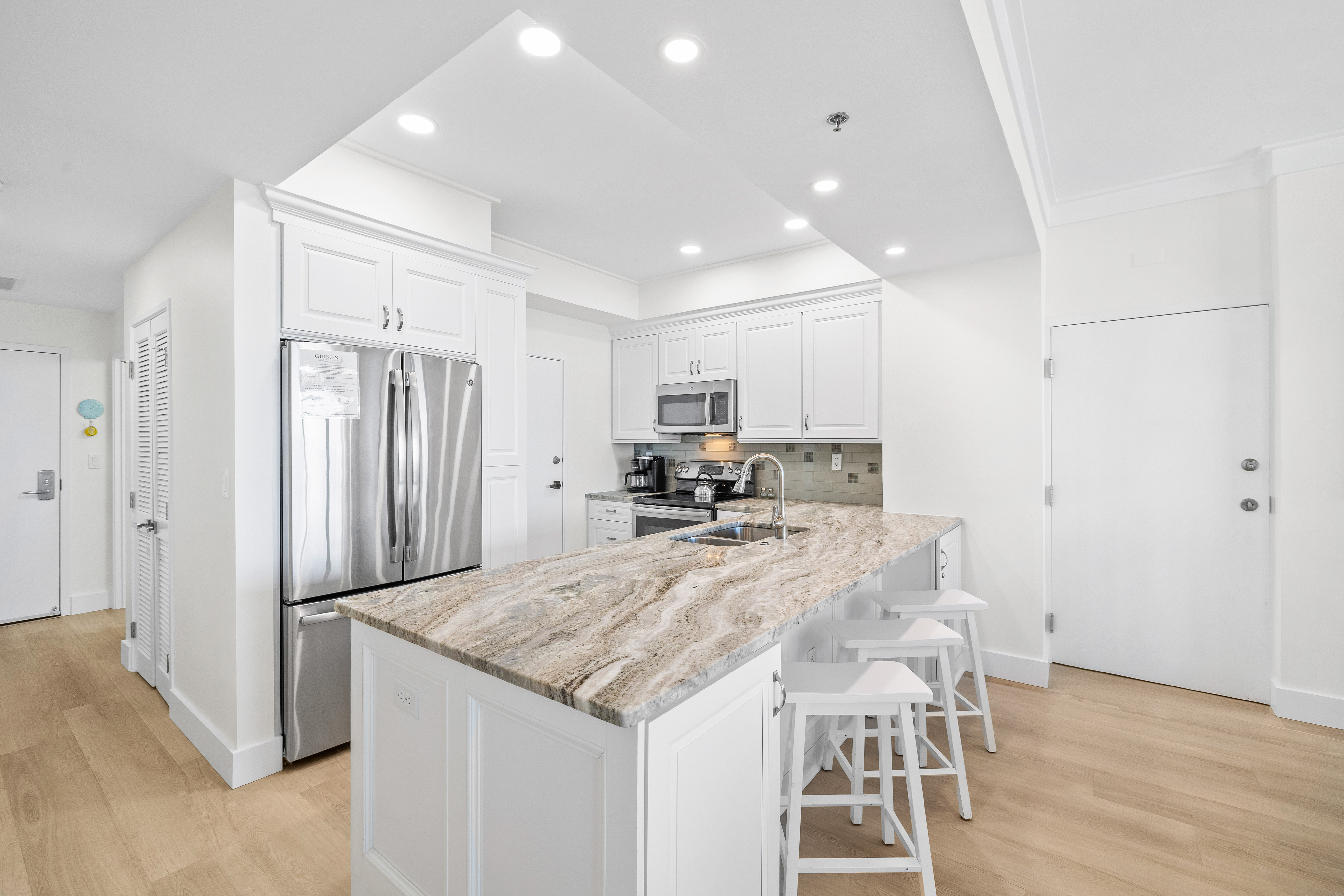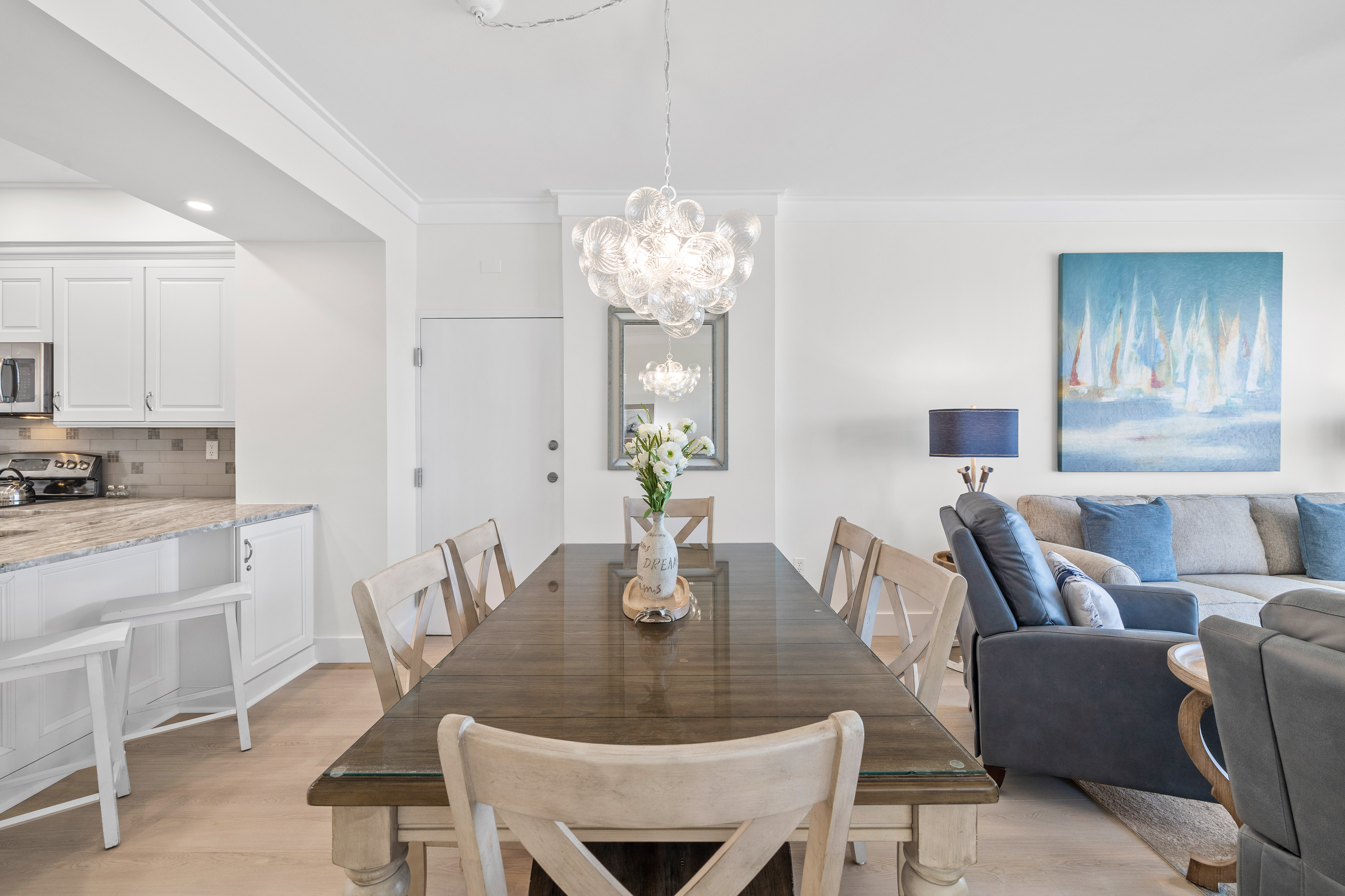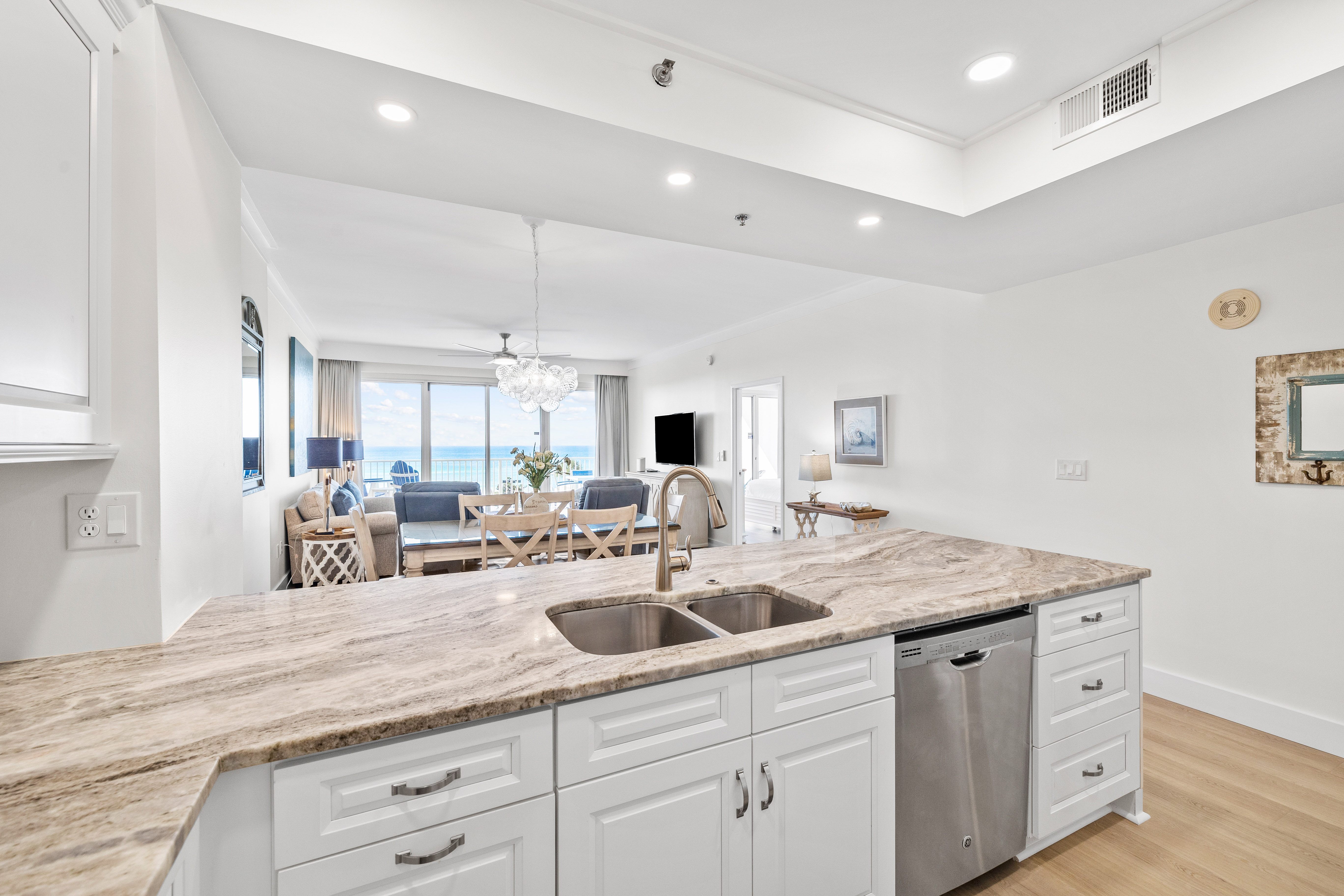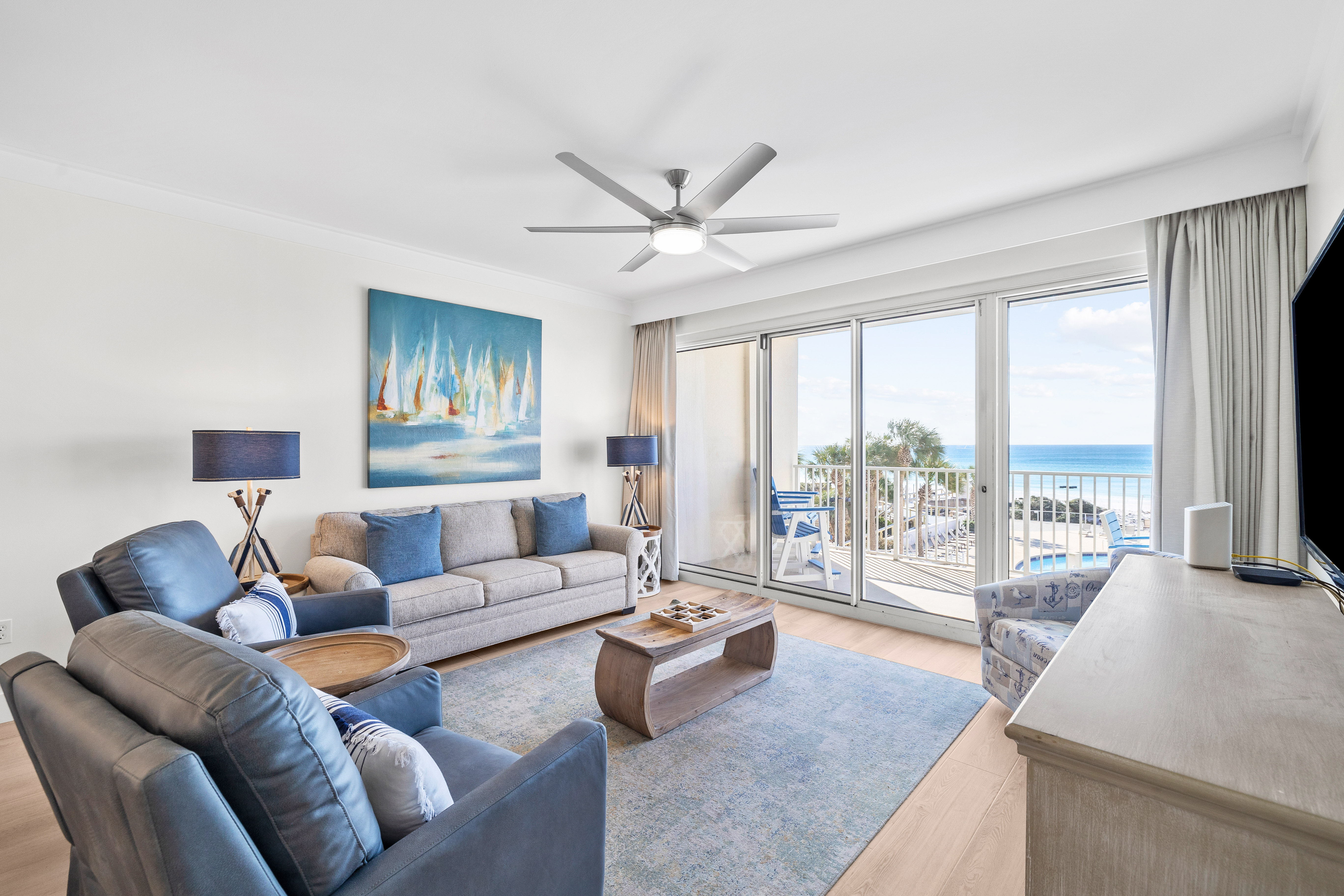 Step into Tides 205, a stunningly renovated Gulf-front condo where contemporary style meets ultimate comfort. With its open-concept design, sleek new LVP flooring, and designer furnishings, this second-floor retreat offers a fresh coastal vibe that’s as relaxing as it is stylish. Floor-to-ceiling windows flood the space with natural light and lead to your private balcony, where spectacular Gulf views set the stage for morning coffee, afternoon lounging, or sunset cocktails.