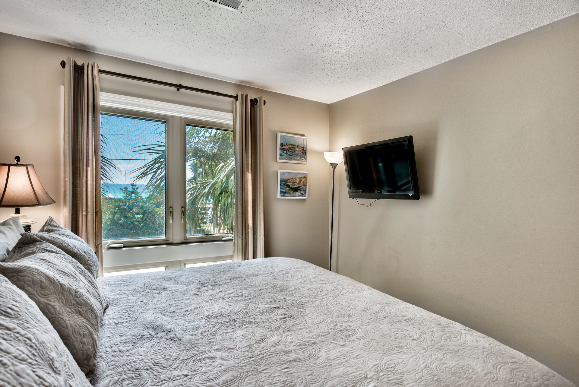 When the beach is your destination for fun, then this Seascape condo should be your home away from home. This beautifully appointed 2BR/2BA condo in the sprawling Seascape Resort overlooks the emerald gulf waters and the whitest sand beaches in Florida. Wake up to an unobstructed view of the beach, while enjoying a newly remodeled retreat with all the creature comforts of home. The King MBR is on the main living level, with a second BR upstairs with queen bed and a single bed. Both have their own attached bathrooms. Recent upgrades include new tile bathrooms with walk-in showers, new premium bedding and linens. The kitchen is fully-equipped for entertaining or cooking for your family. The dining room seats six, and the living room leads out...